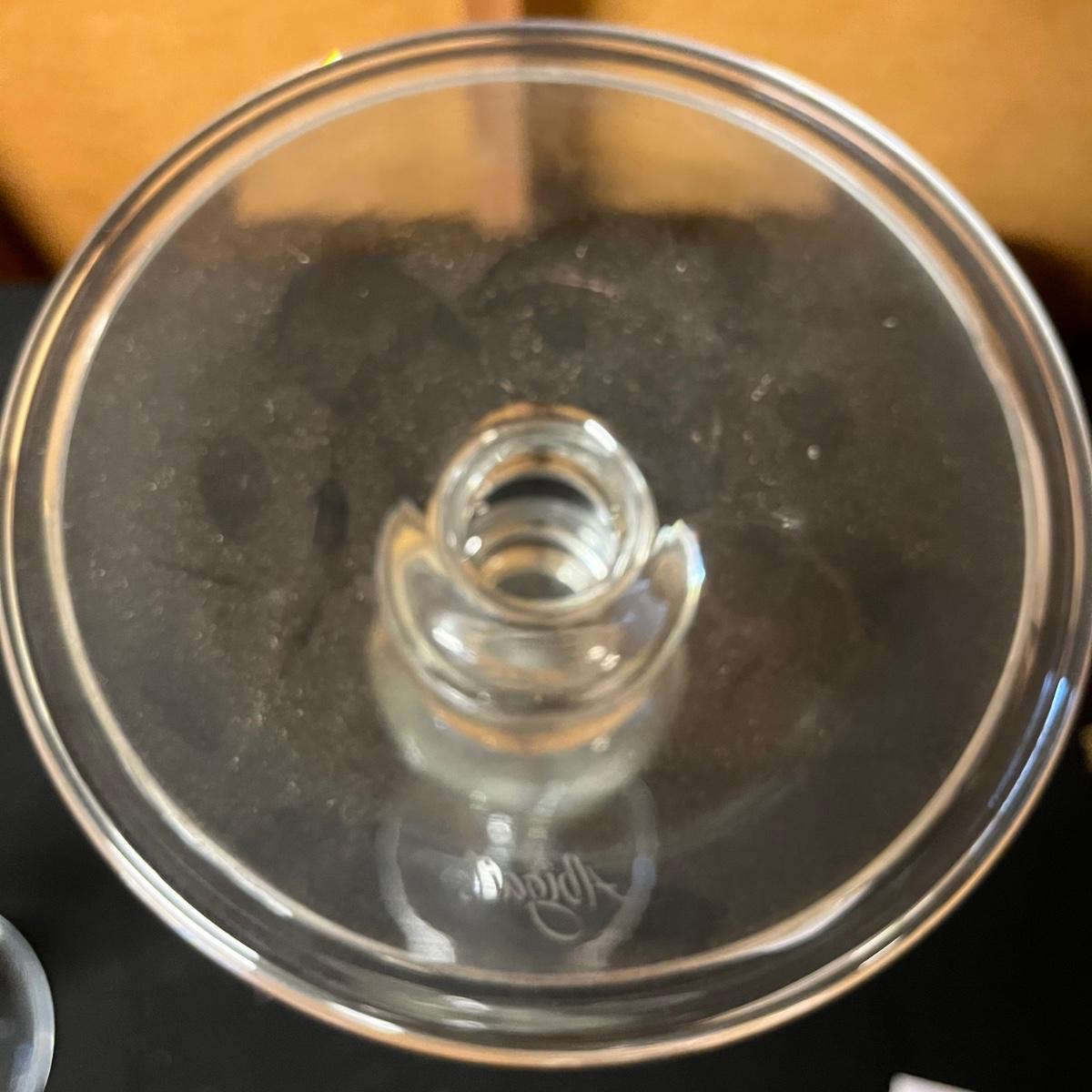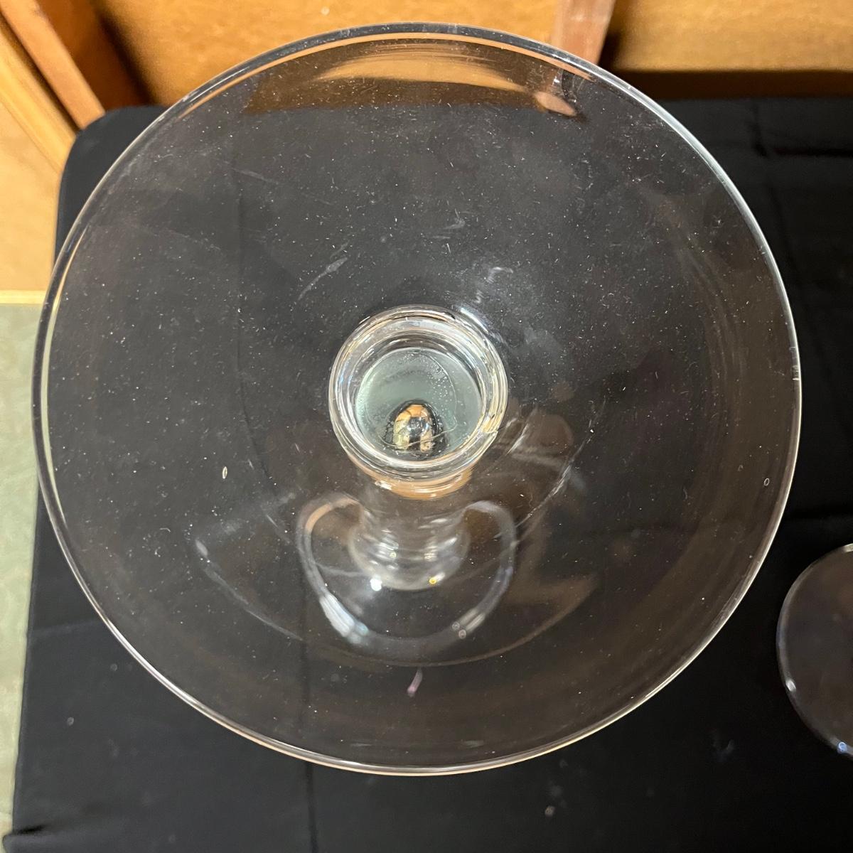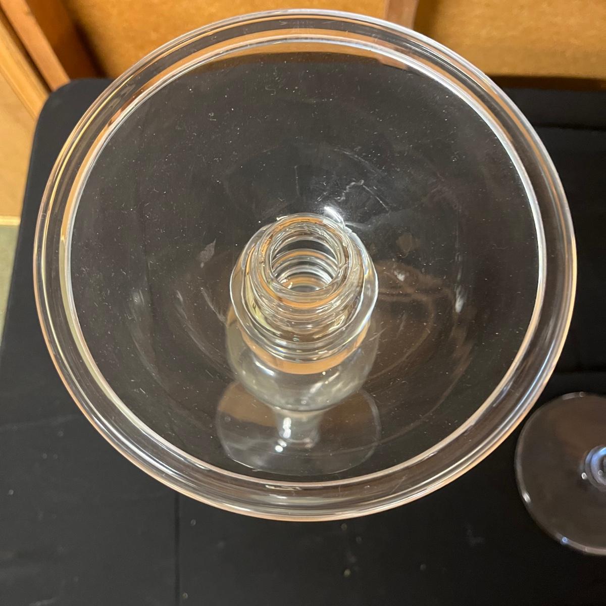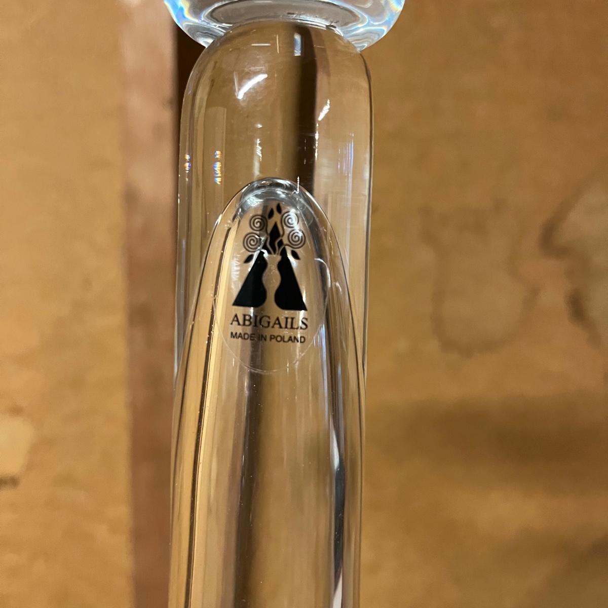 Lot includes a Signed Abigail’s Bonaparte Pillar candlestick that measures 7”D x 25.5”D. Also includes a similar glass candlestick that is not signed that measures 7”D x 21.5”.
