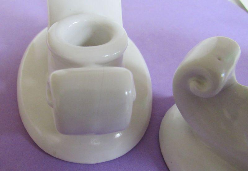 No chips, but each one has a small tight hairline crack on the bottom scroll, see magnified photos.