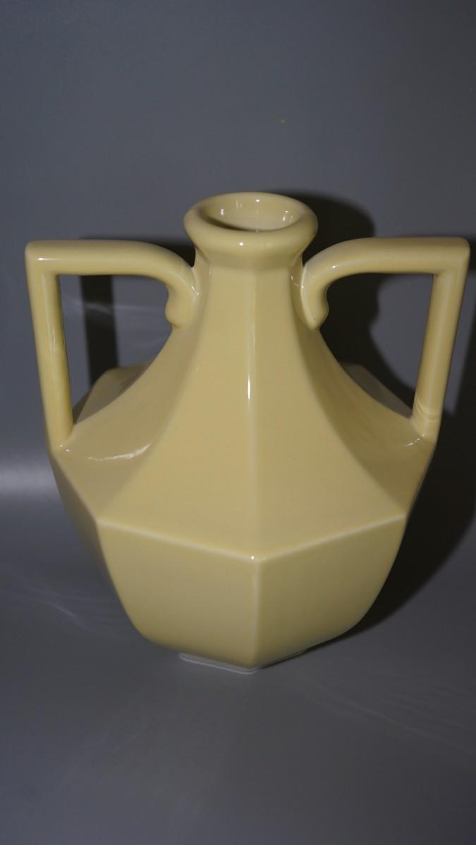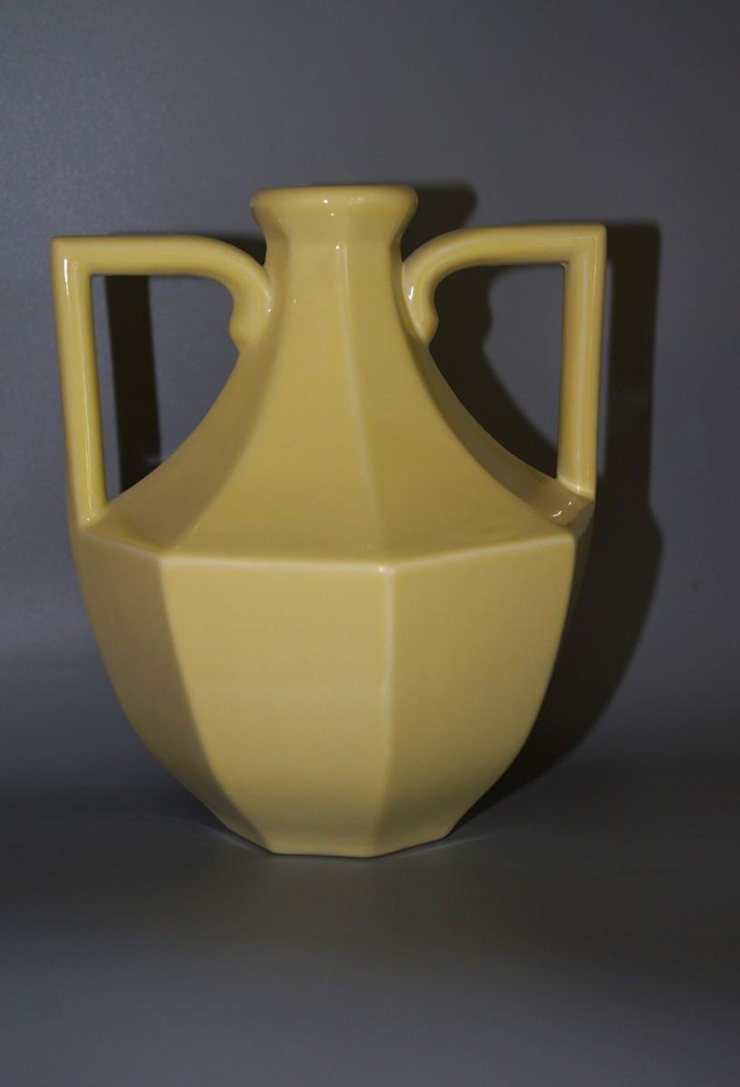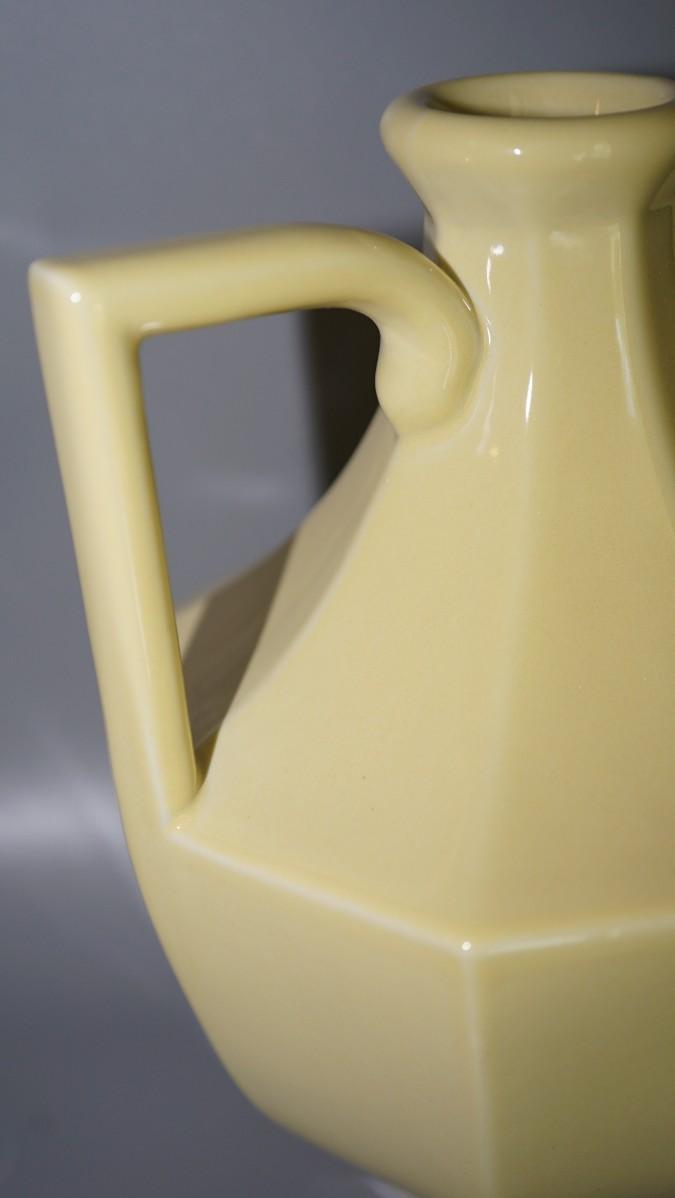 nice yellow gloss glazed handled vase