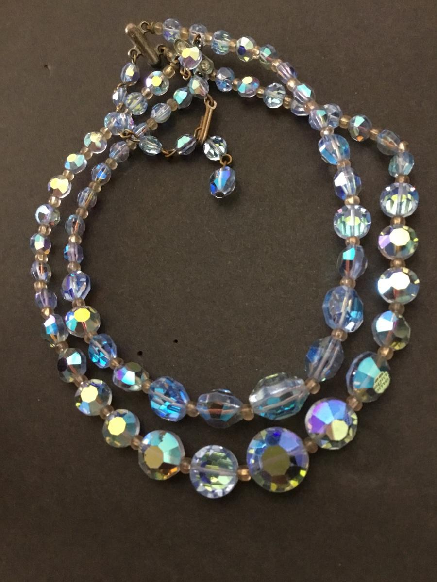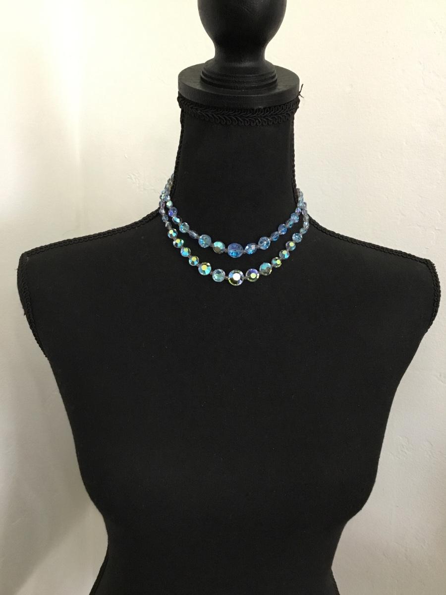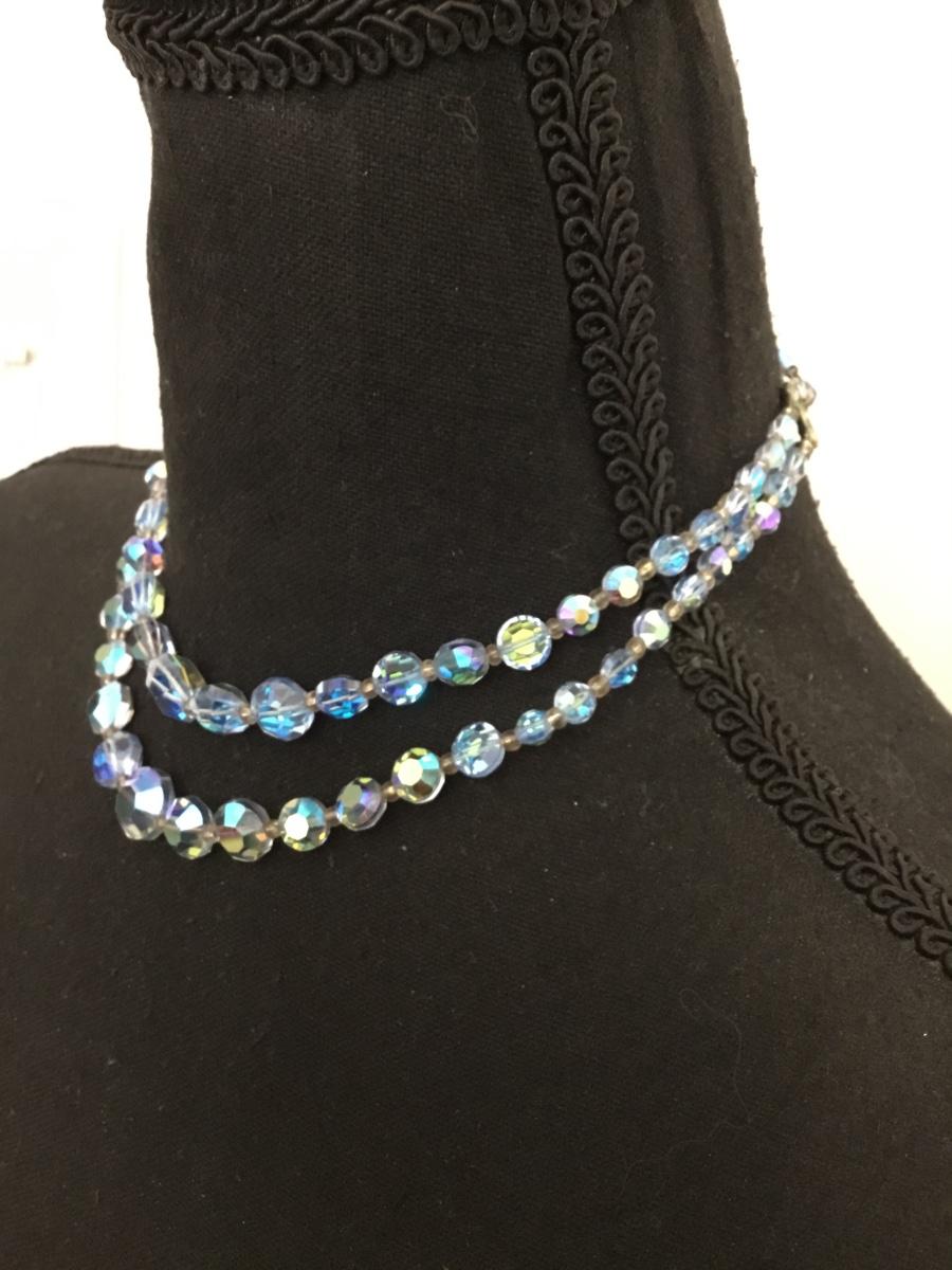 Absolutely gorgeous Atlantic ice, aurora, borealis, crystal round, bead, double strand, choker, necklace, rare