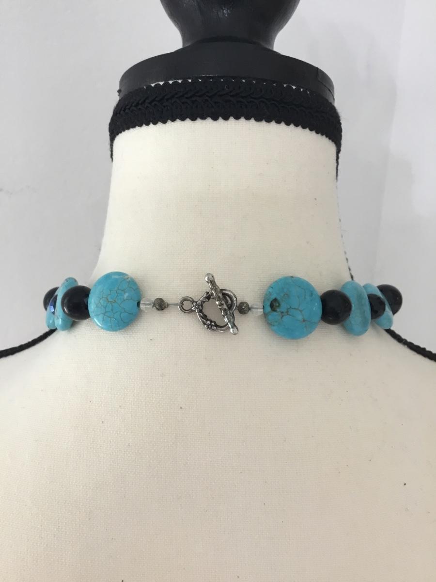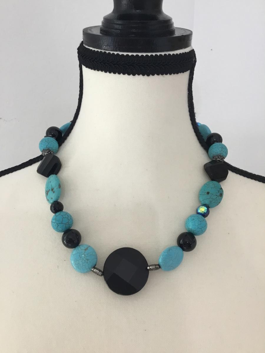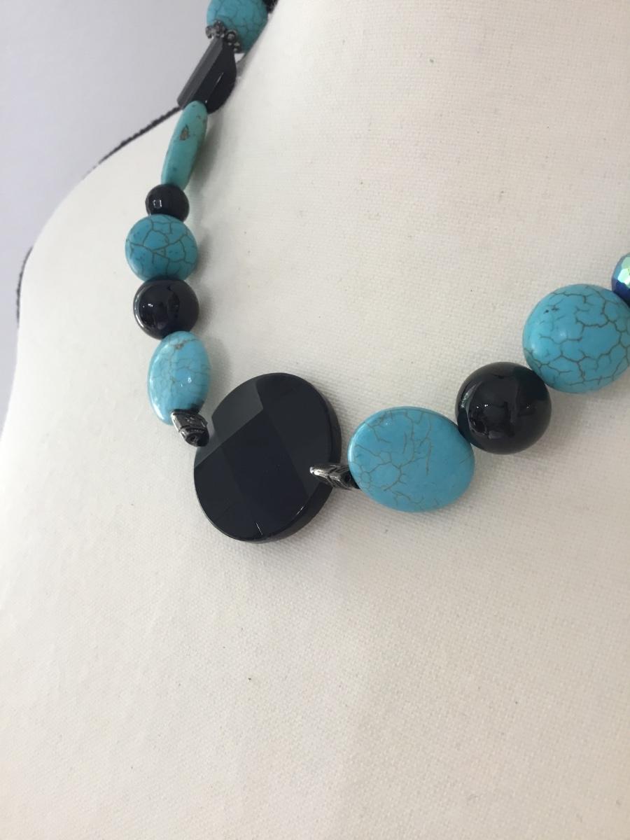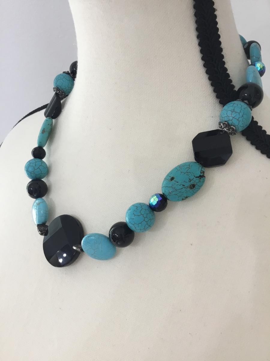 Absolutely gorgeous faceted black glass with turquoise stone type bead fashion necklace