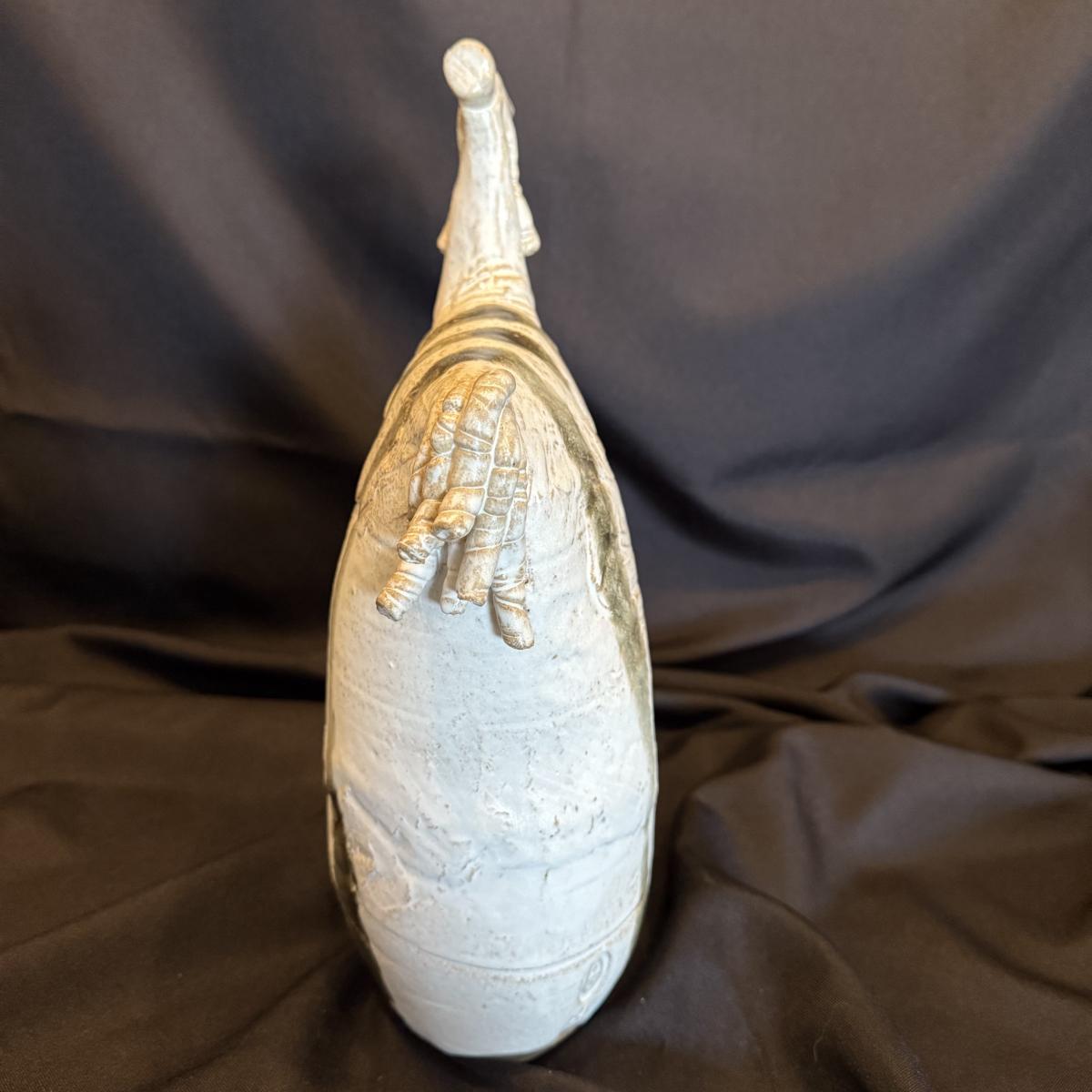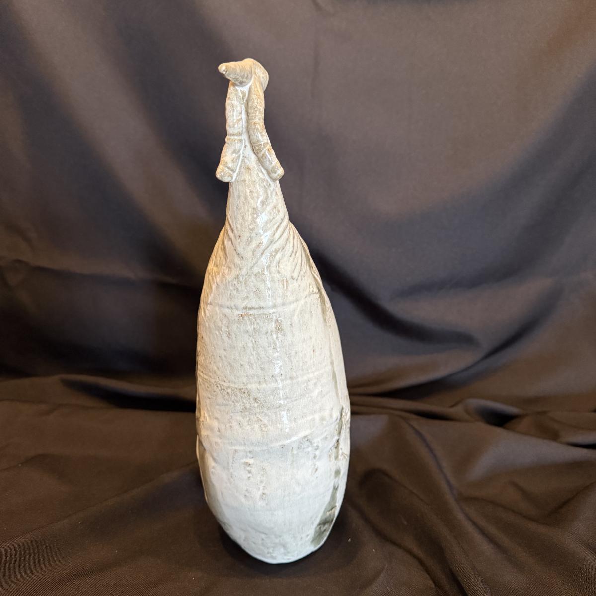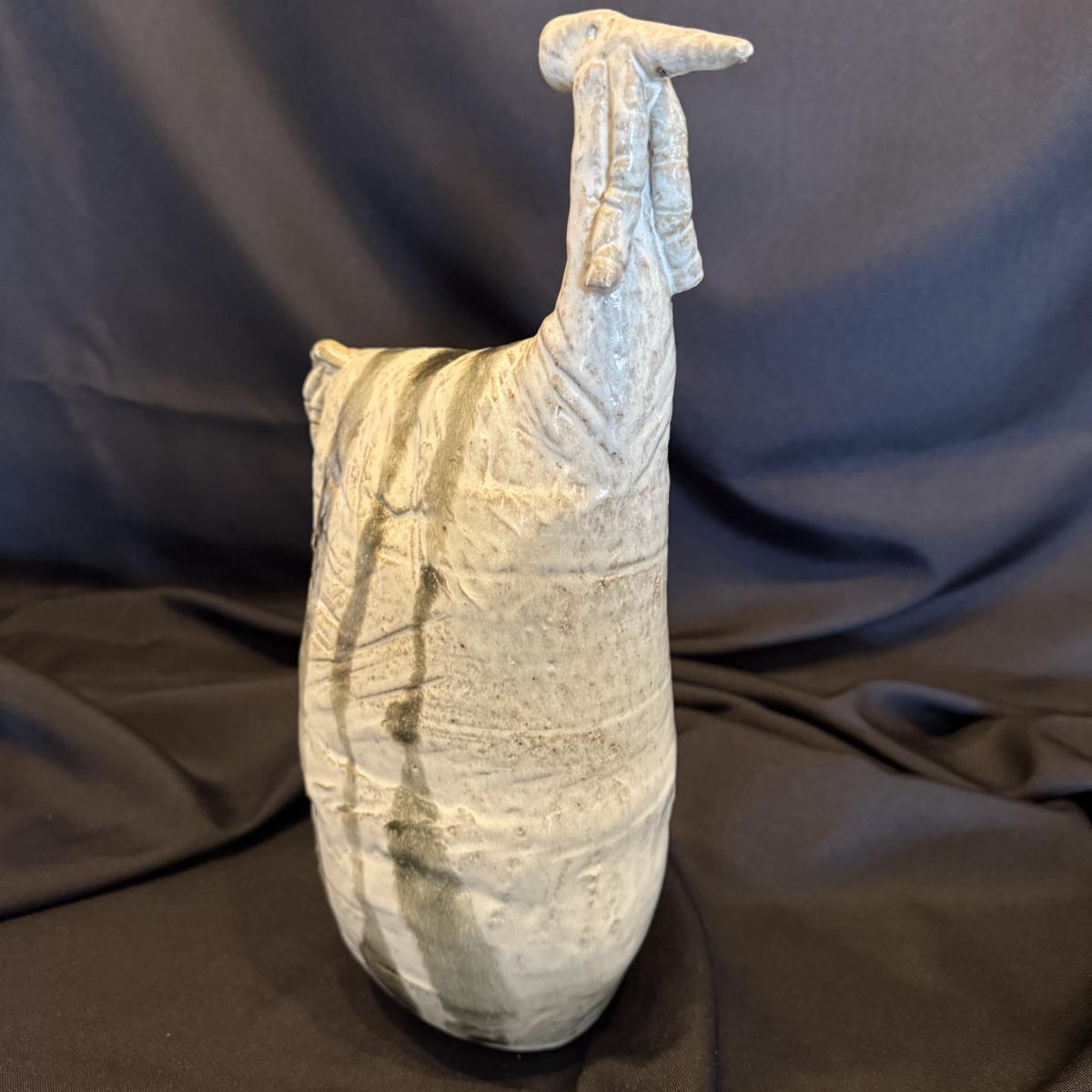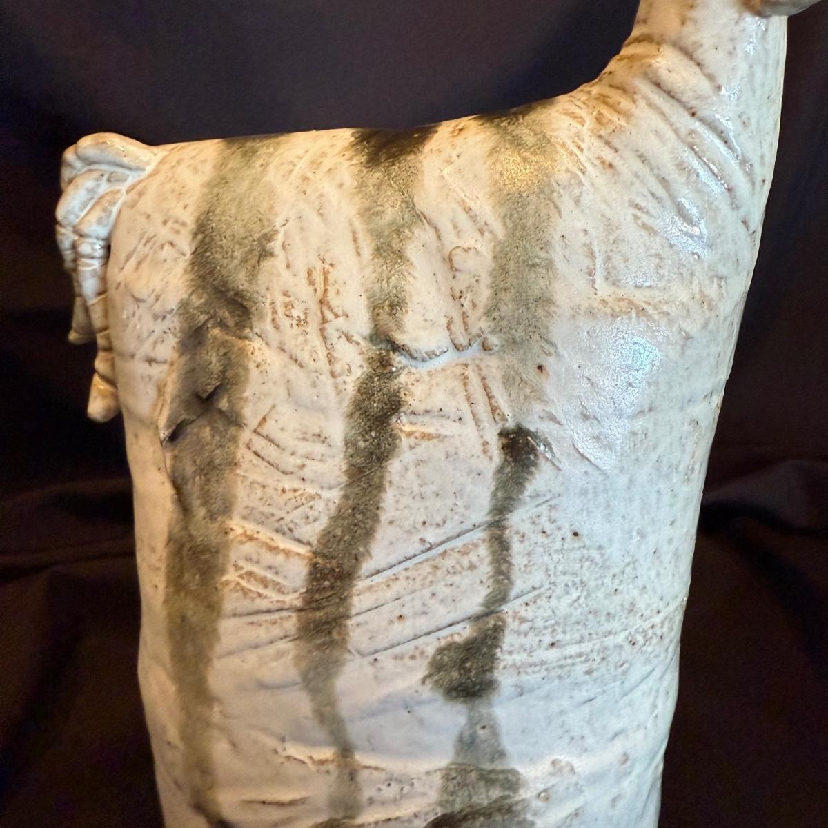 This lot contains a unique ceramic abstract animal sculpture. This piece measures approximately 6” x 4” x 14”H. This item is stamped with a symbol and ‘RS’, plus another signature on the bottom. See pictures for details. Shipping available.