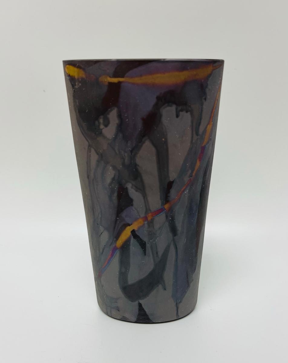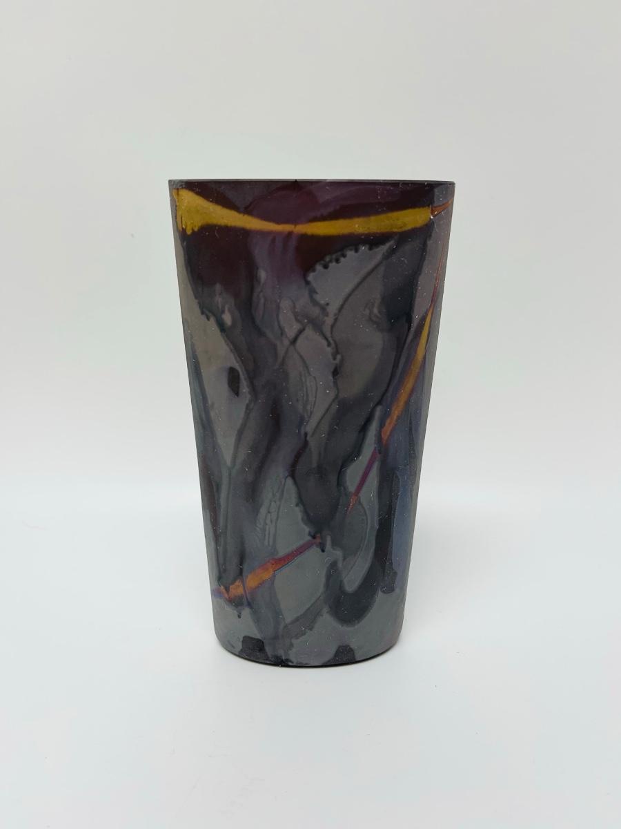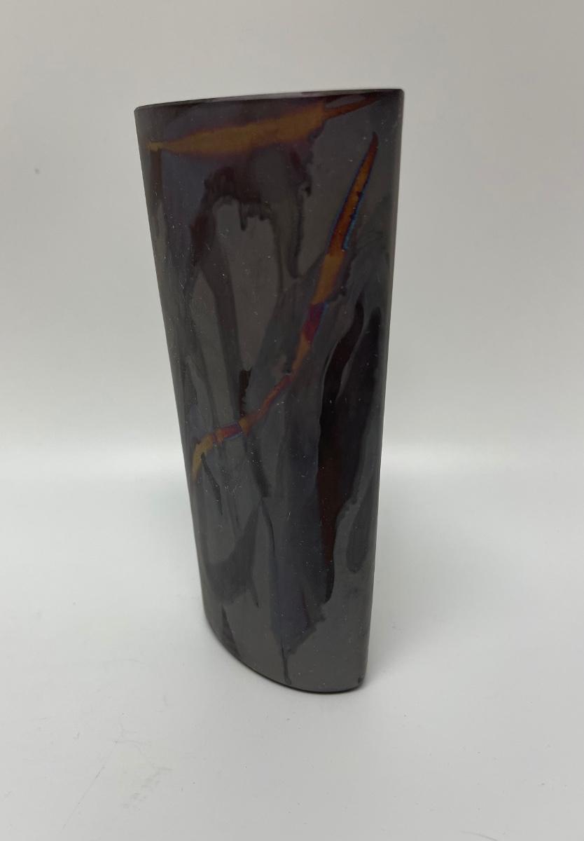 Abstract art glass vase. Nicely made, sort of an oblong shape. Made in Poland.