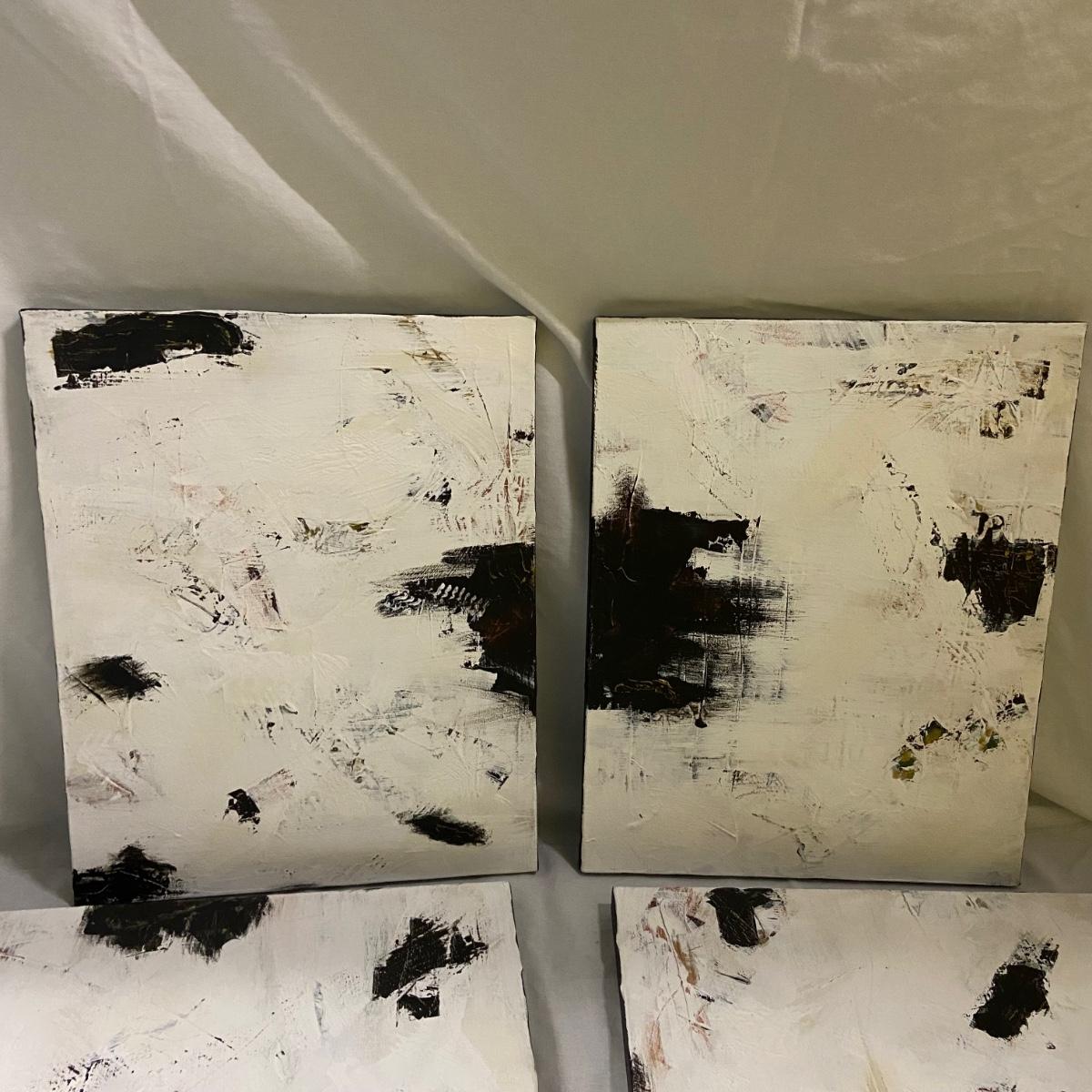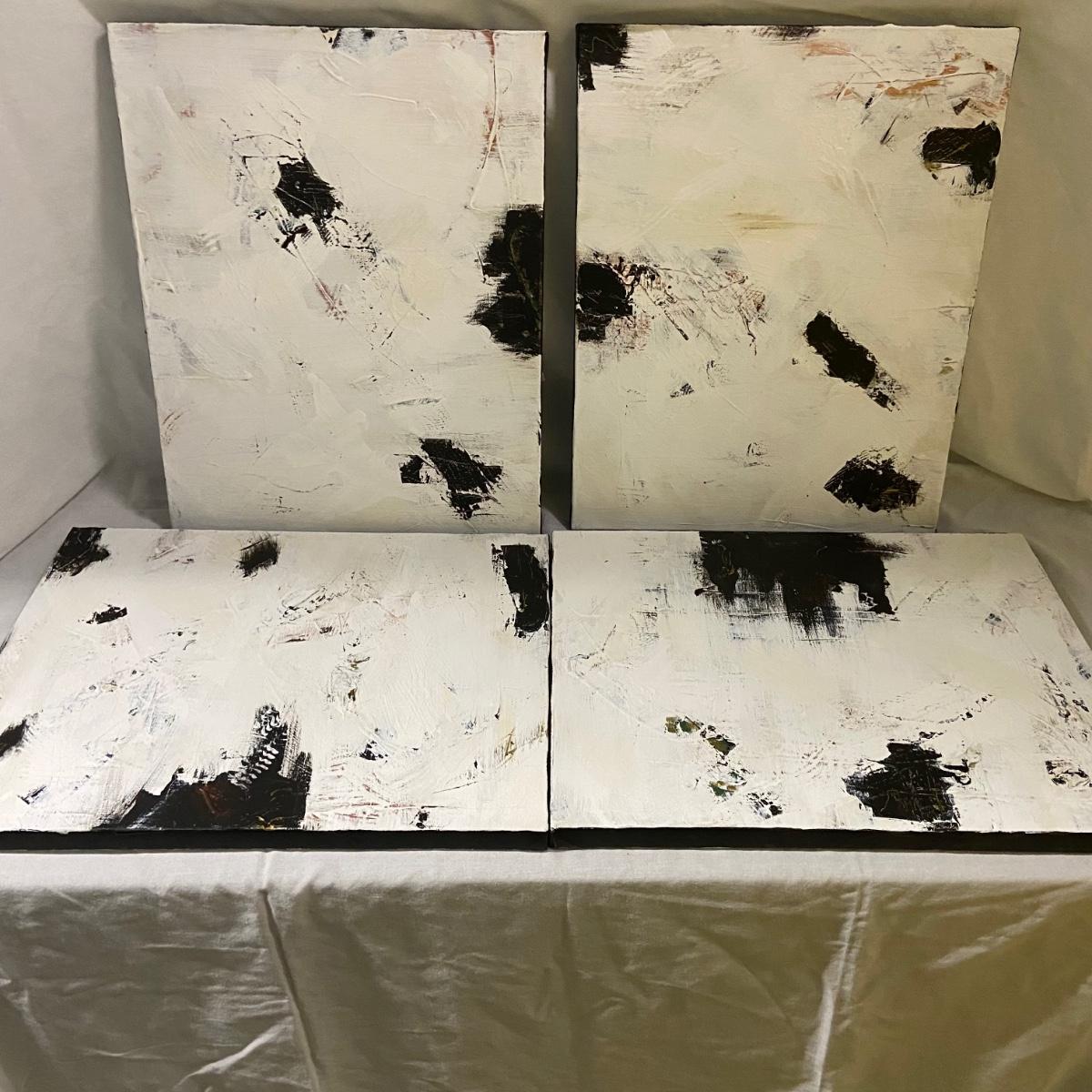 This lot includes a set of four textured paintings on what appears to be canvas. These stunning abstract pieces have a hint of metallic accent and have a texture to them. All four measure 16” x 20” and do seem to be originals. There is no full signature on them aside from ‘Kelsey 2019’ on the back of them. Shipping available.
