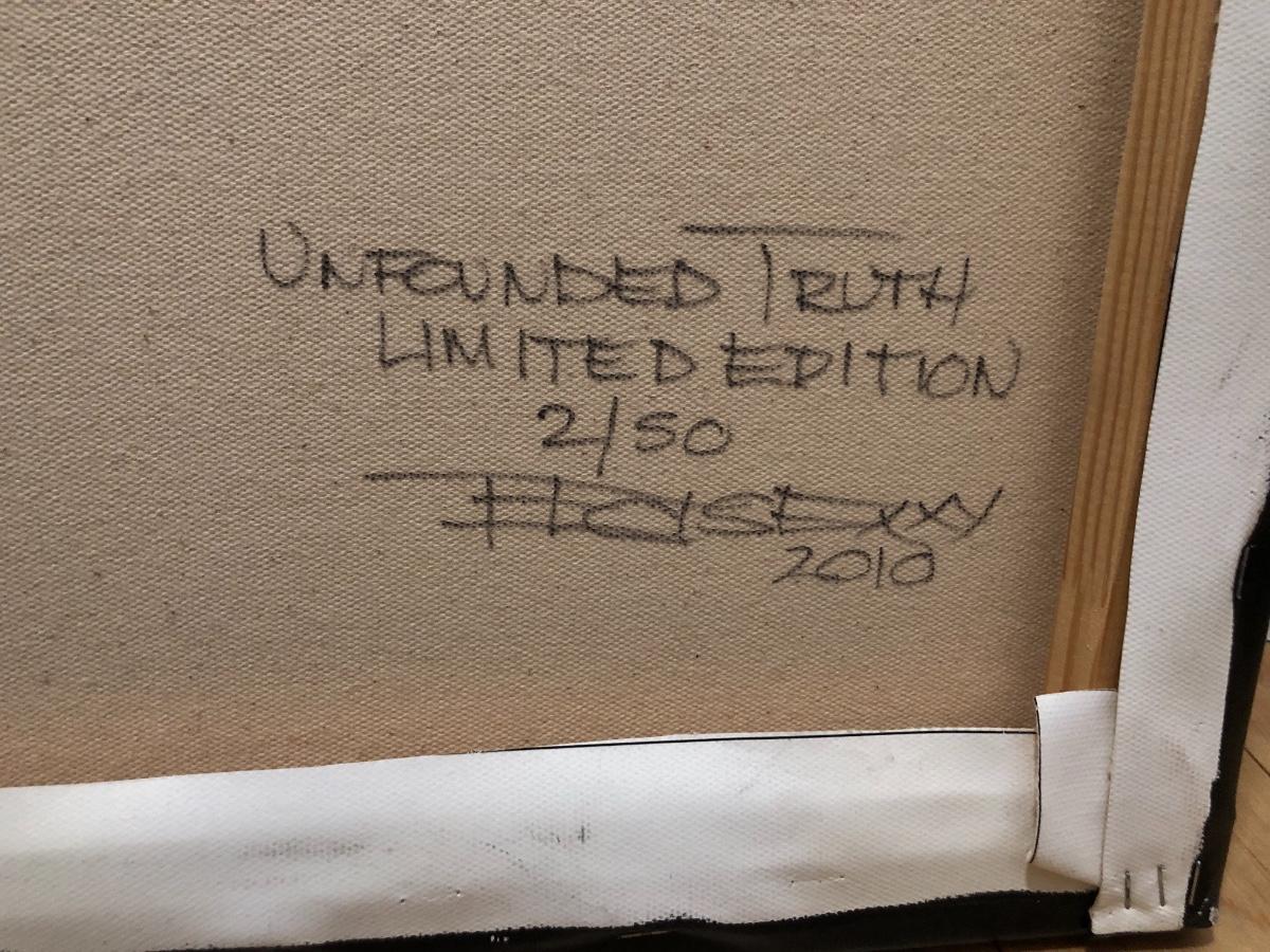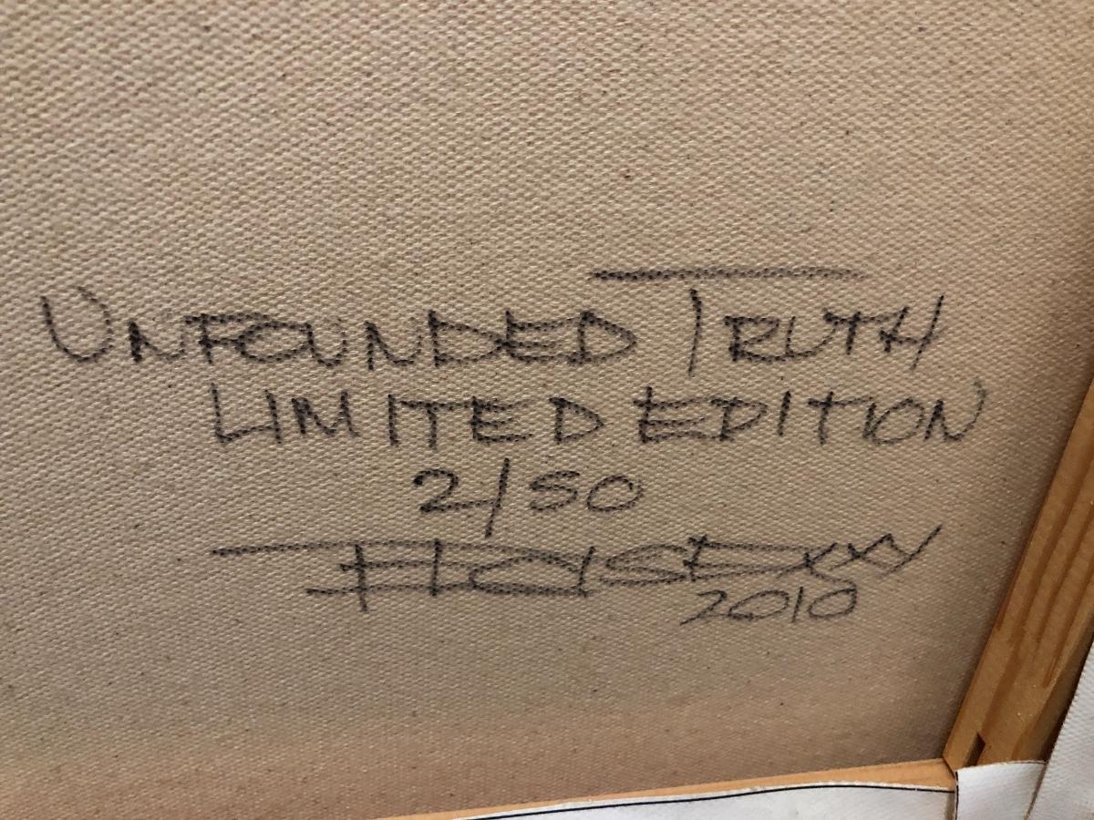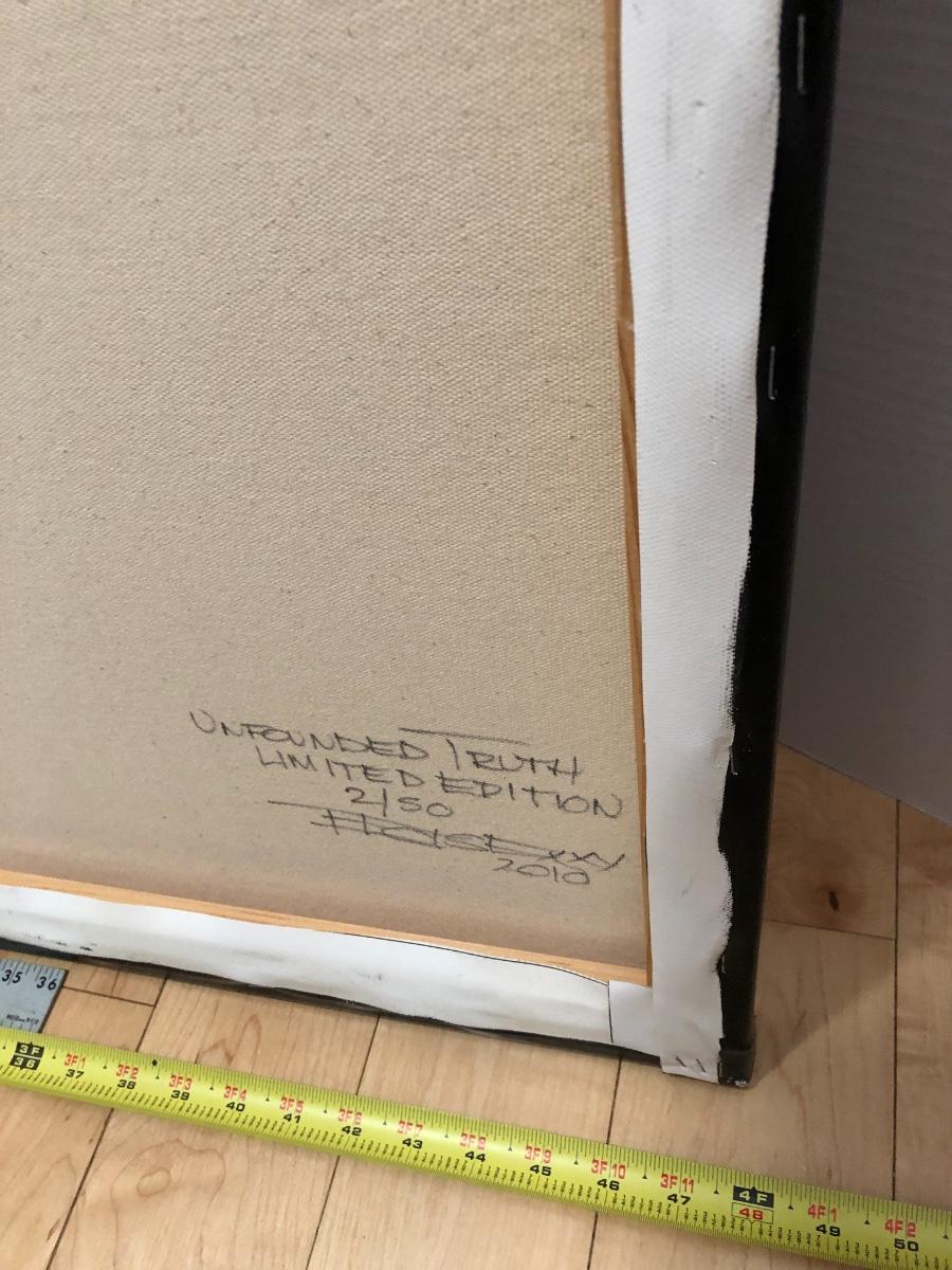 All items are sold as is, as found in the estate. Please see all photos for content, measurements and condition. This piece of art “˜Unfounded Truth’ is a Limited Edition 2/50, signed by EloiseXXX 2010. Size 48” X 24”. Some paint is chipped as shown in photos.
