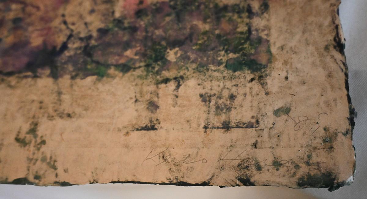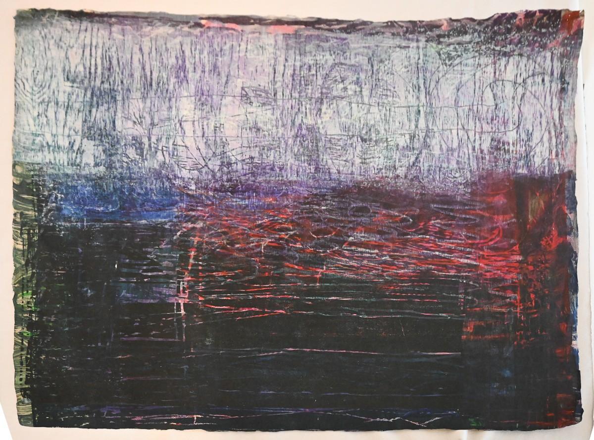 An abstract painting by artist Keiko Hara (Japanese, 1942-). Mixed Media. Approx. 20.5" x 30.5".