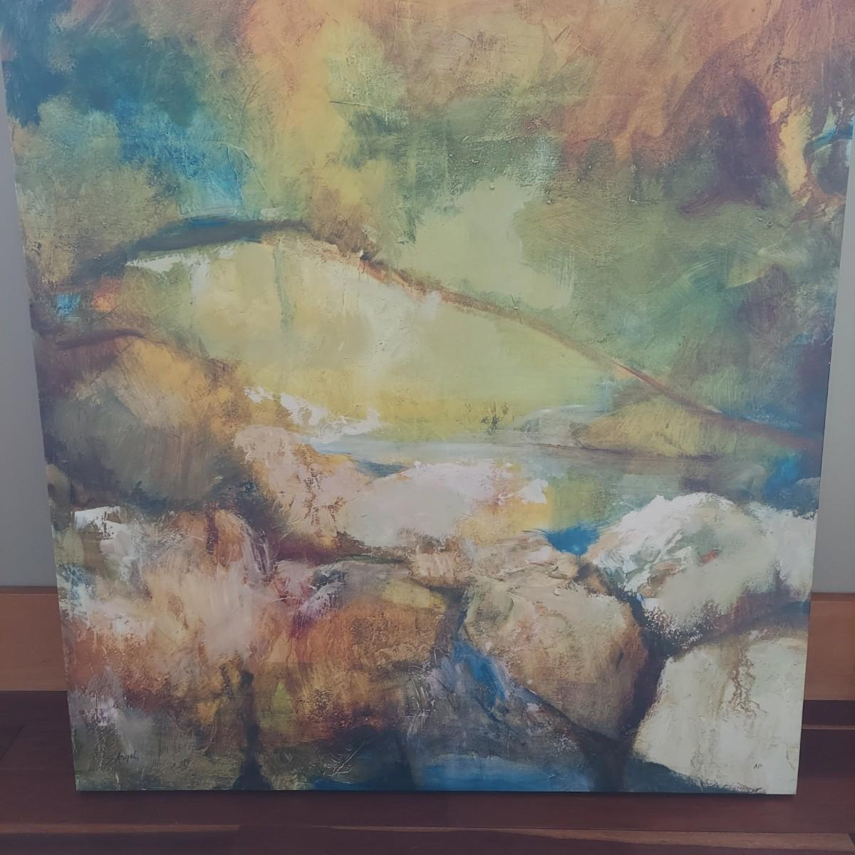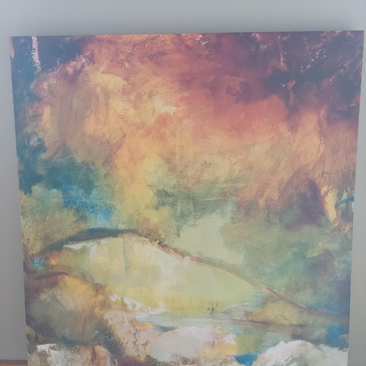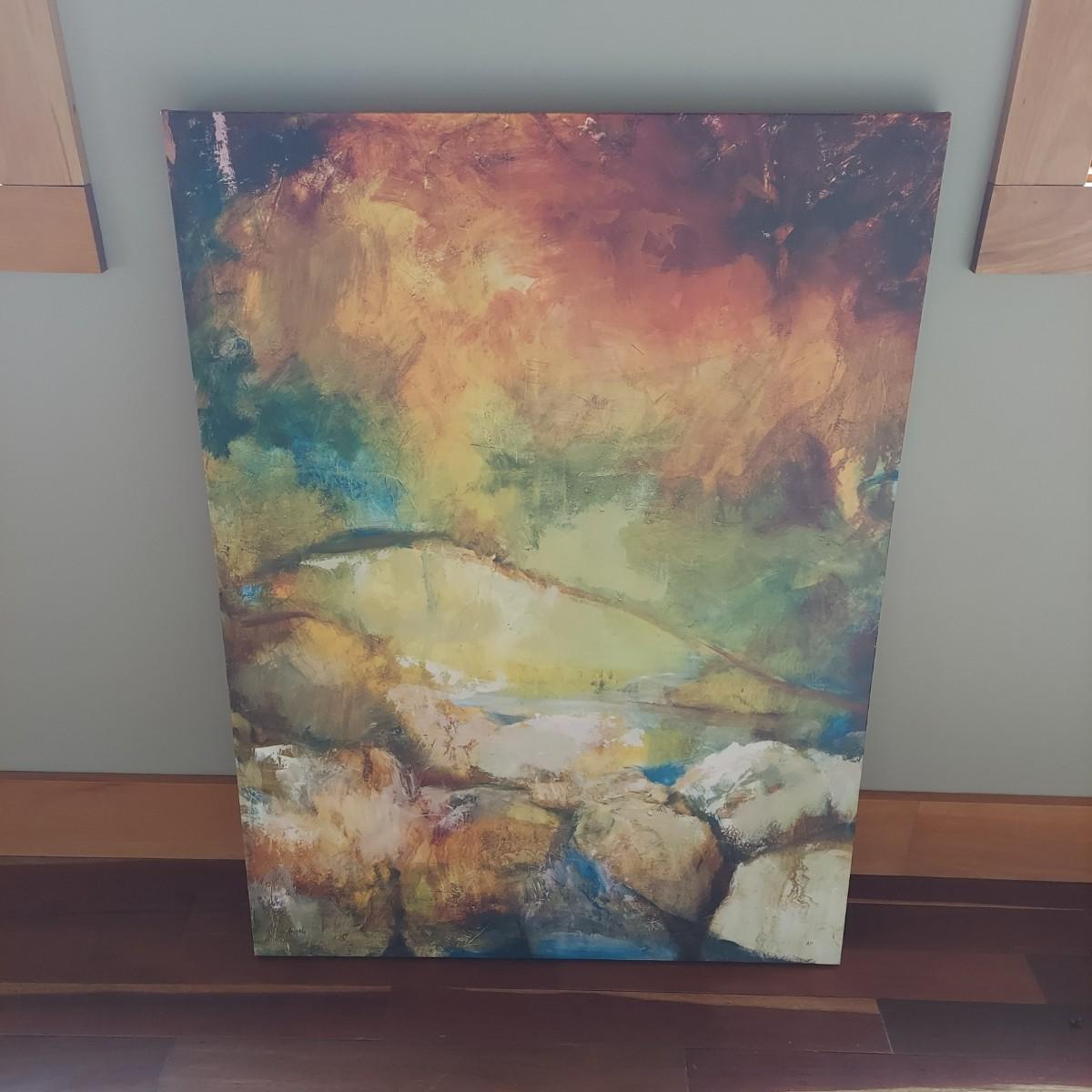 Abstract style landscape art printed on canvas. Made in USA. Measures approximately 30 x 2 x 40"H.