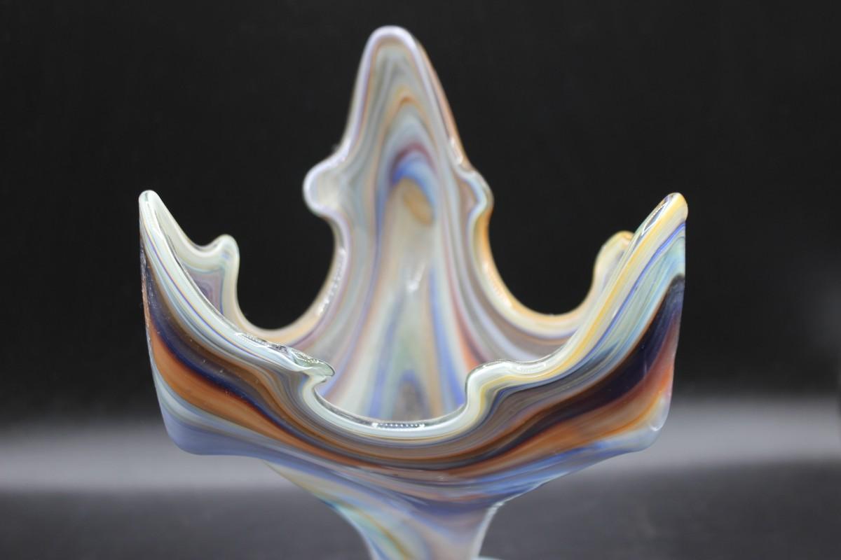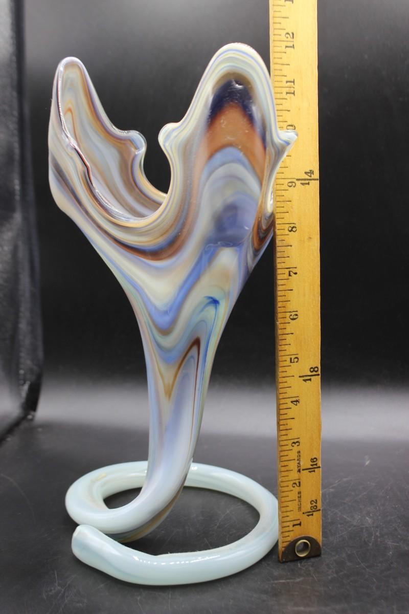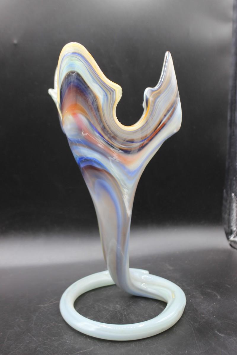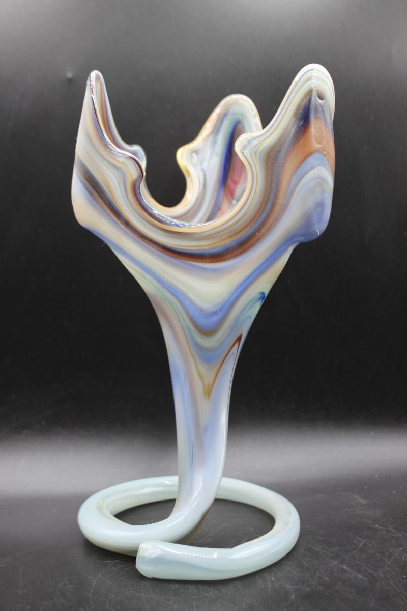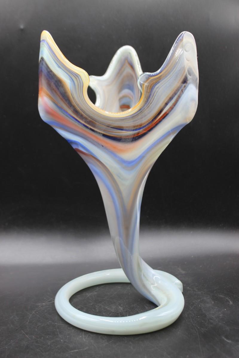 Abstract Swirled Colored Opaque Blown Glass Trumpet Vase