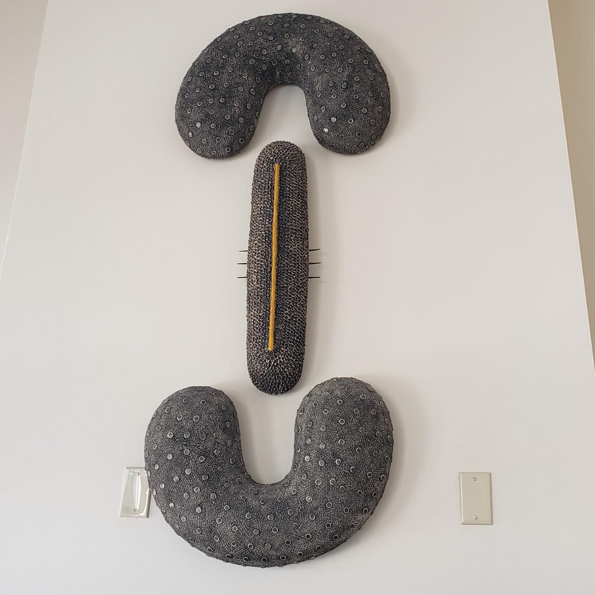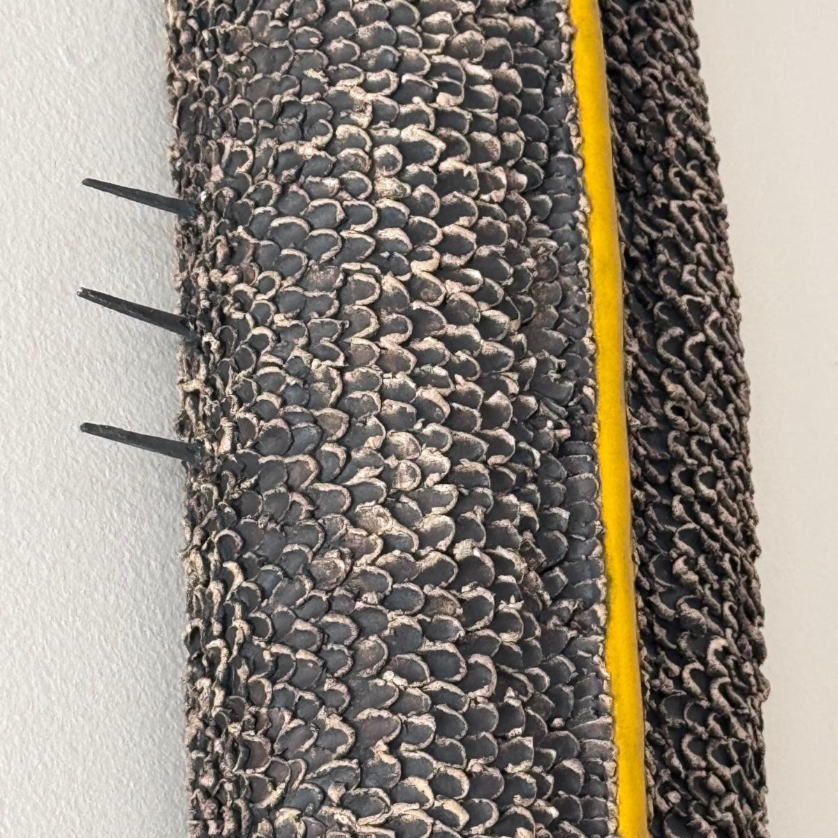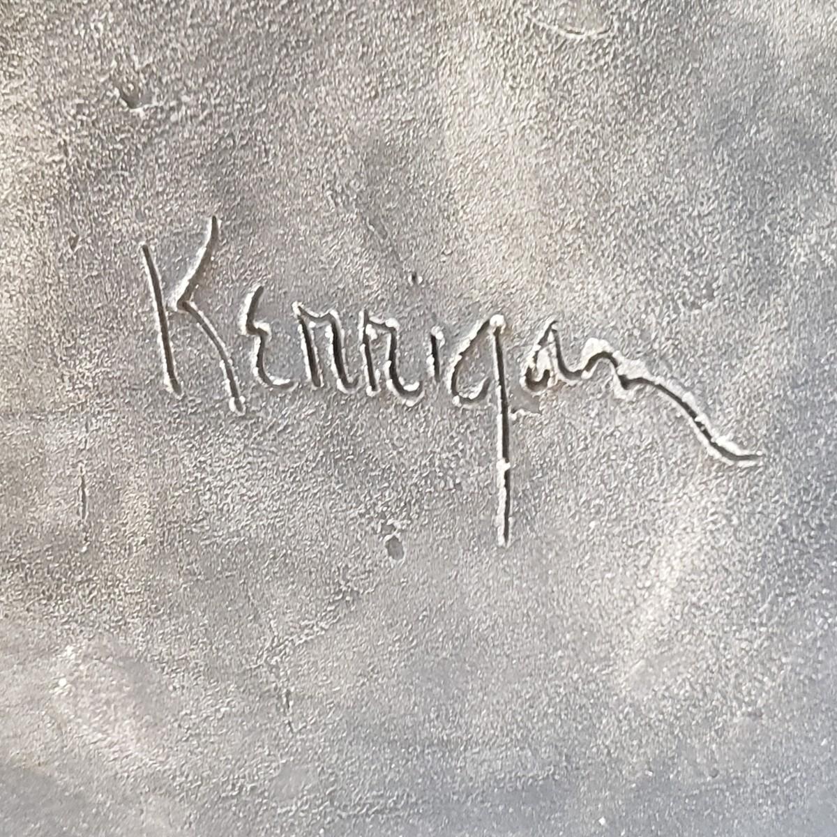 This lot includes one very unique three-piece ceramic wall art possibly by artist Thomas Kerrigan. At least one of the pieces appears to be signed - see picture included. The entire piece measures 54” x 4” x 21”H. They are hanging on French hooks, see picture. Shipping available. Shipping can be costly. We suggest contacting our preferred local shipping provider, Postage Express, with dimensions and getting an estimate before bidding: (828) 255-9250 or shipping@postageexpressnc.com.