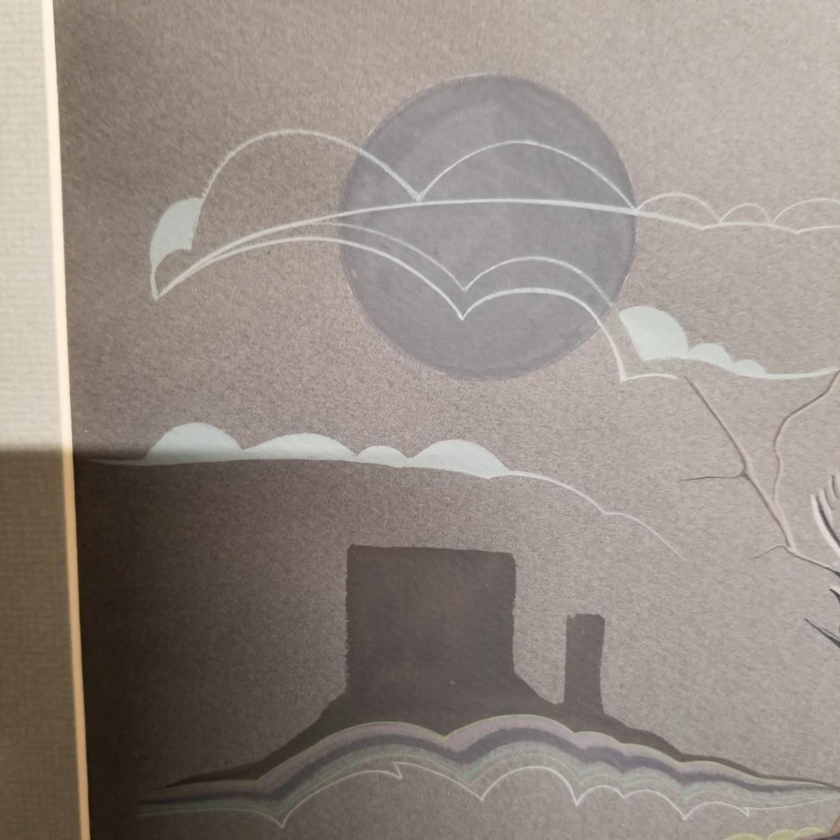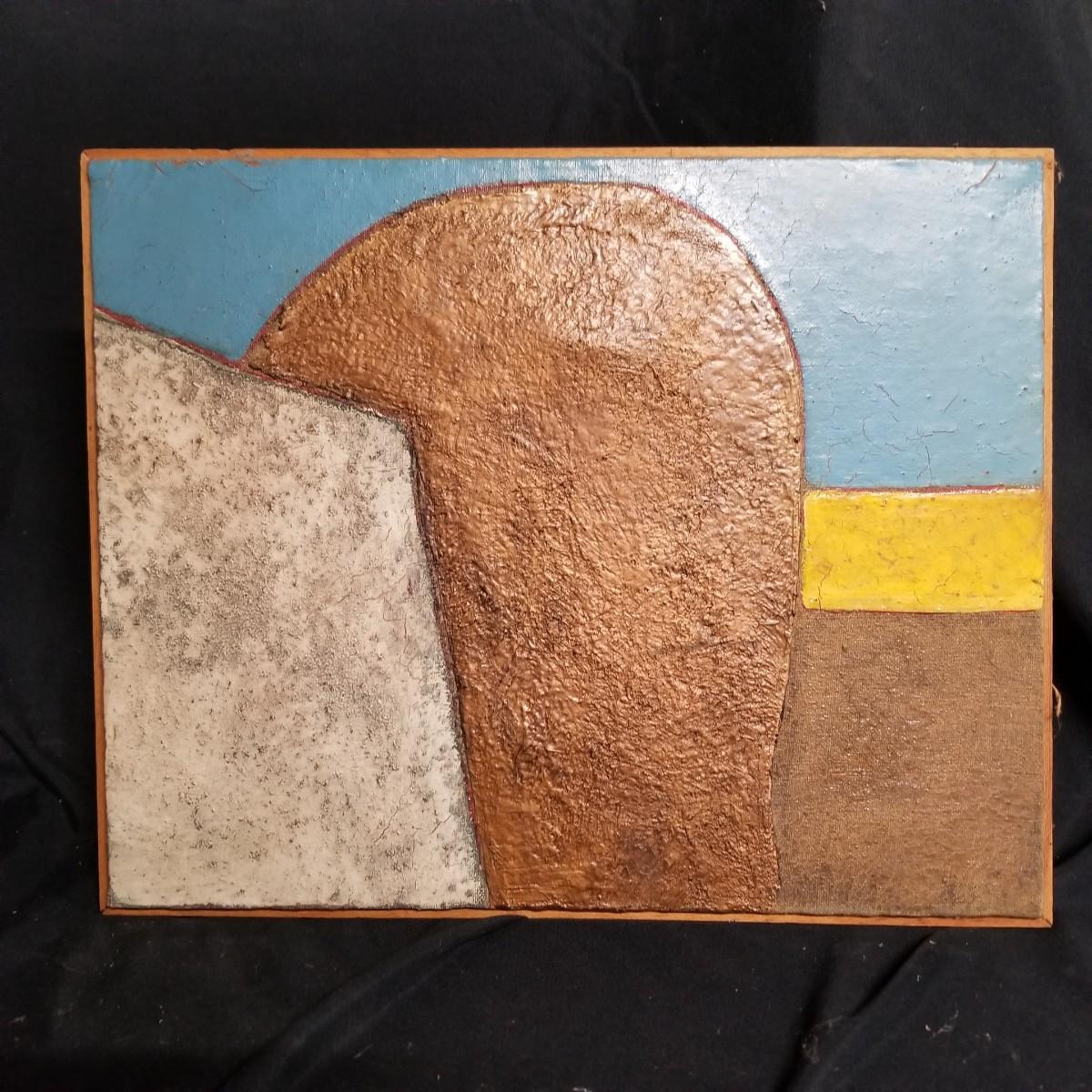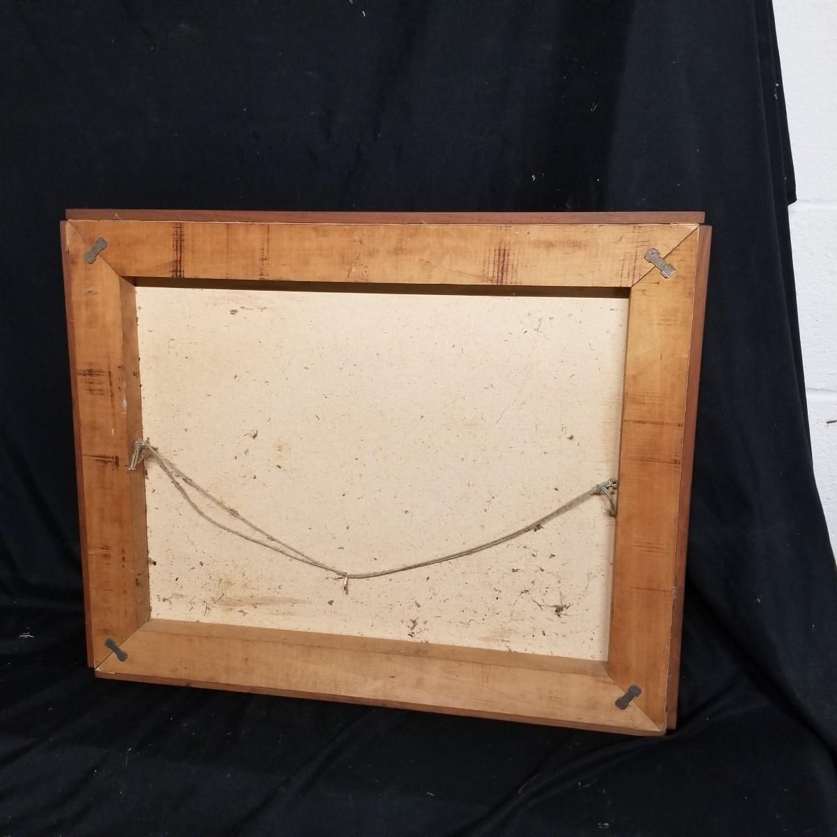 Two abstract oil on canvas paintings and one litho print.  Oils are hand framed with hangers.  Green trees piece is 21" x17", gold dome piece is 14 1/2" x 11 1/2".  Gold dome has texture finish.  Litho print is matted only, is 16" x18", and is signed.  See photos for detail.  Shipping available. Shipping Art can be costly please call UPS store at 828-252-6930 for quote.
