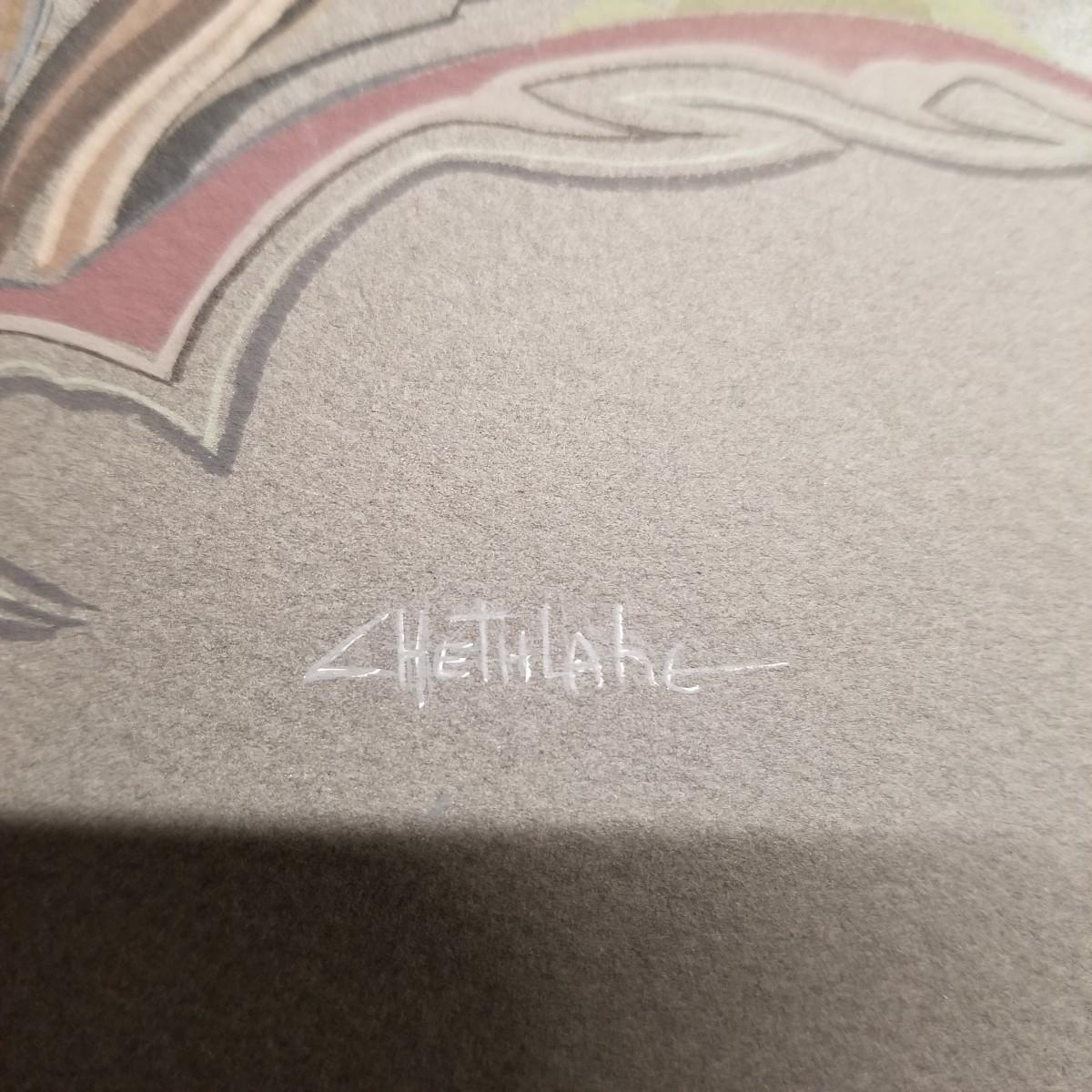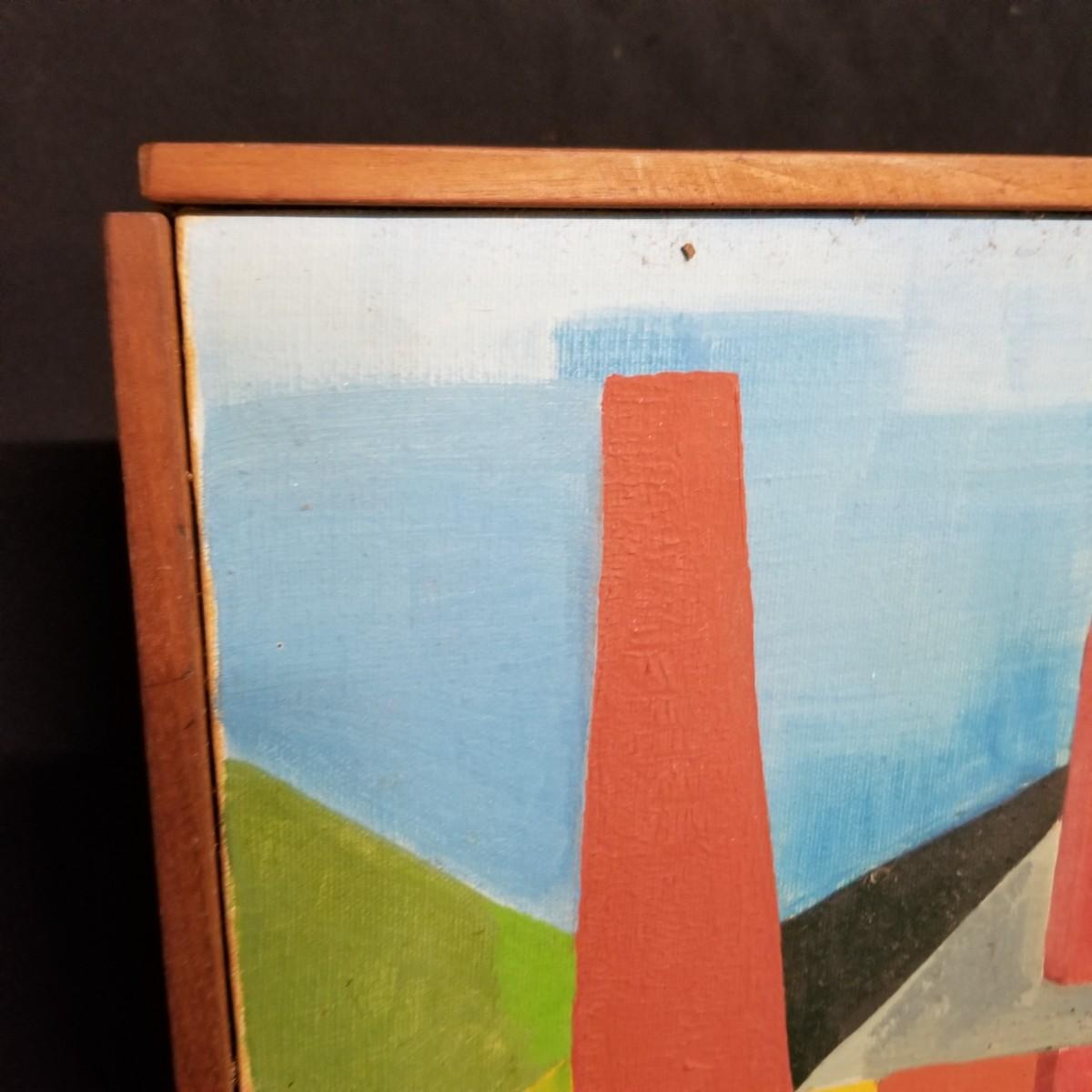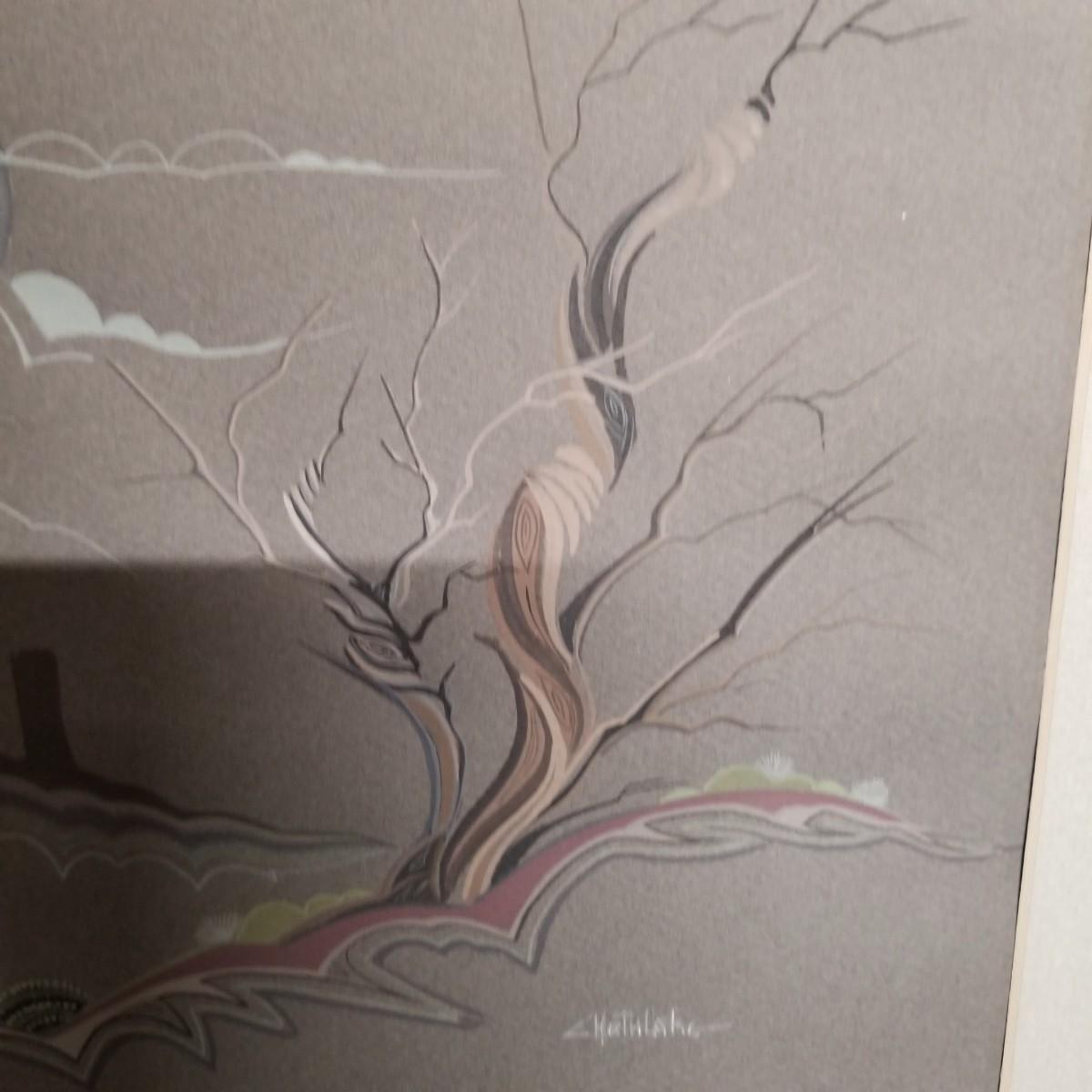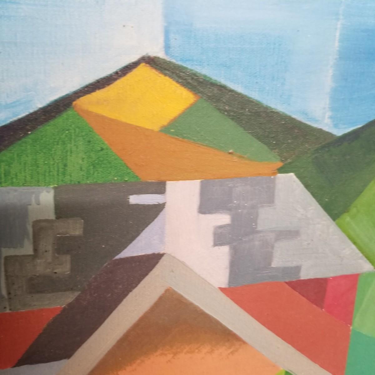 Two abstract oil on canvas paintings and one litho print.  Oils are hand framed with hangers.  Green trees piece is 21" x17", gold dome piece is 14 1/2" x 11 1/2".  Gold dome has texture finish.  Litho print is matted only, is 16" x18", and is signed.  See photos for detail.  Shipping available. Shipping Art can be costly please call UPS store at 828-252-6930 for quote.