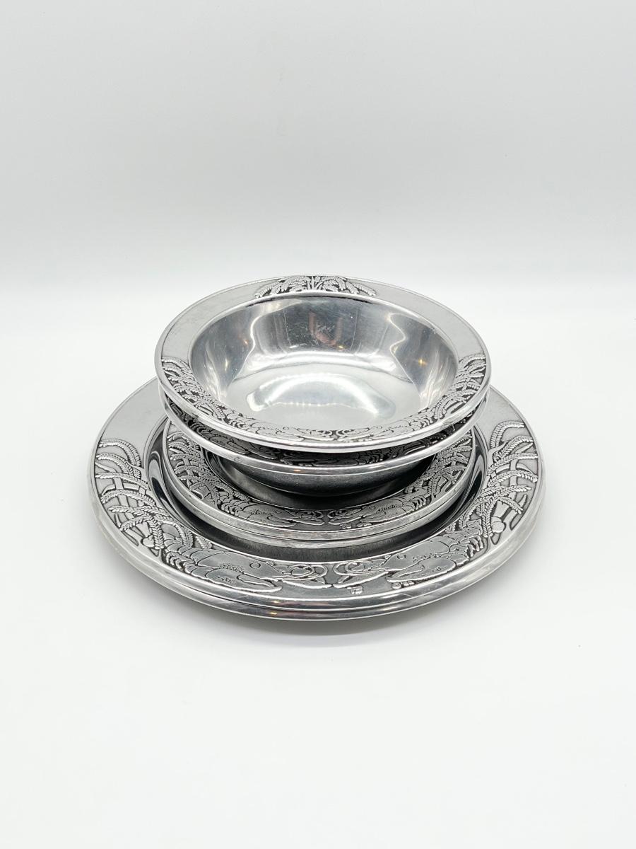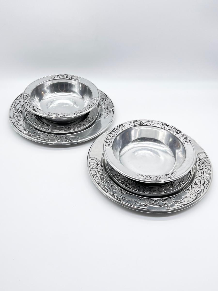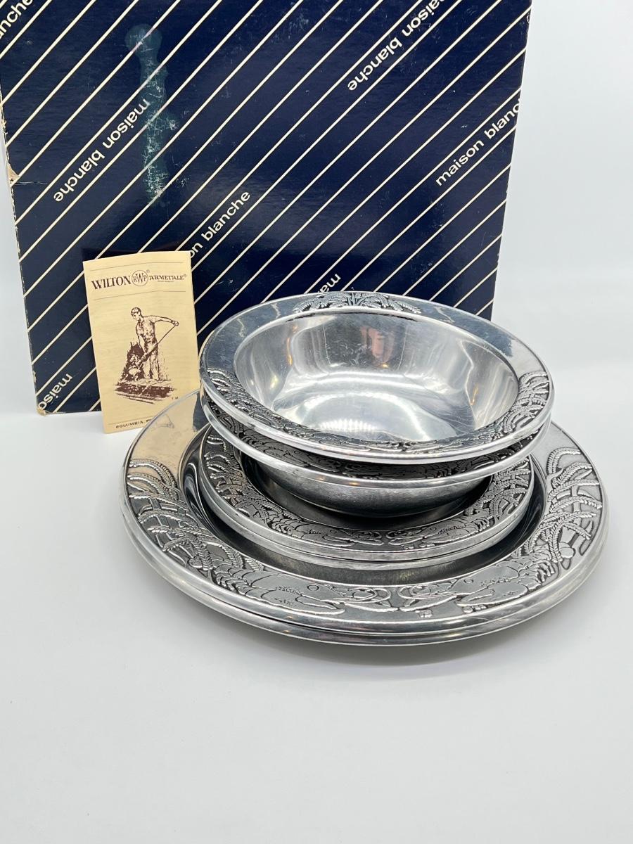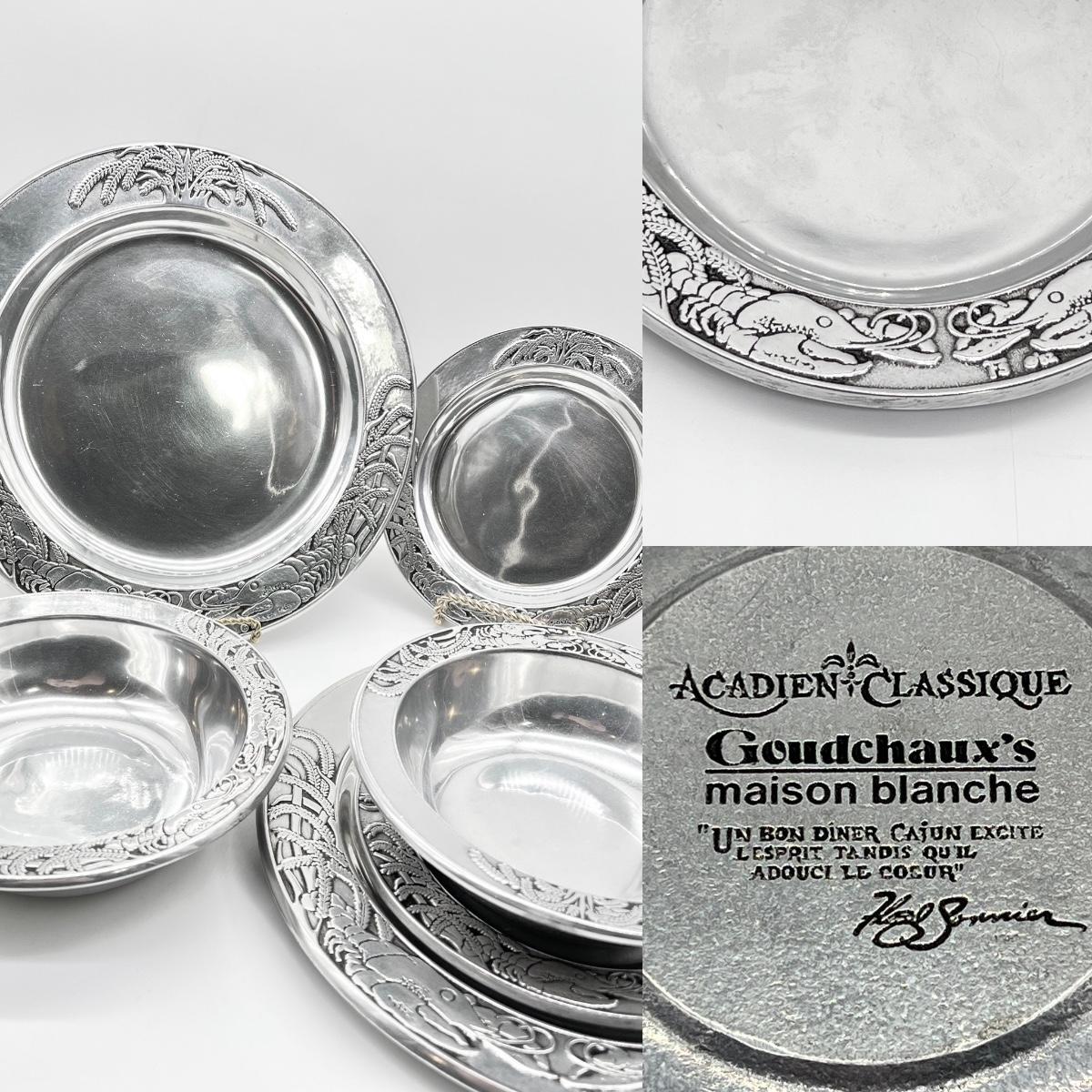 ACADIEN CLASSIQUE ~ Goudchaux’s ~ Maison Blanche ~ Pair (2) Metal Crawfish Bowl & Plate