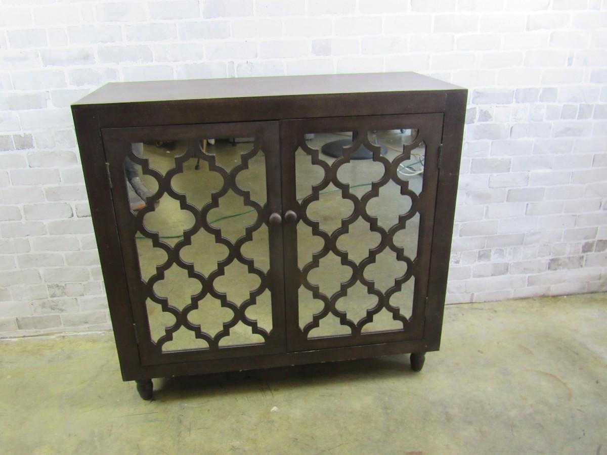 Accent Cabinet with Mirrored Doors & Trellis Pattern