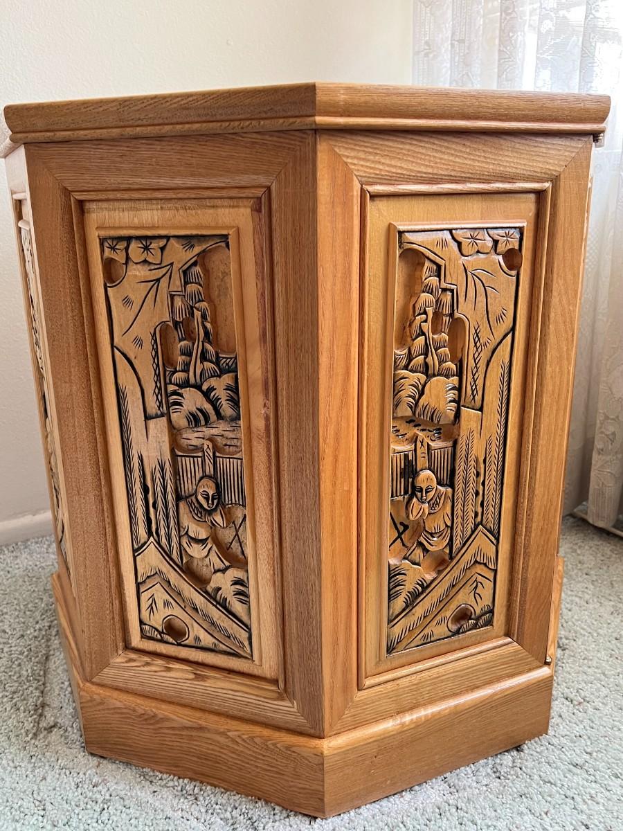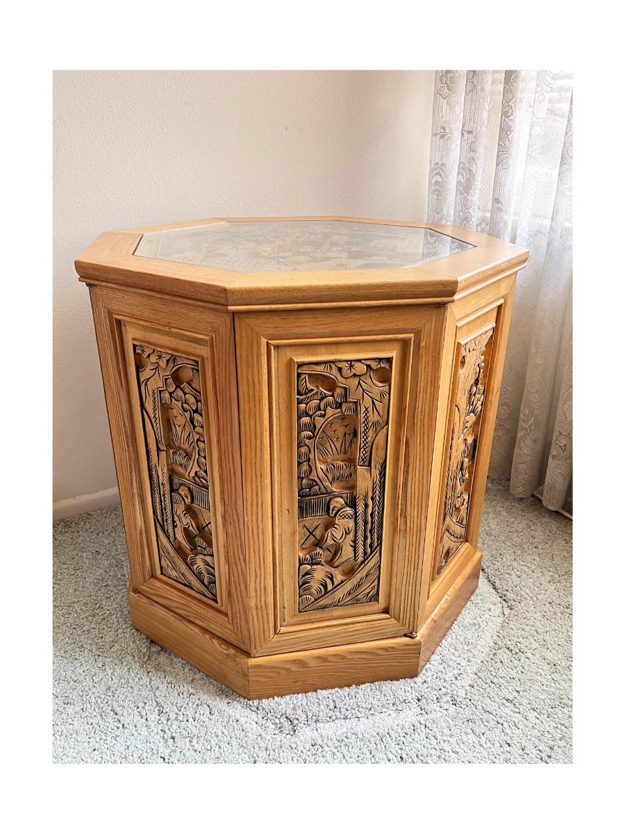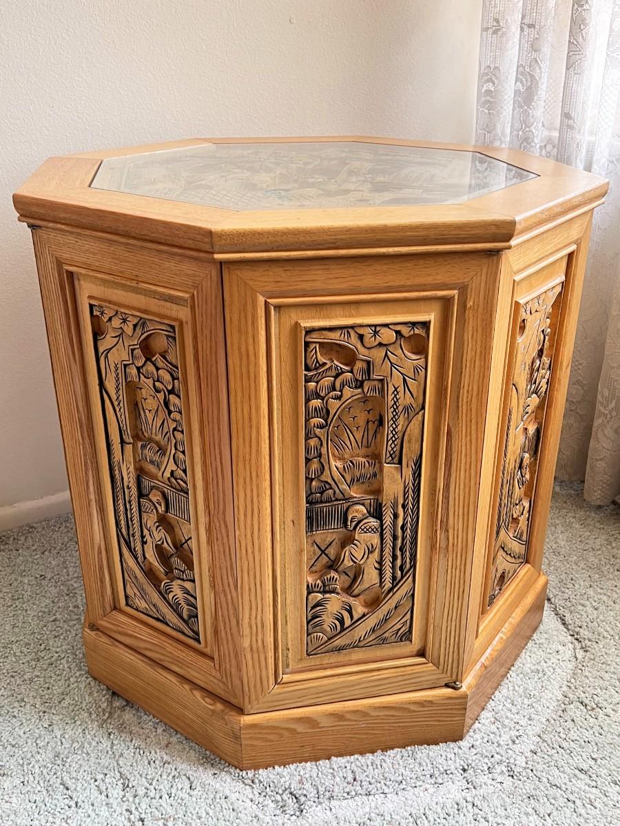 Oriental Accent piece - Octagon Table Cabinet with Carved Panels on Sides and Top
