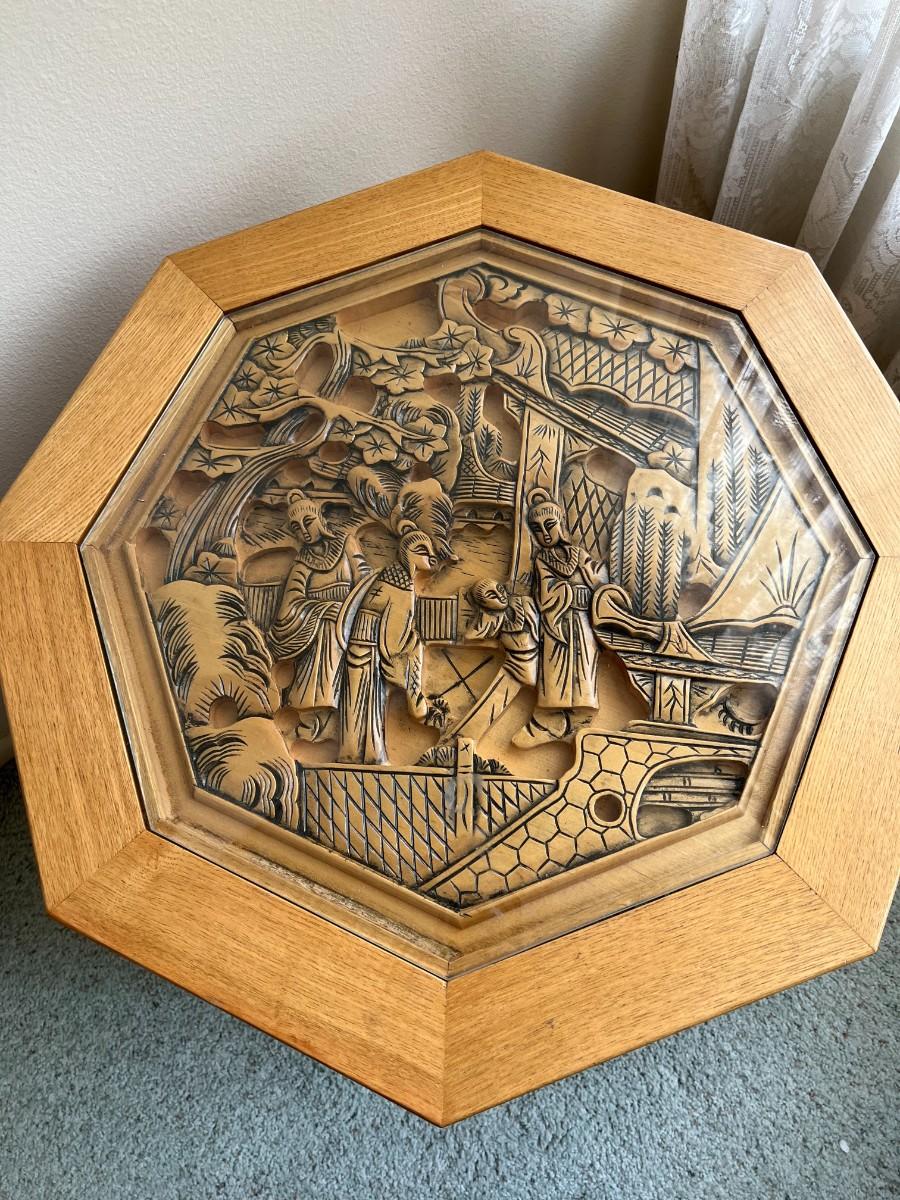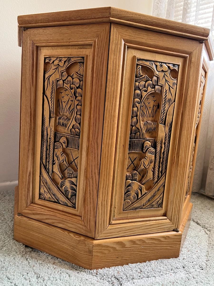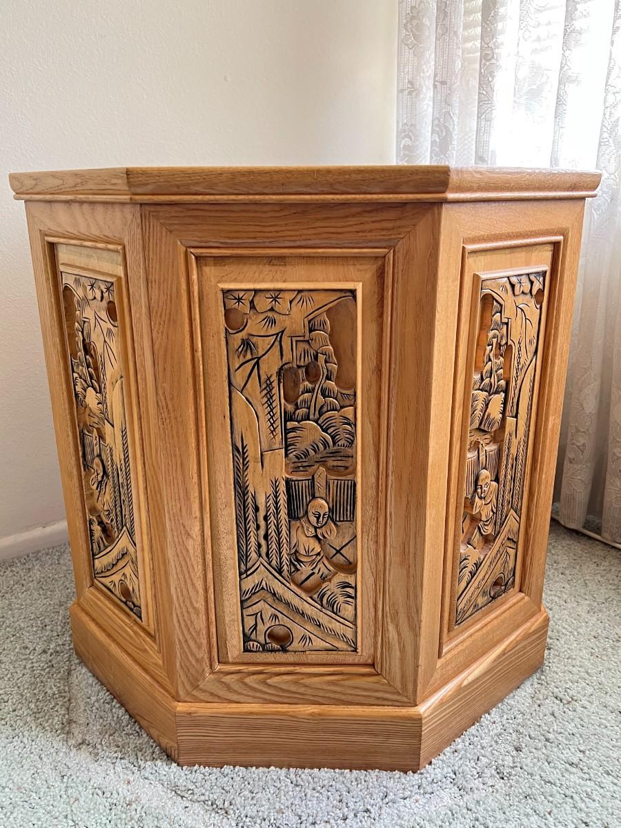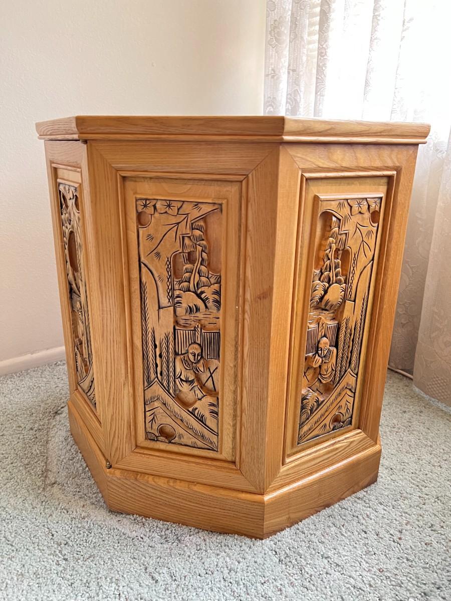 Oriental Accent piece - Octagon Table Cabinet with Carved Panels on Sides and Top