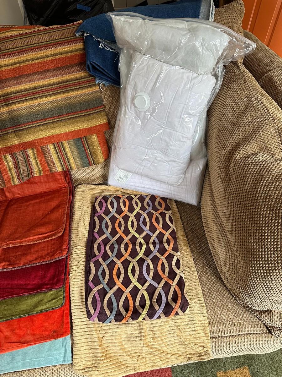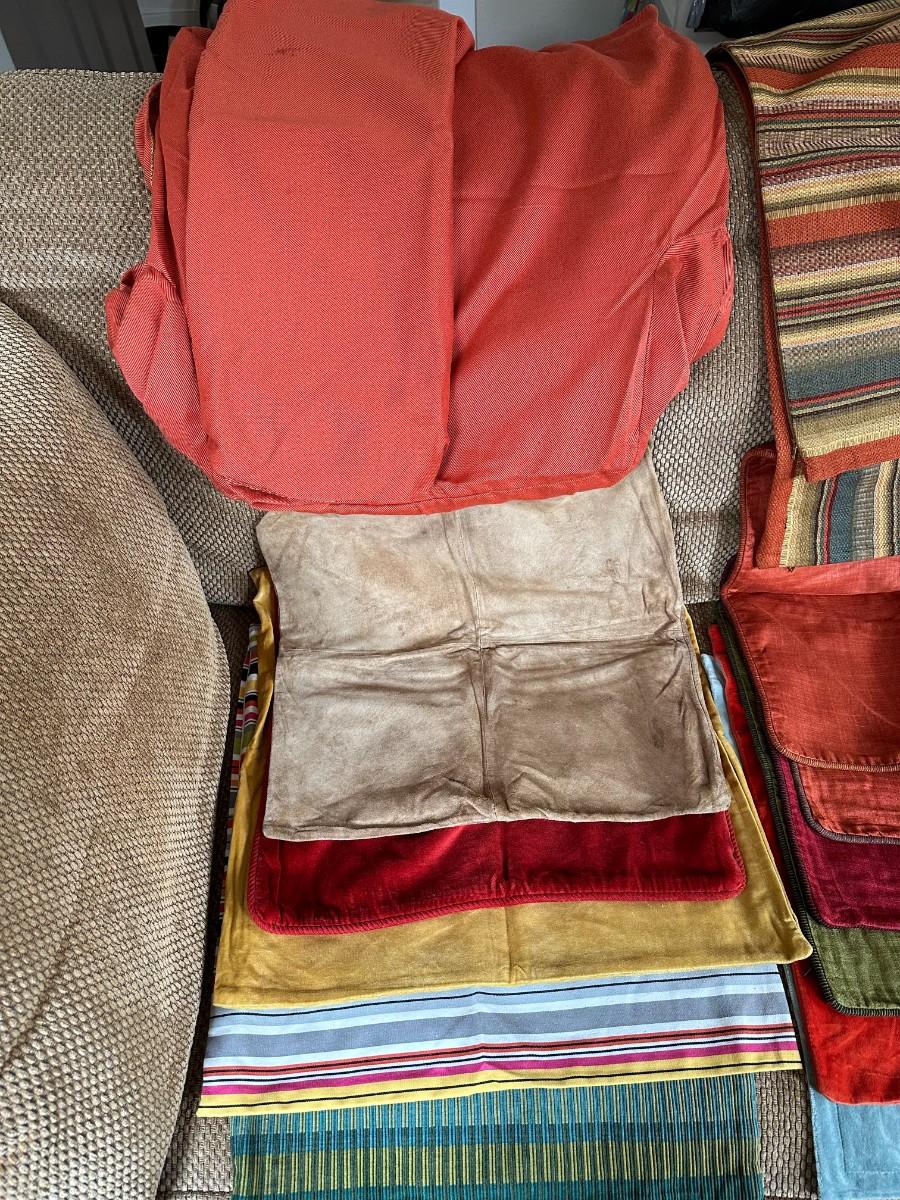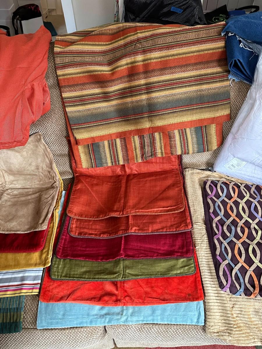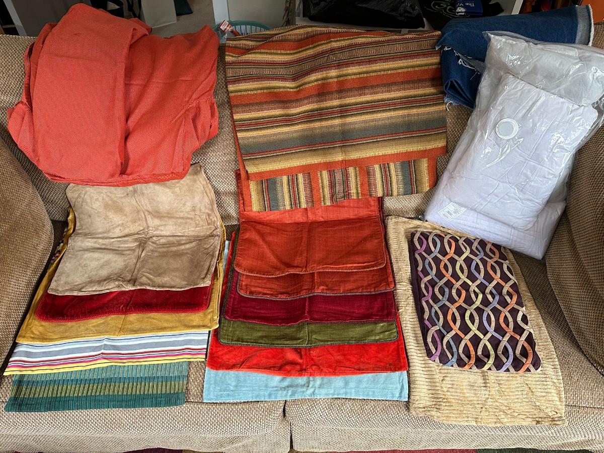 15 Assorted Pillow Covers, Orange Chair and Stool Cover, 3 pillow inserts, Denim Fabric approx. 60" x 76"