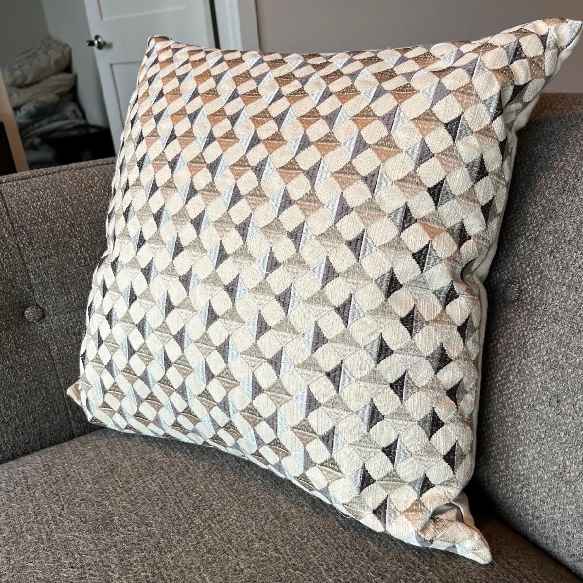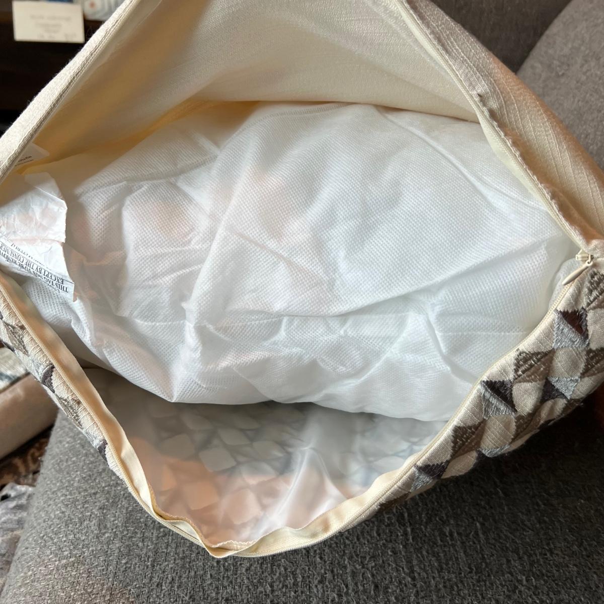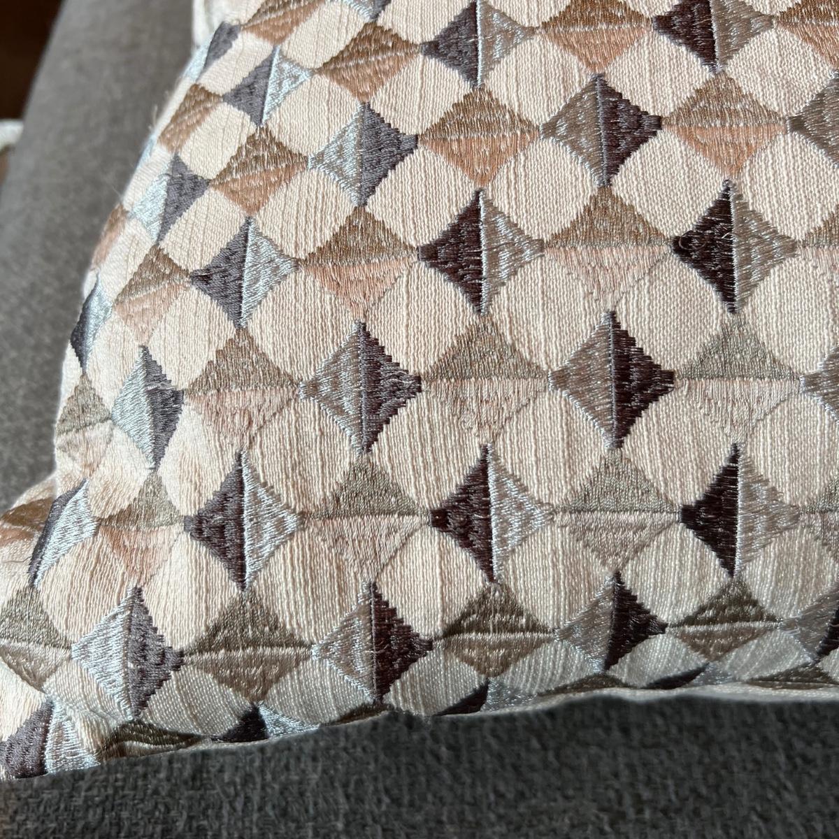 Largest pillow is the pillow with the diamond shaped design, it measures 18” square.