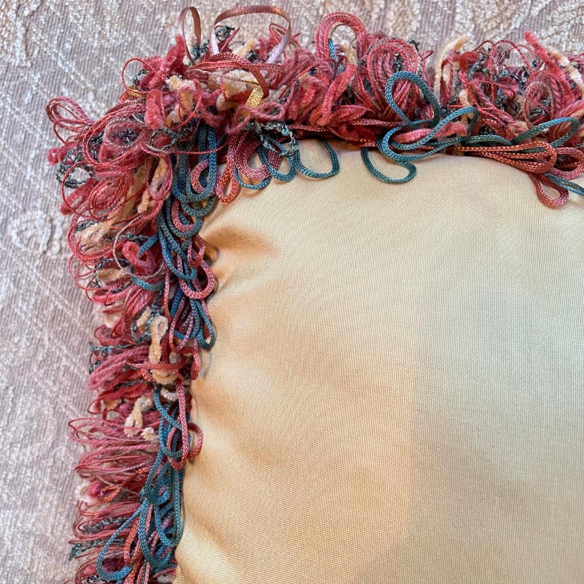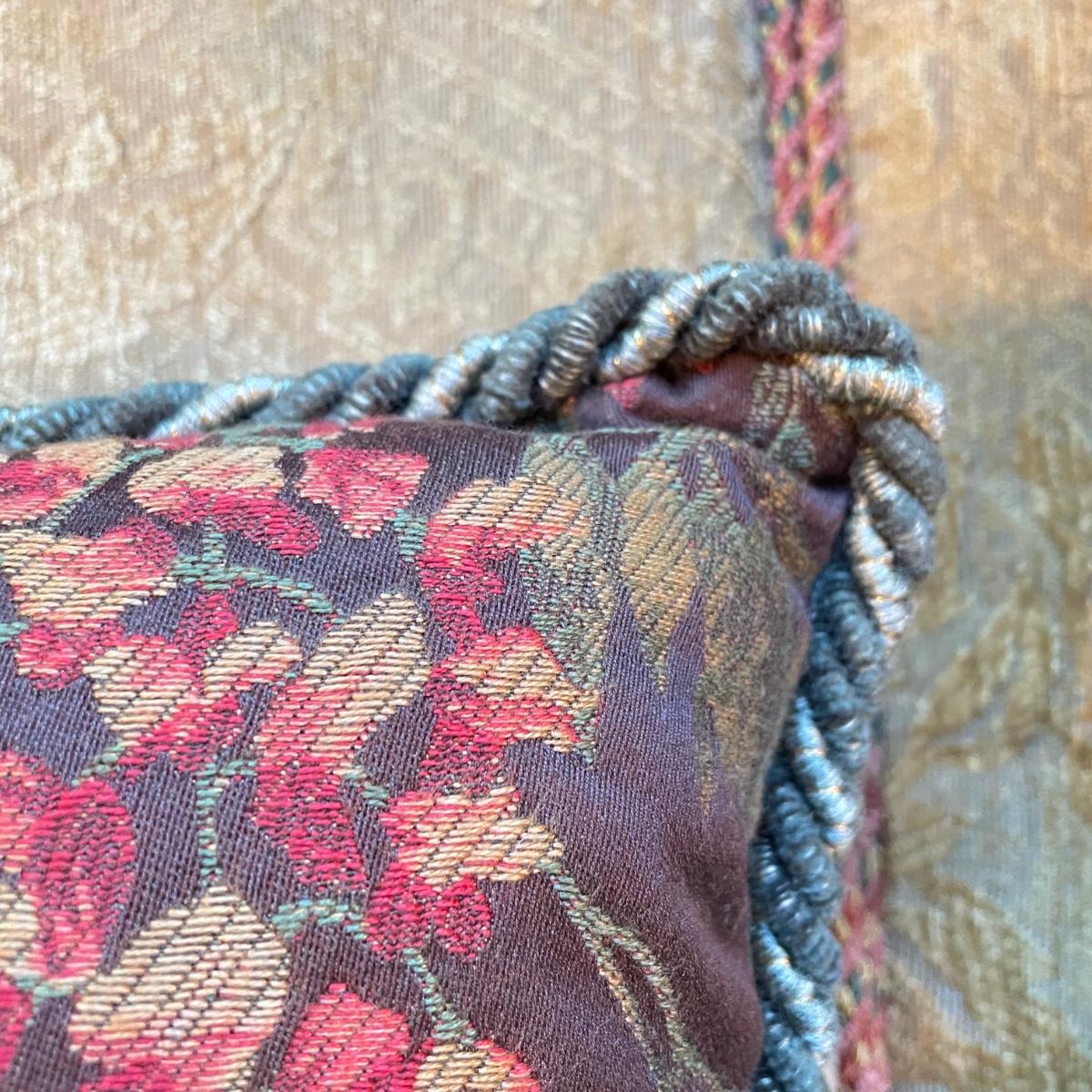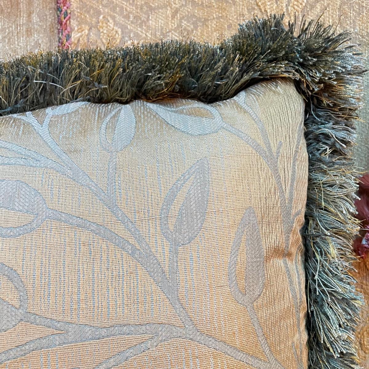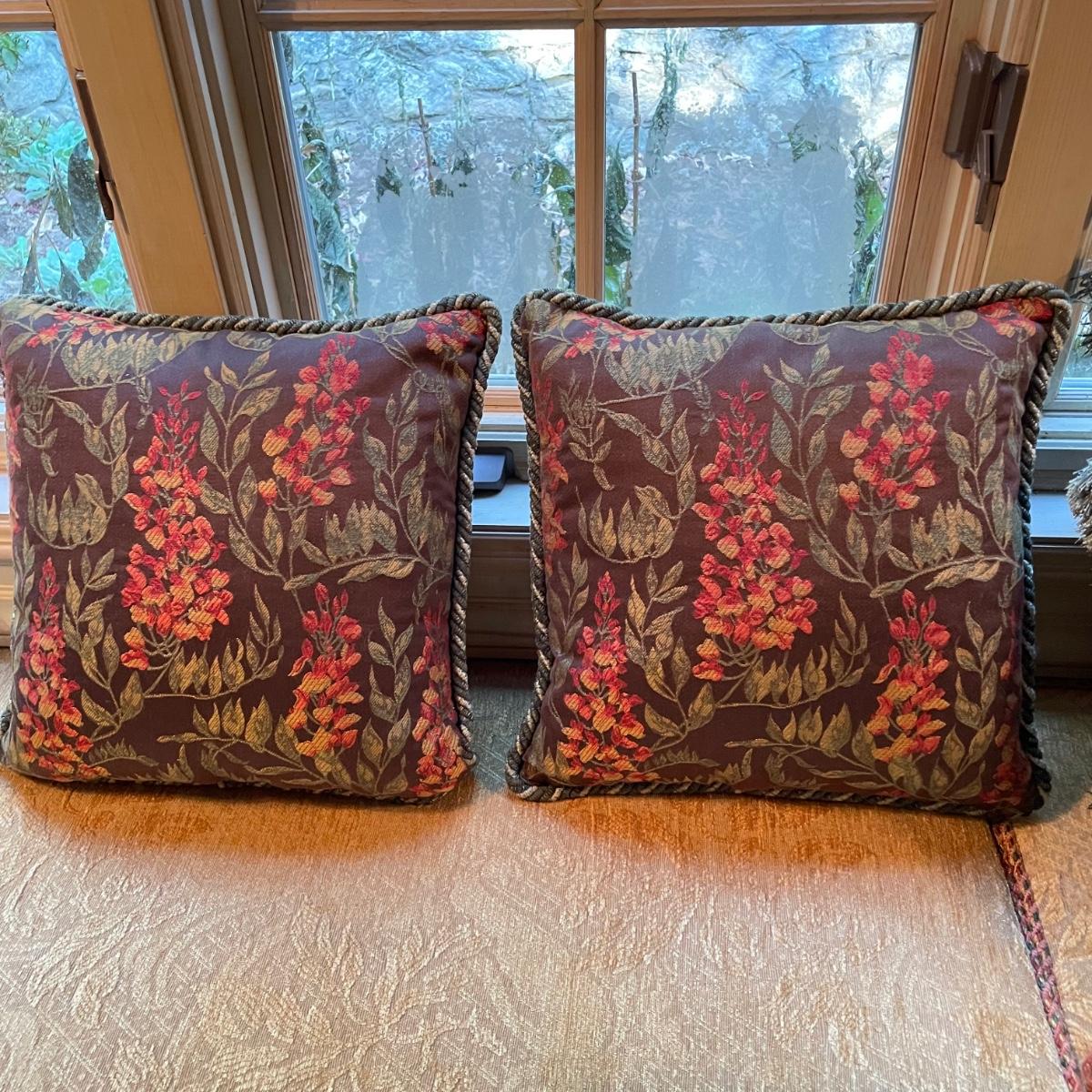 Three pairs of accent pillows plus a delicate ribboned and tassel pillow. The largest pillows are gold and green, they measure 17” x 16” without the fringe. See images. Local pick up only.