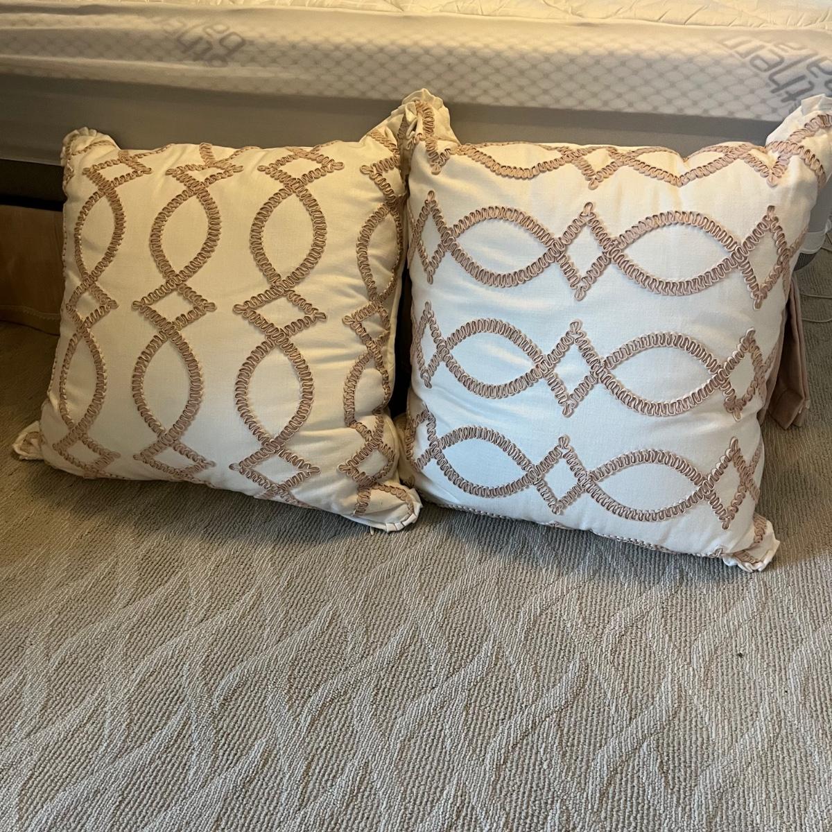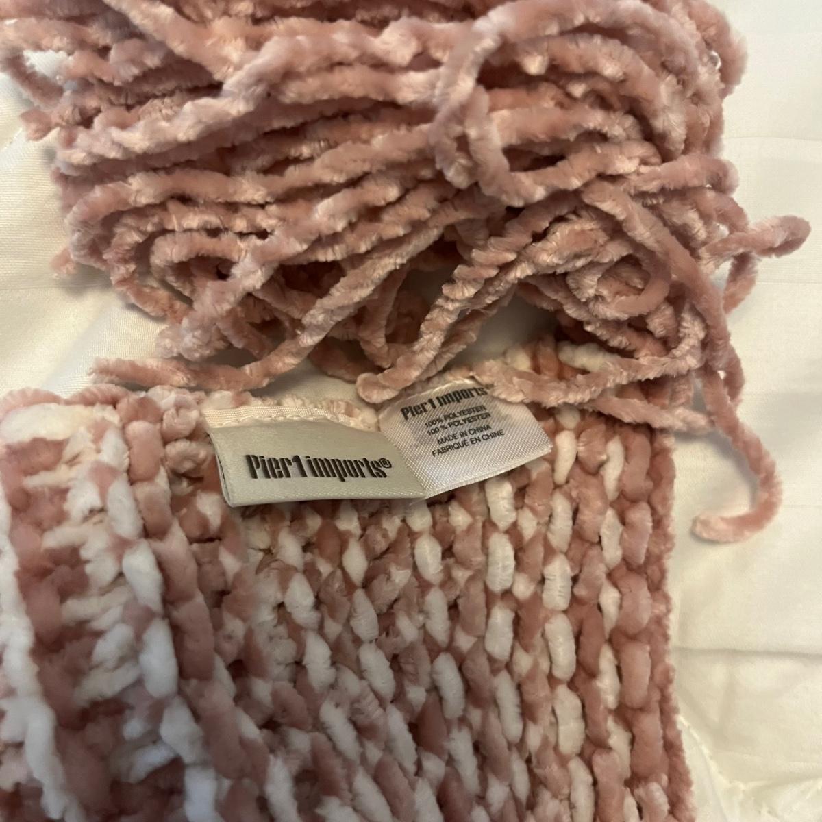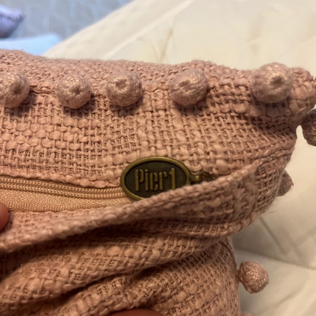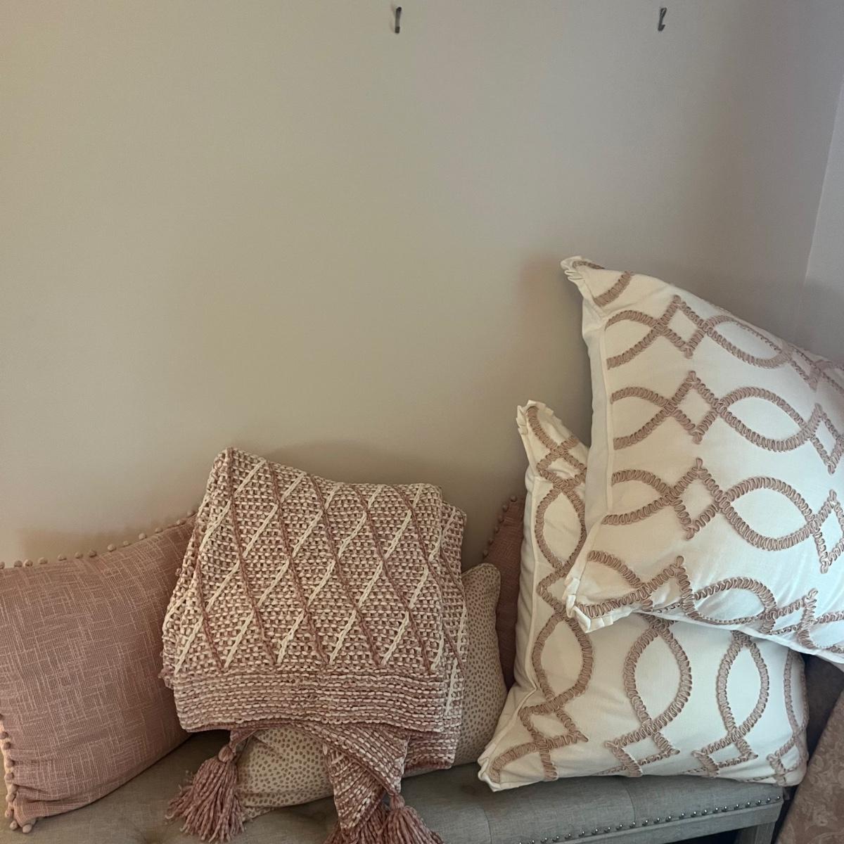 Lot includes two Pier One accent pillows, one Pier One throw, two large accent pillows and two smaller accent pillows. Largest pillows measure 28” x 10” x 26” and throw measures 48” x 72”.
