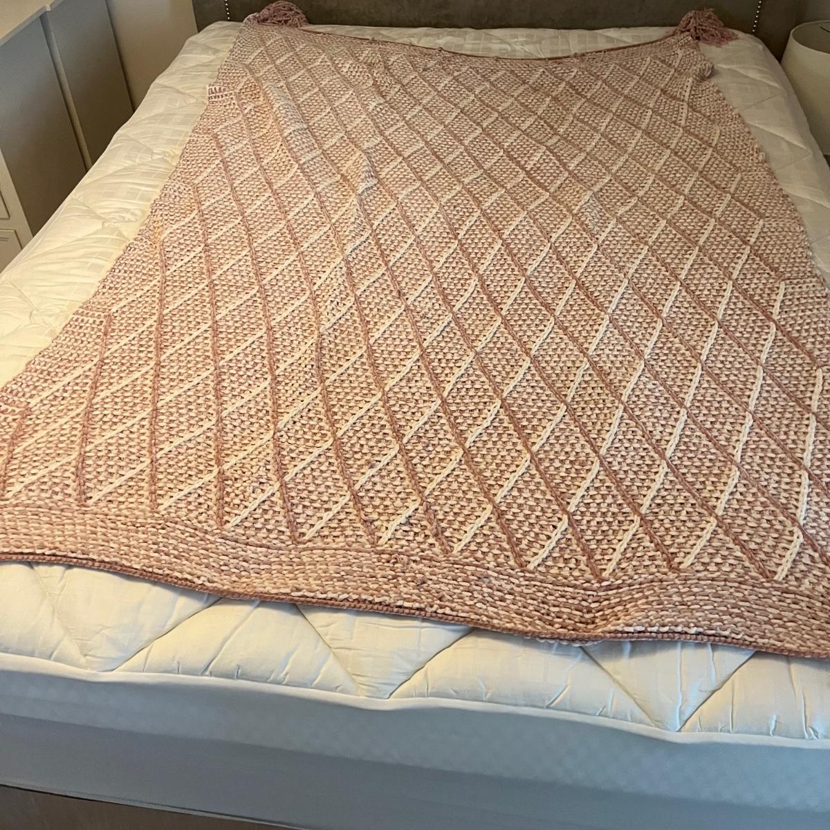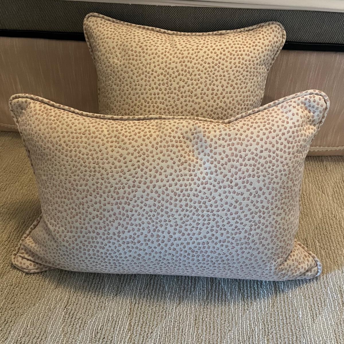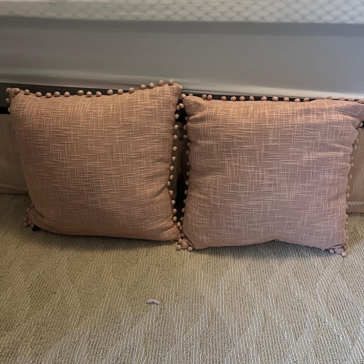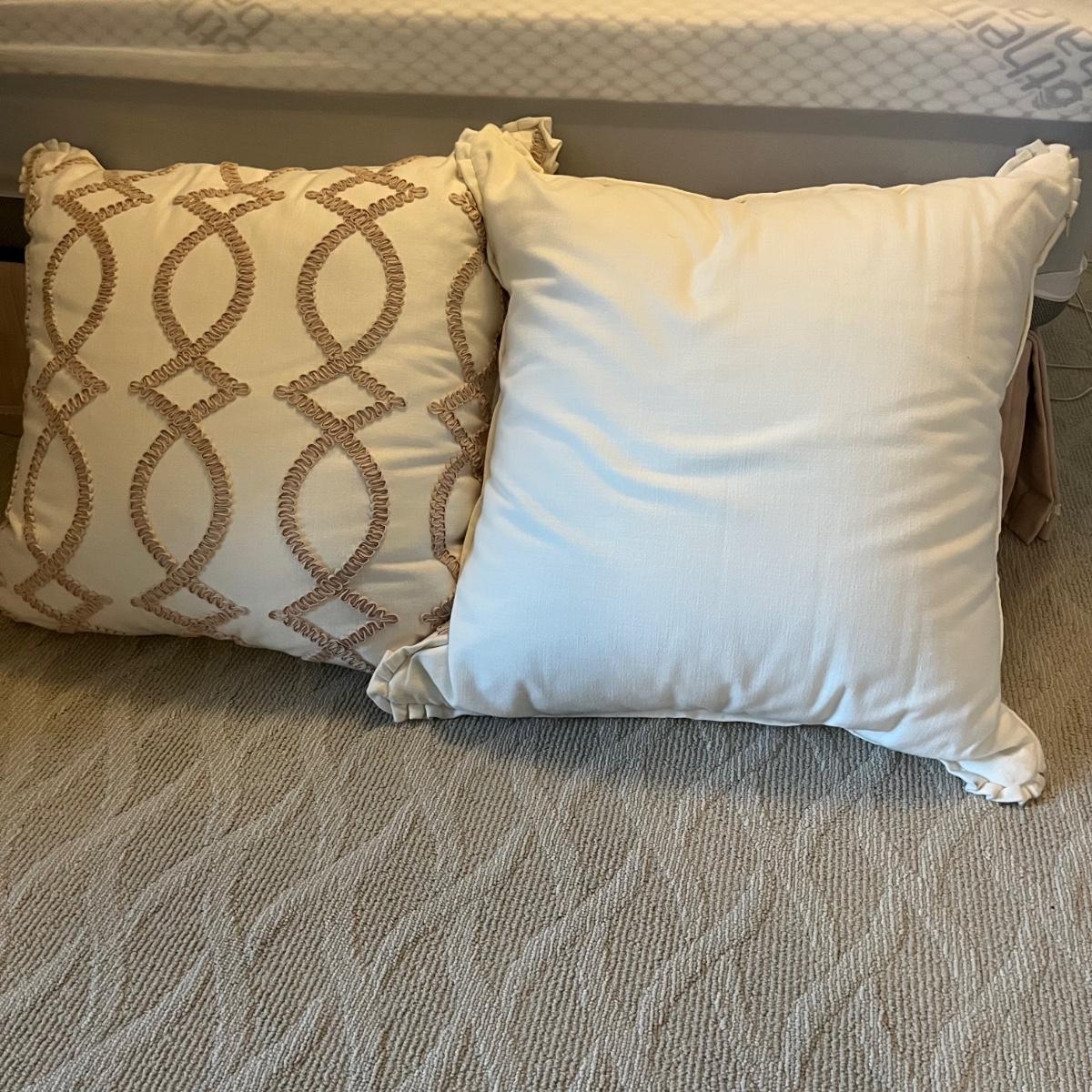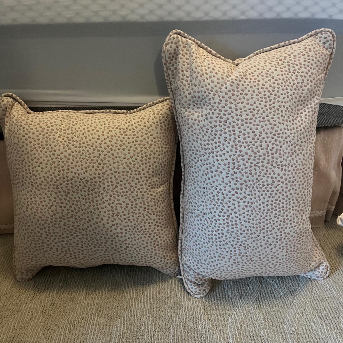 Lot includes two Pier One accent pillows, one Pier One throw, two large accent pillows and two smaller accent pillows. Largest pillows measure 28” x 10” x 26” and throw measures 48” x 72”.
