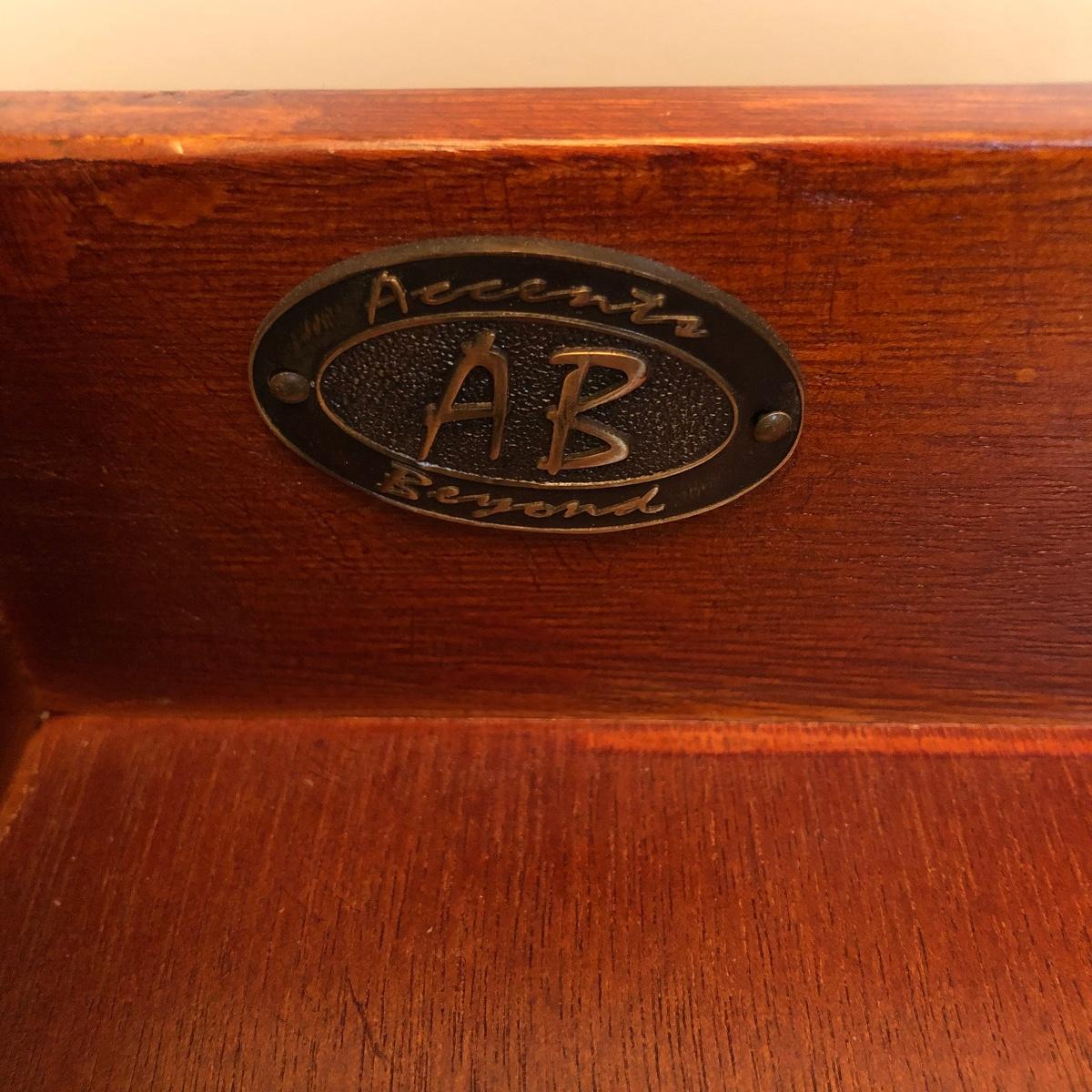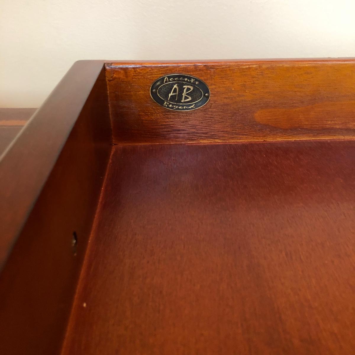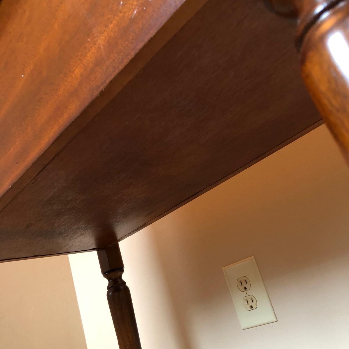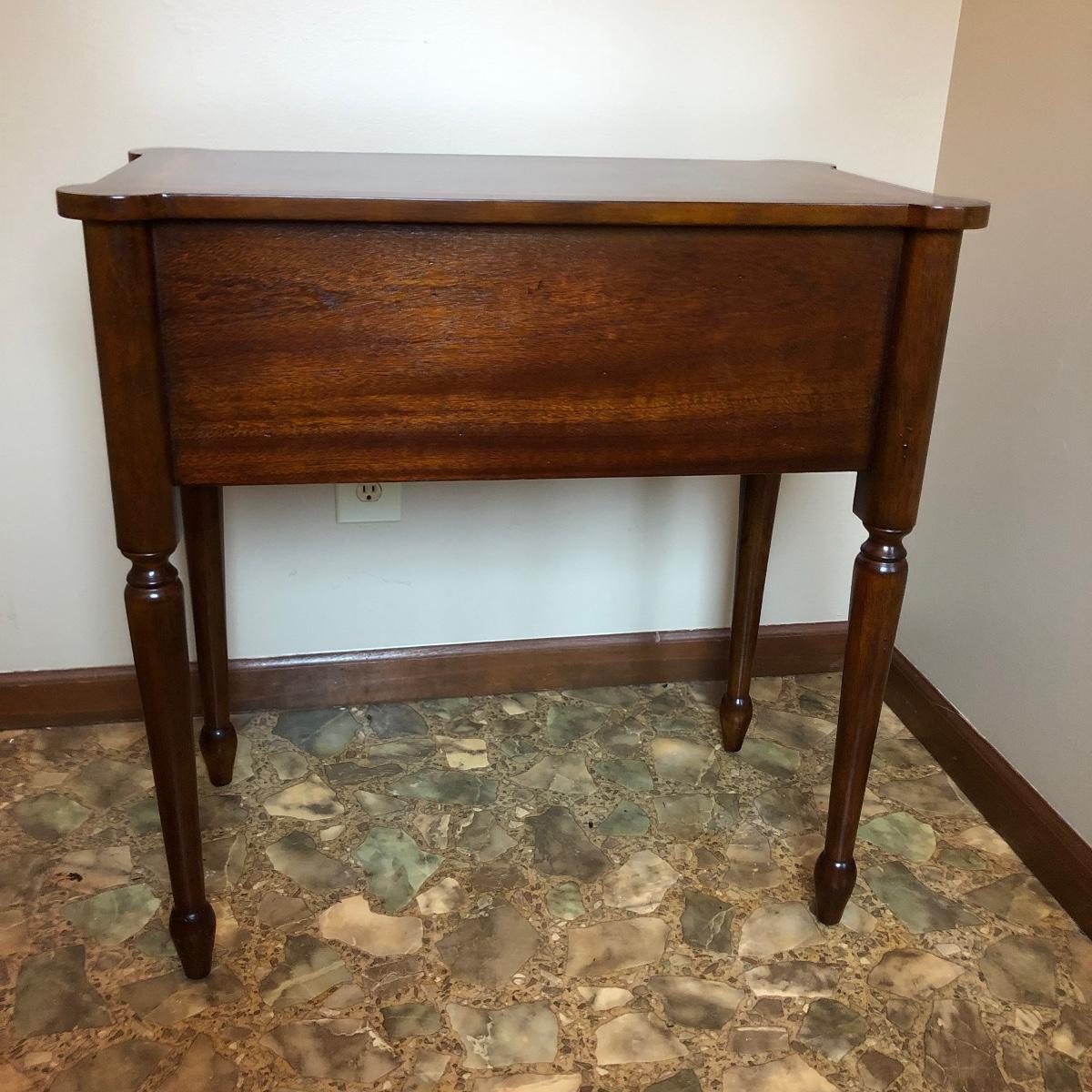 Lot includes a four dovetailed drawer side table with inlays on top and on drawers. Table measures 17” x 30” x 30”.
