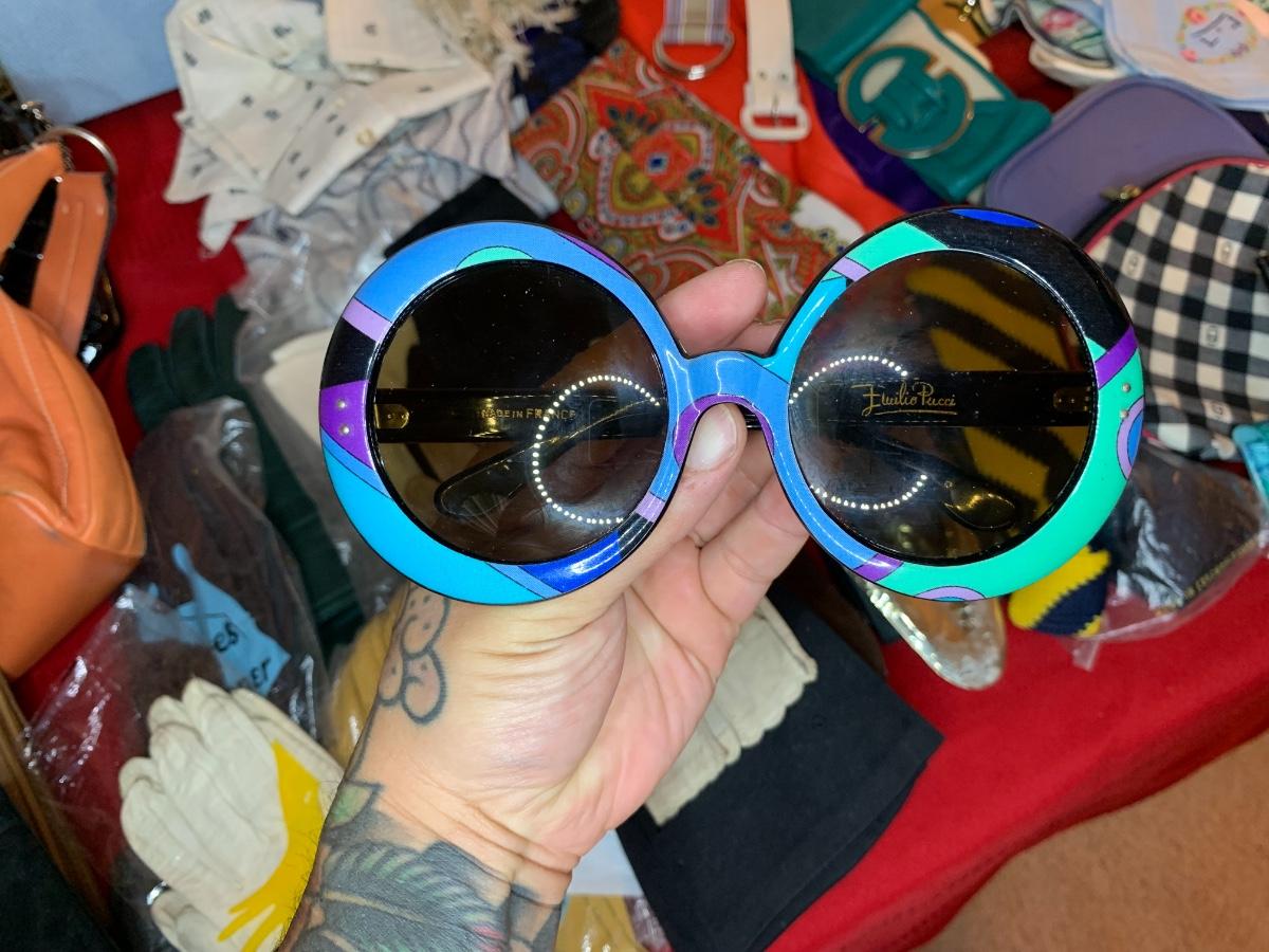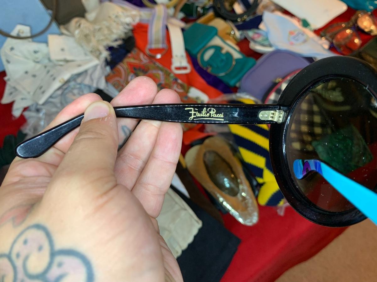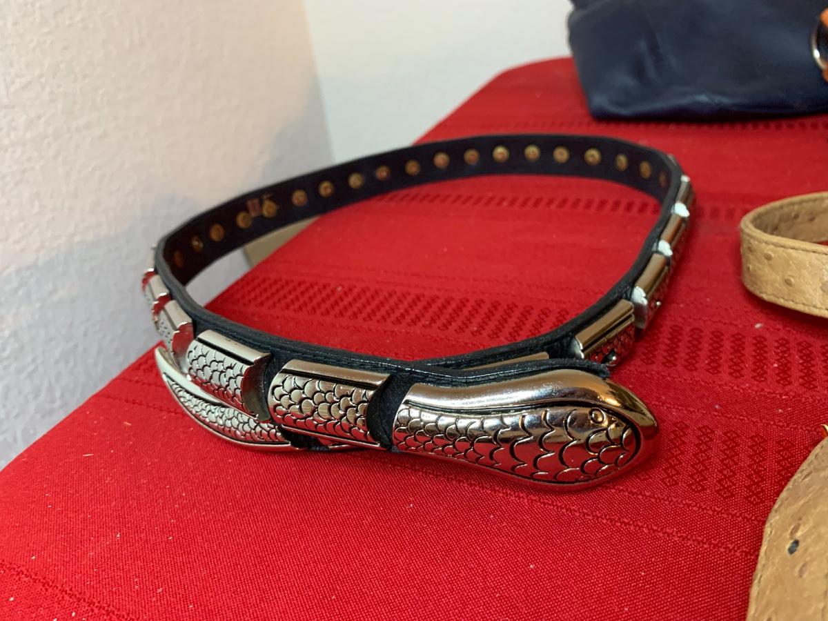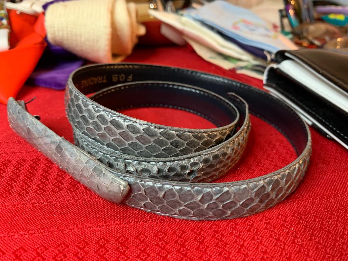 Lot full of accessories including vintage belts (smaller waist), purses and hand bags, gloves, hankies, scarves, makeup pouches, dickies, Fuilio Pucci glasses, Dolce and Gabbana prescription glasses with bifocal. Snake belt by Cignal.