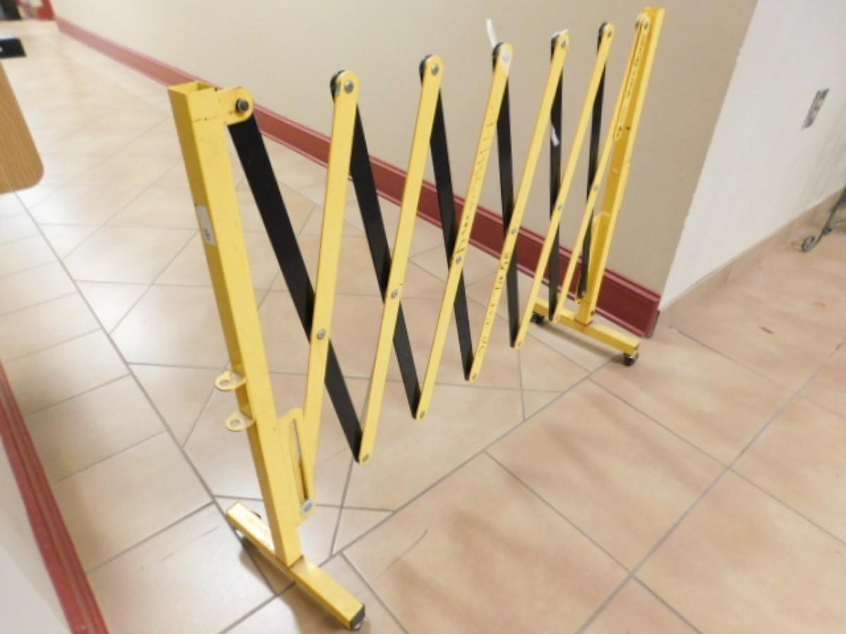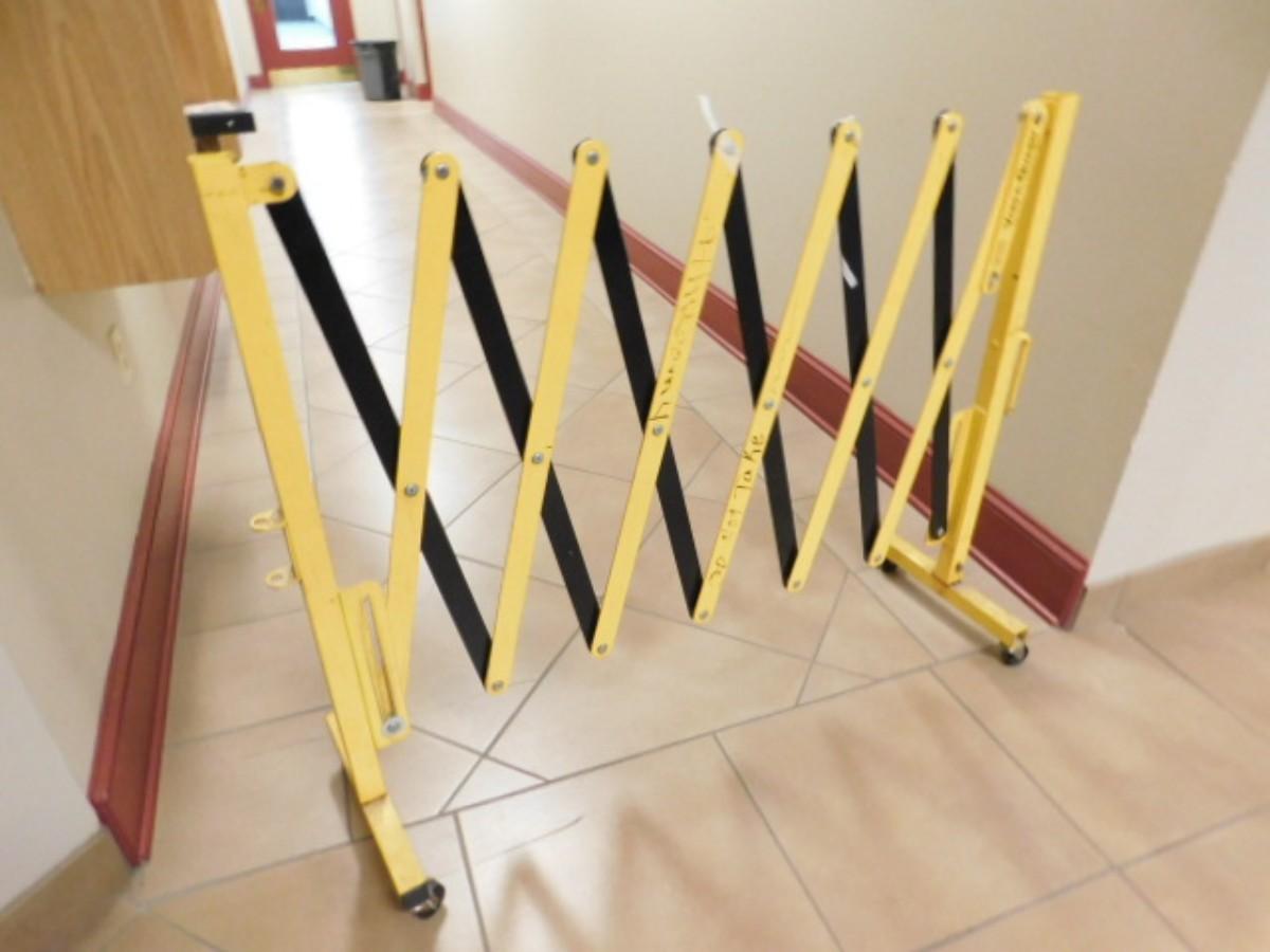Accordion Mobile Traffic Barrier 10' Expect some wear or scratches to finish. Shipping option available via freight or local mover at Buyer's expense. Buyer must have all shipping scheduled within the stated dates and times of pickup. Recommended local mover is Beaty Bros. Moving 828-201-2982