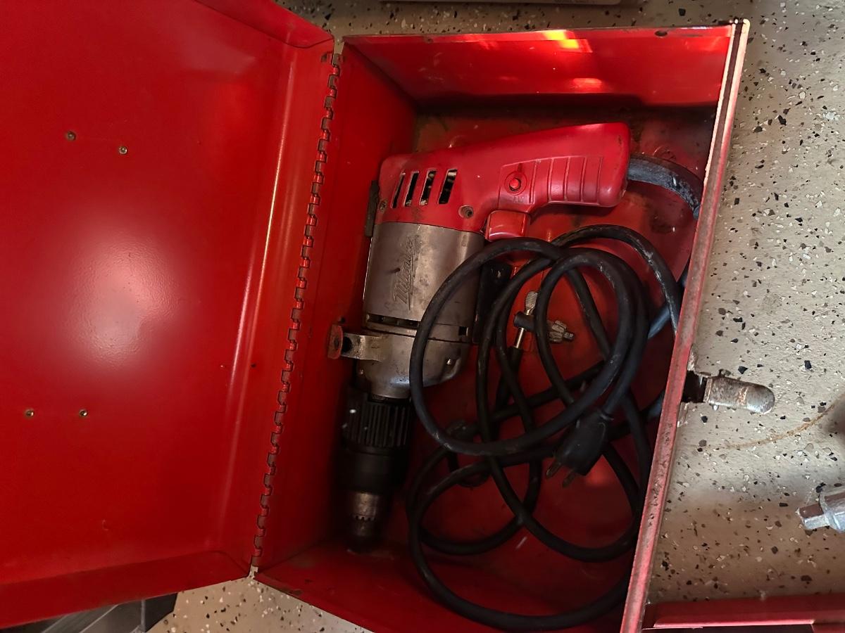 ACE IMPACT WRENCH, VINTAGE MILWAUKEE HAMMER DRILL WITH RED TOOL BOX
