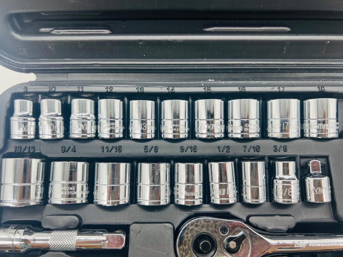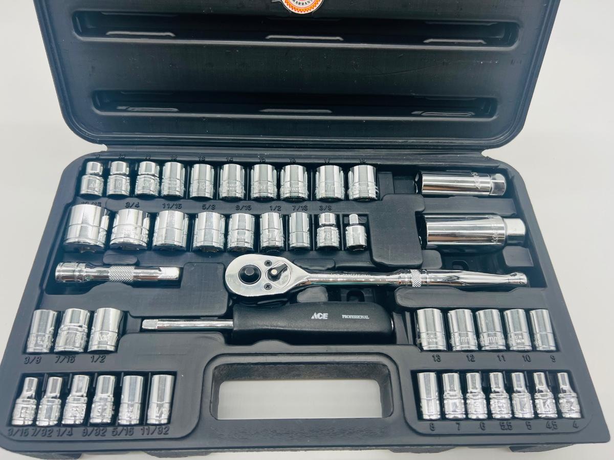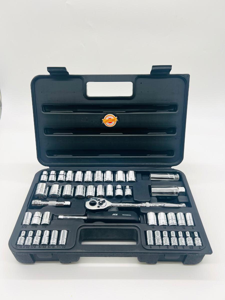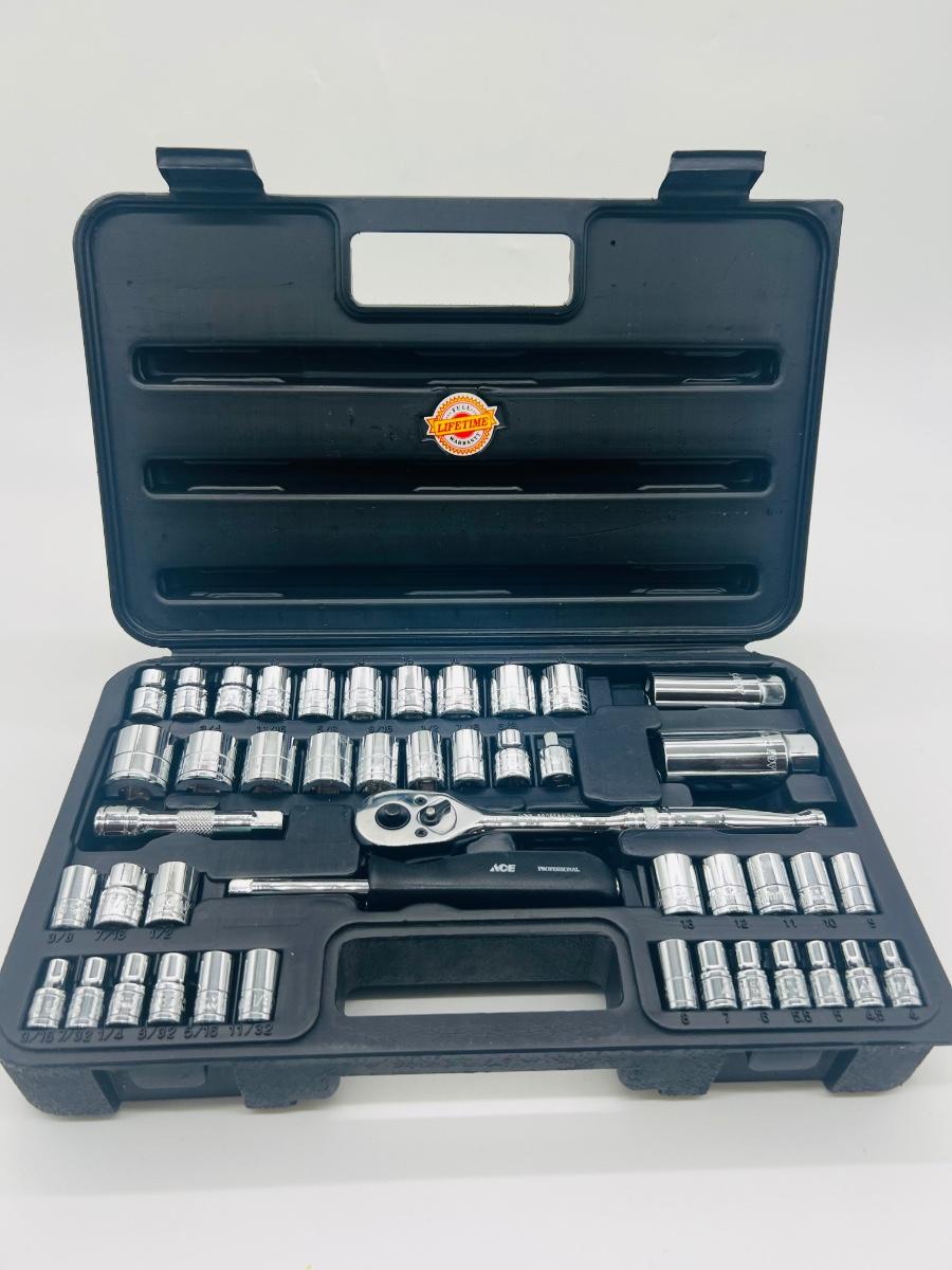 Complete Ace Hardware socket set. Comes as you see it. 45 pieces.