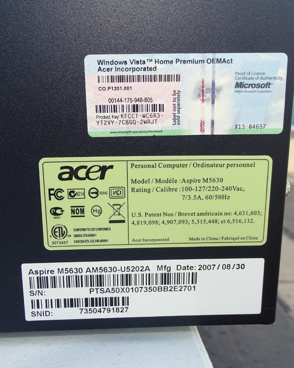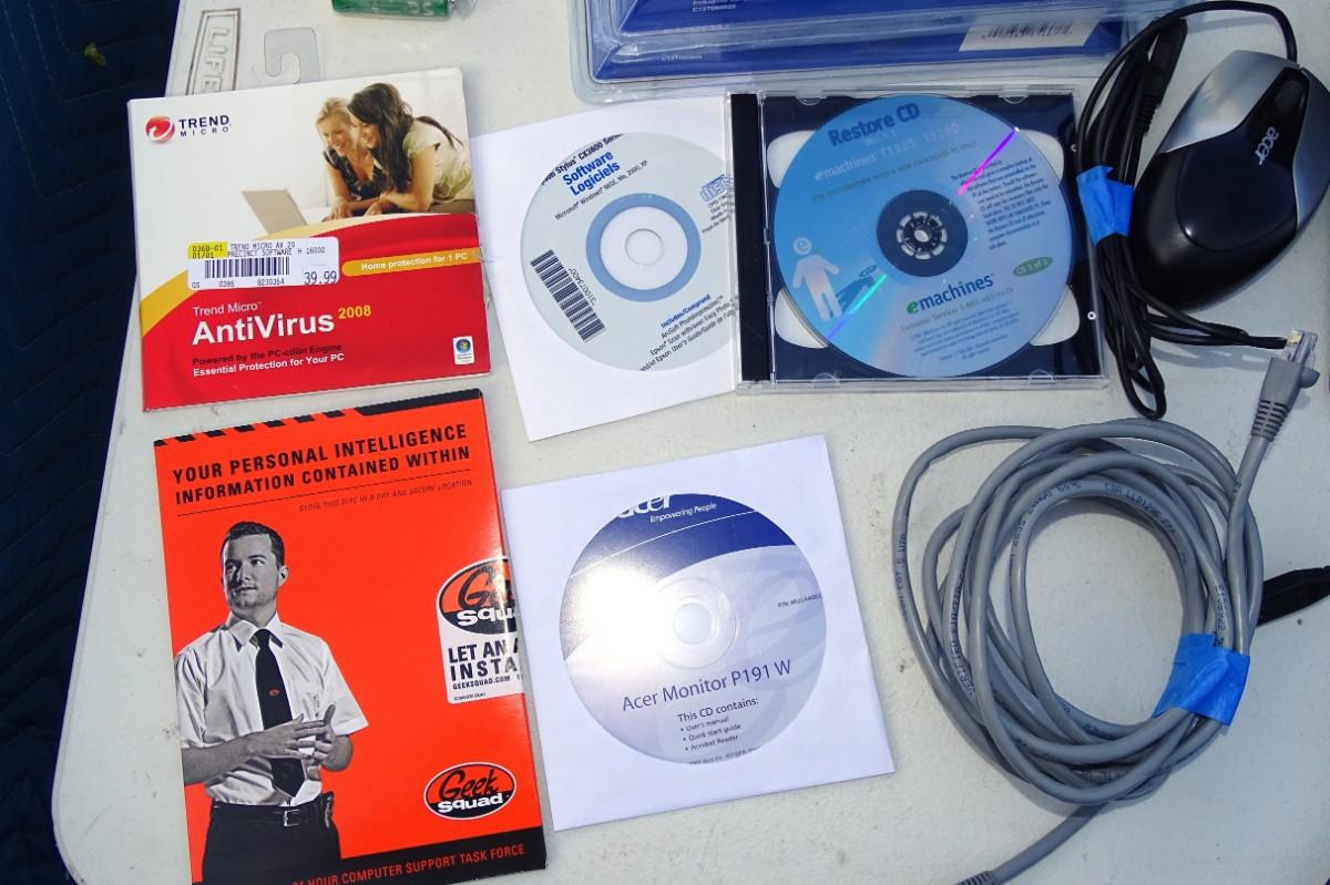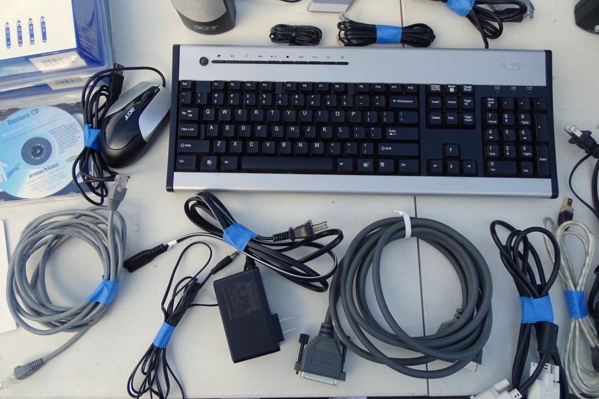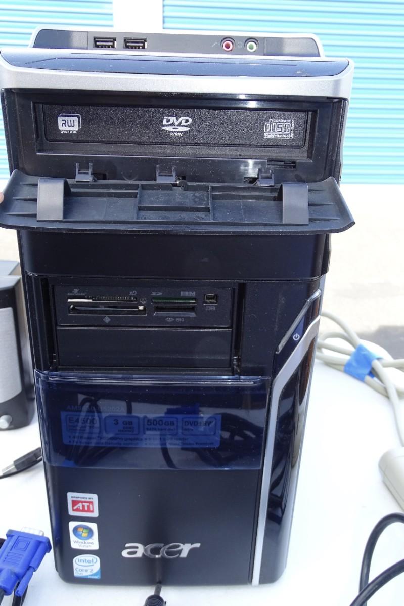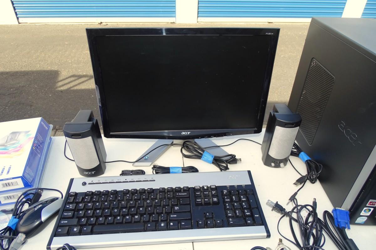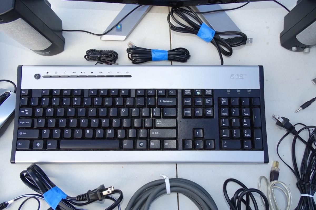 Acer Computer, monitor, keyboard, mouse, speakers, assorted cables