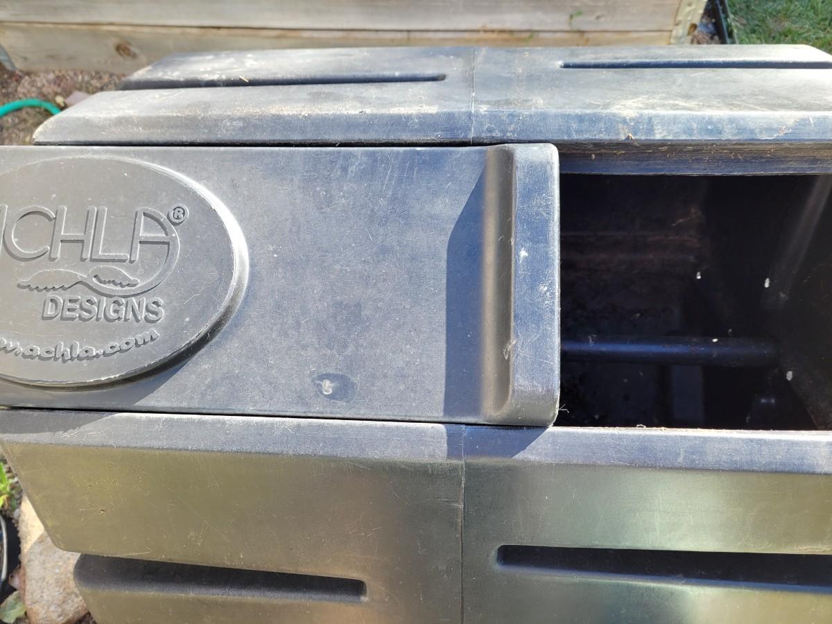 Achlid Designs spinning compost bin. Used The boys aren't included yet but working on it
