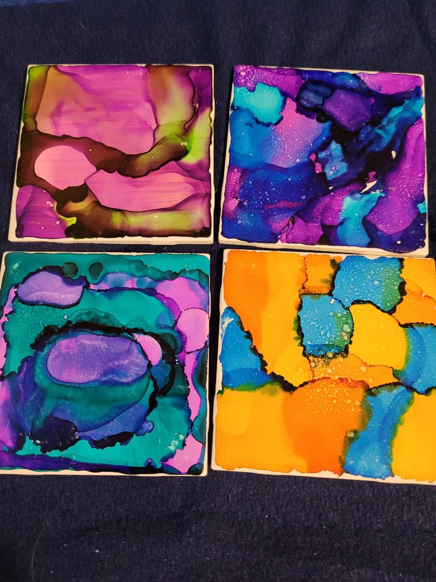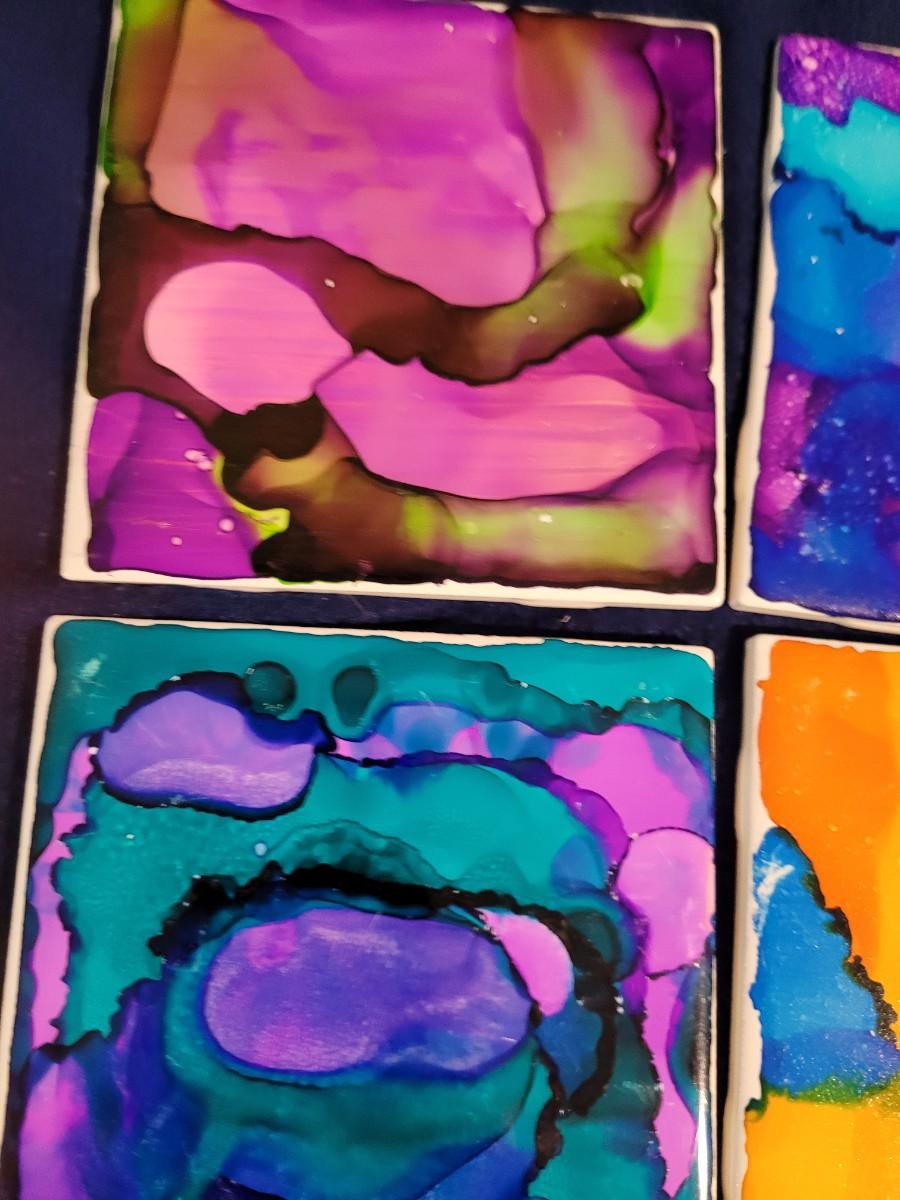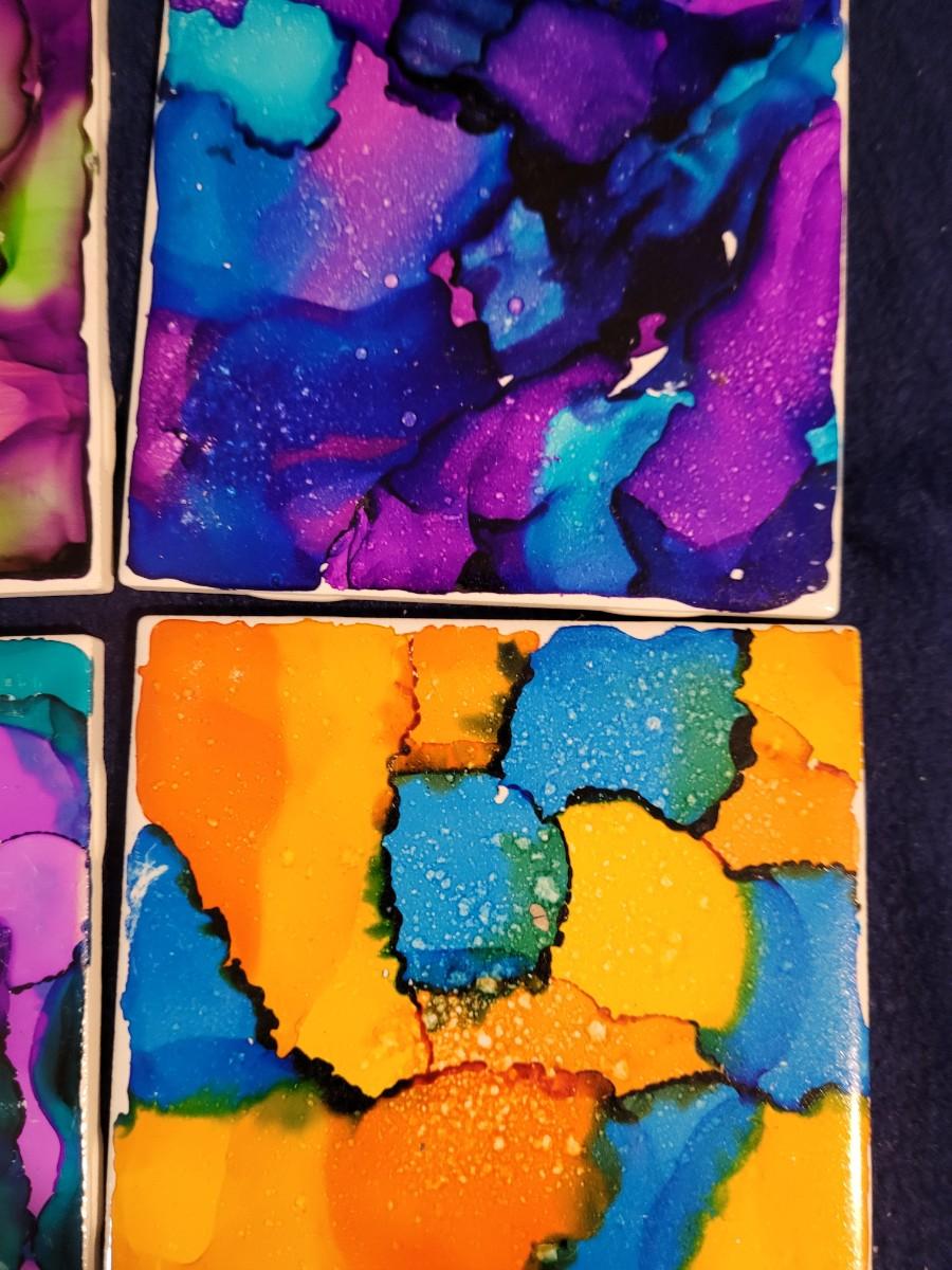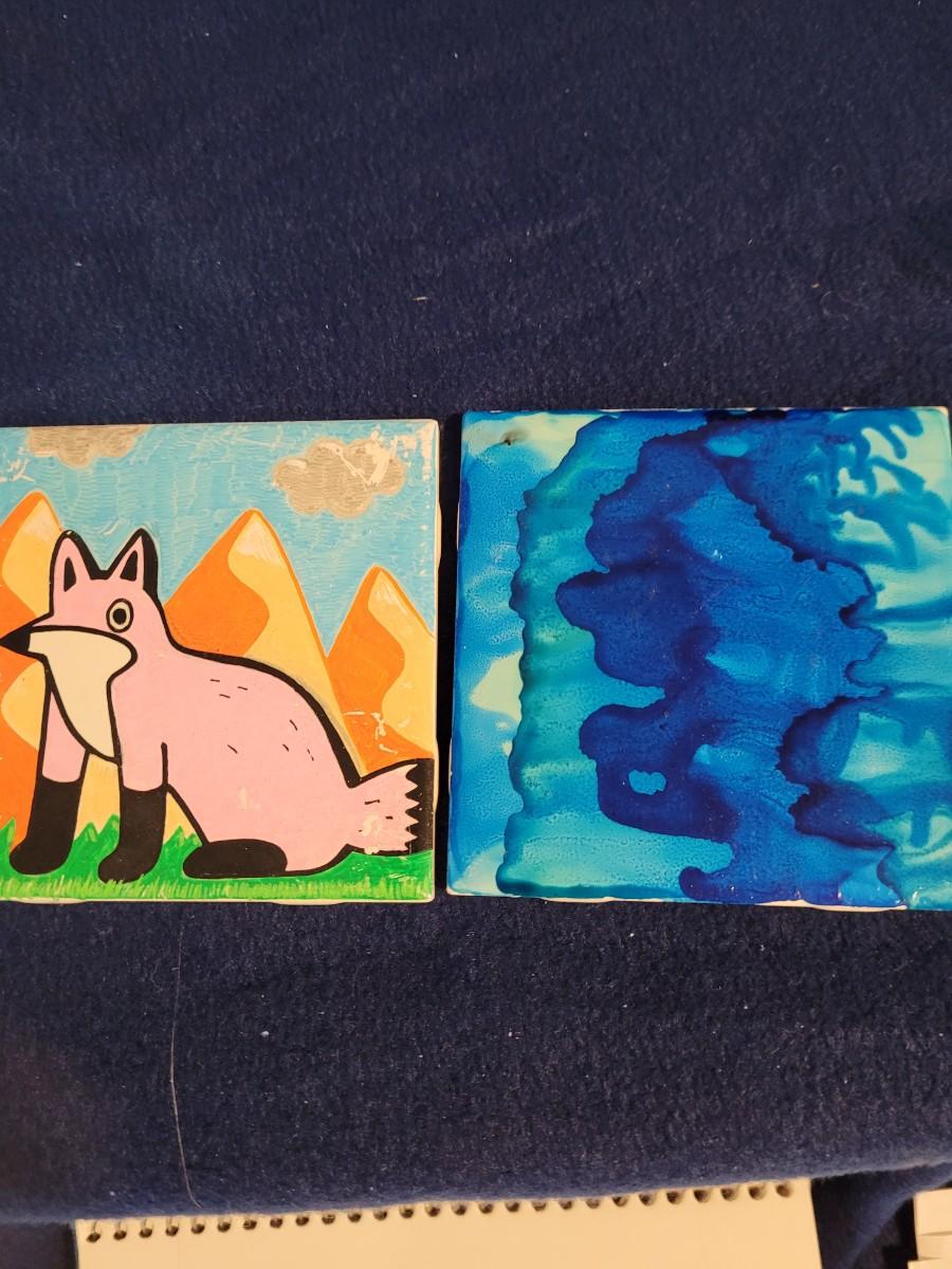 6 acid washed tiles 4 1/2 x 4 1/2 local artist