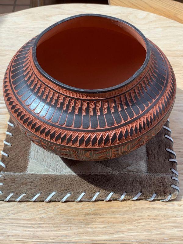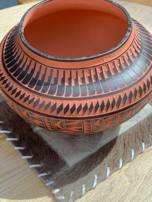 Beautiful etched pot from Acoma, New Mexico signed by both artist