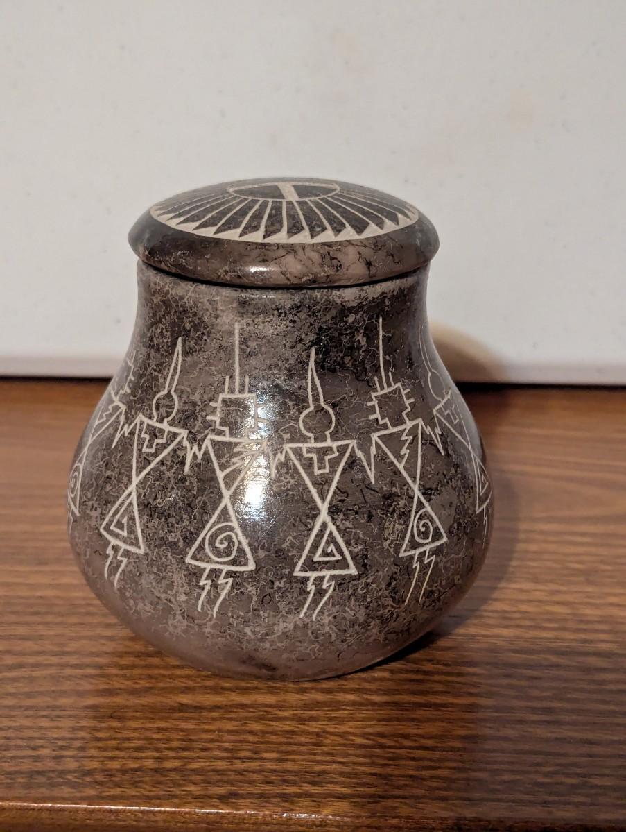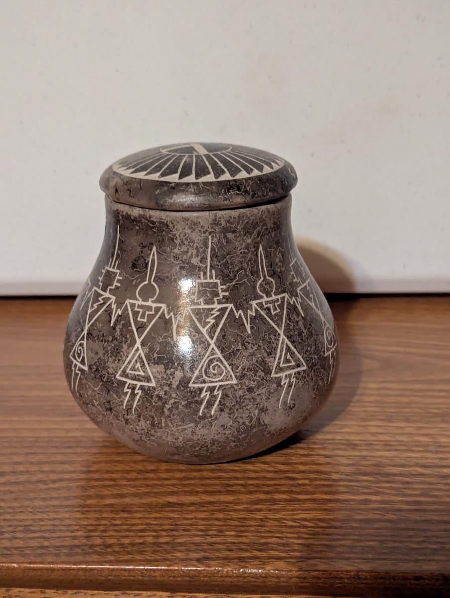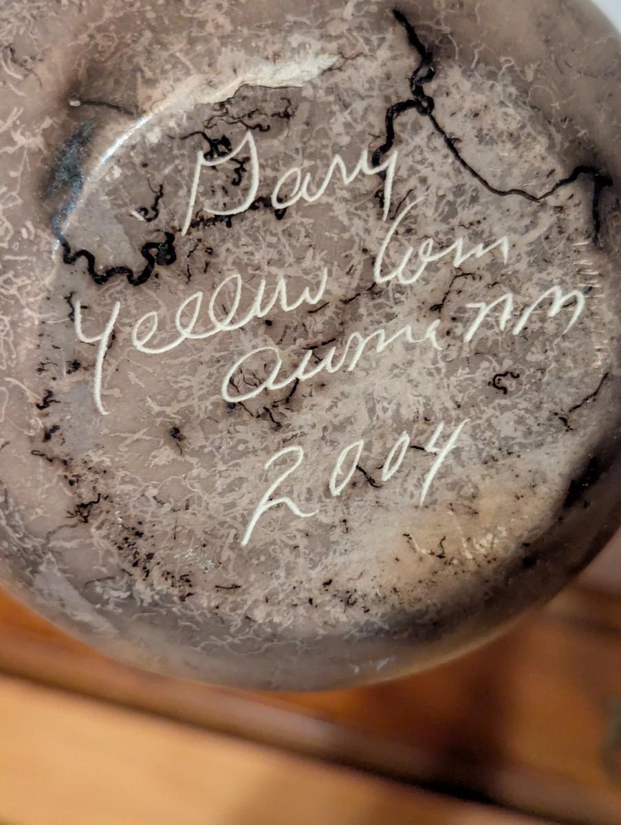 Acoma Pueblo Etched Horse Hair Pot With Lid Signed By Gary Yellow Corn 2004