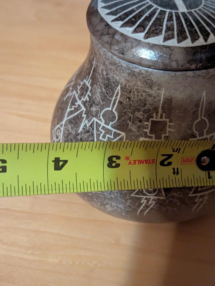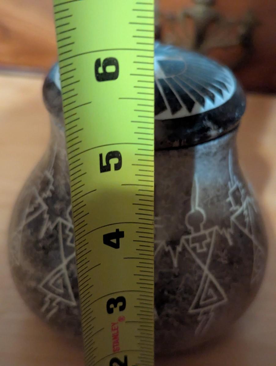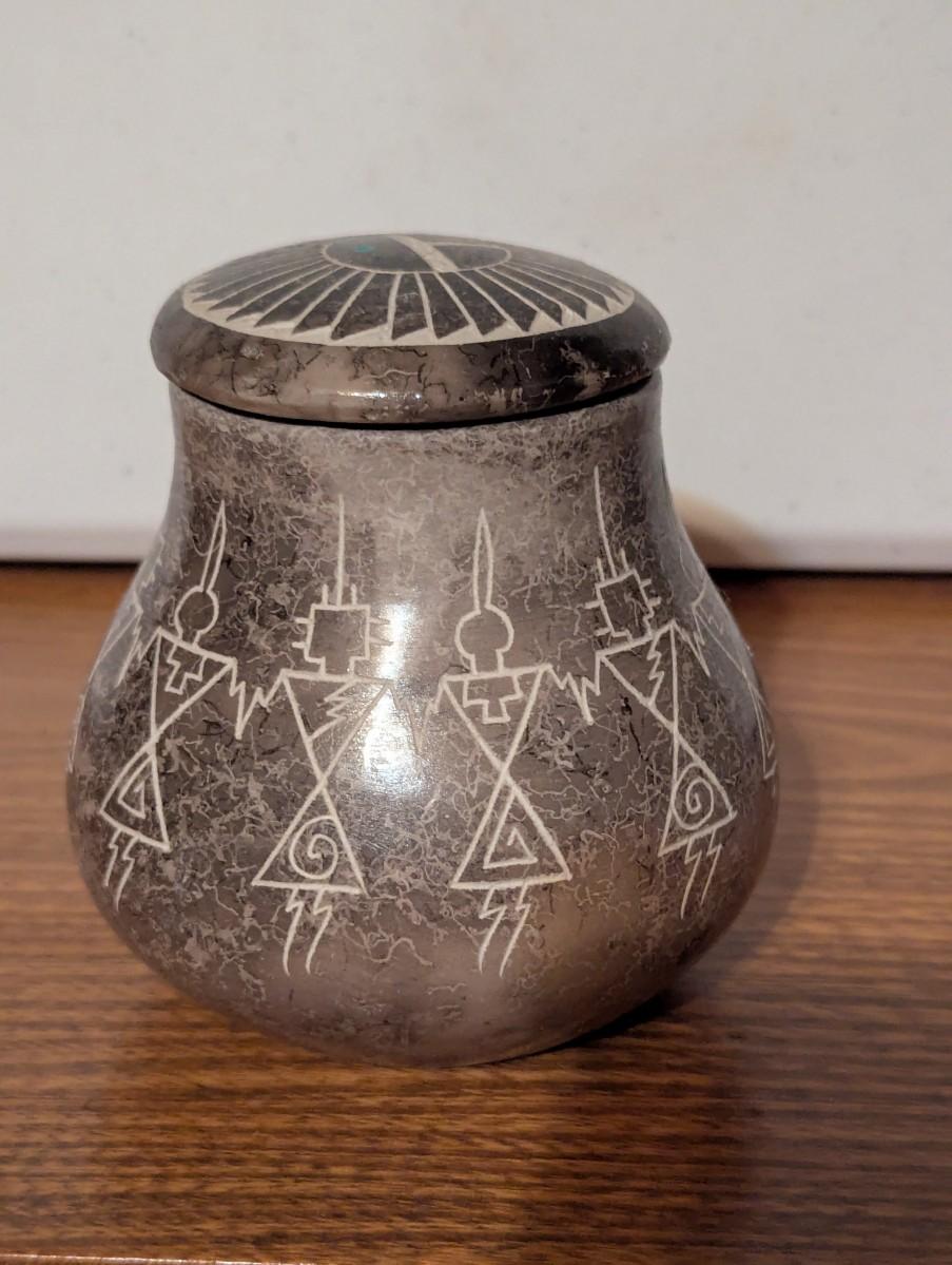 Acoma Pueblo Etched Horse Hair Pot With Lid Signed By Gary Yellow Corn 2004