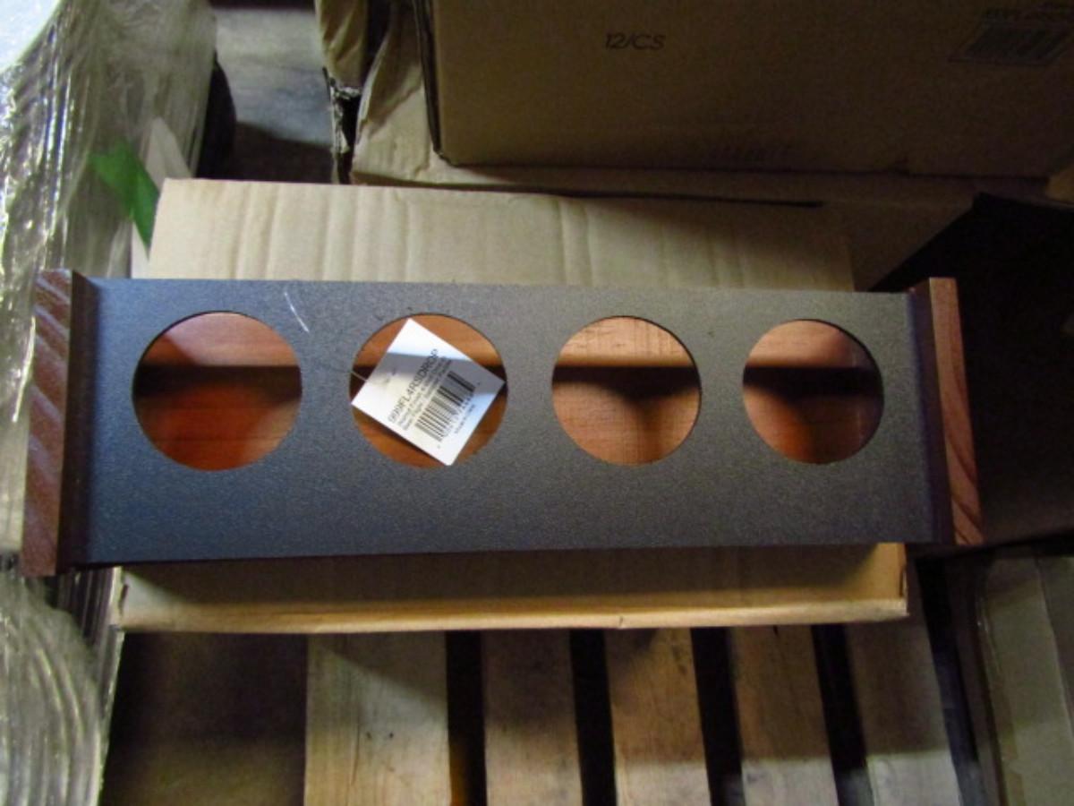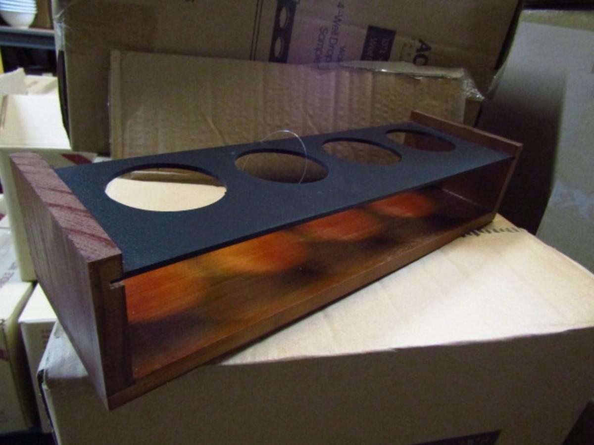 Acopa Walnut Finish 4-Well Drop-In Beer Flight/Sampler Paddles: 2 Cases (24 Pcs.)- (#46-B). Bottoms of paddles are wood finish, tops are black plastic.