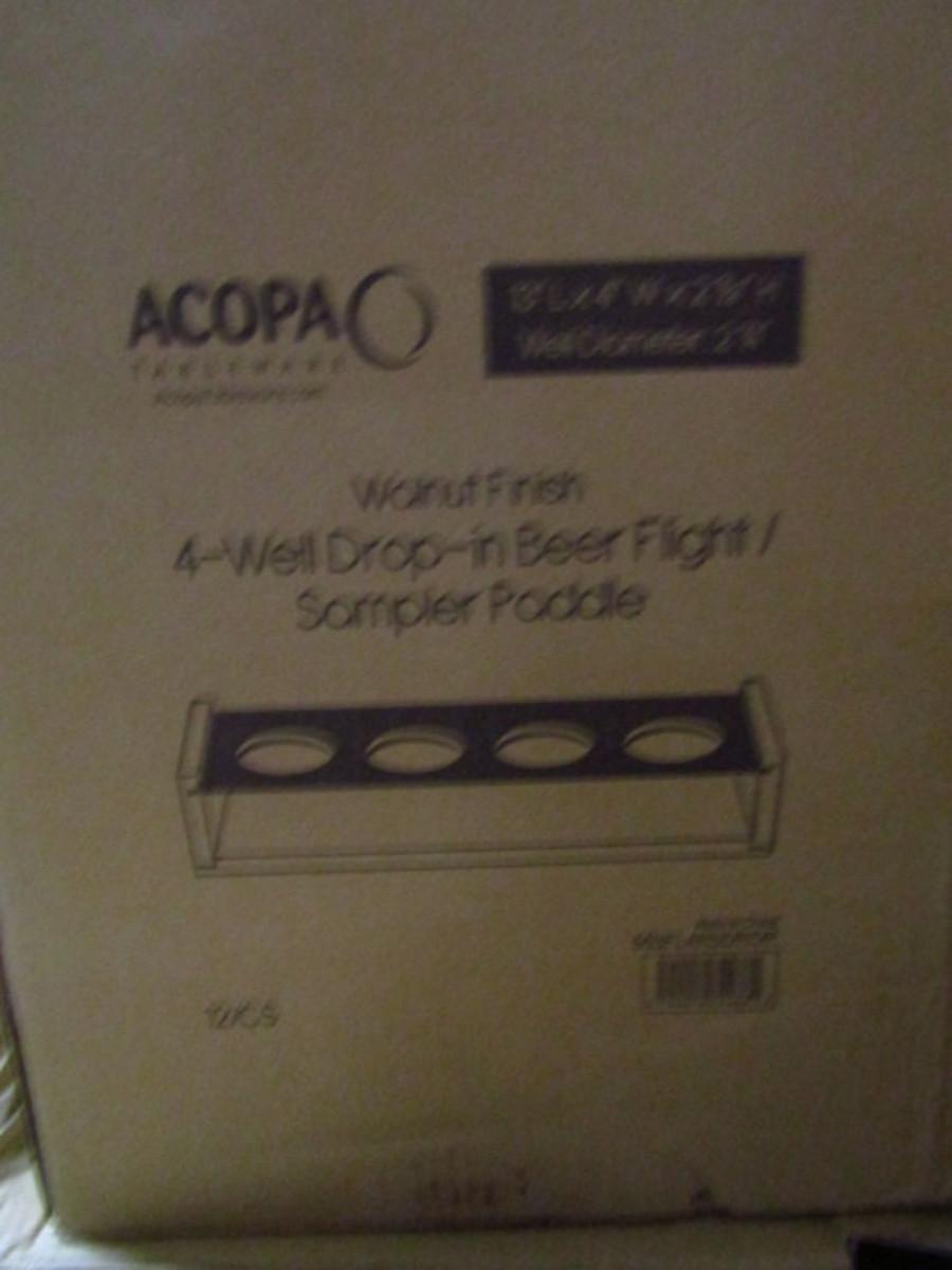Acopa Walnut Finish 4-Well Drop-In Beer Flight/Sampler Paddles: 2 Cases (24 Pcs.)- (#46-C).
