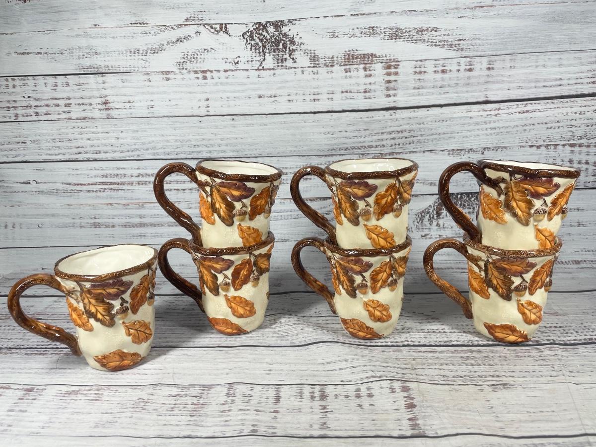 All items are in good condition. One of the bowls has a chip missing on the side and some small cracks. This lot includes: 7 Mugs, 4 bowls, and 1 tray. All items are dishwasher and microwave safe. They were all made in China. The tray is approximately 16” wide.