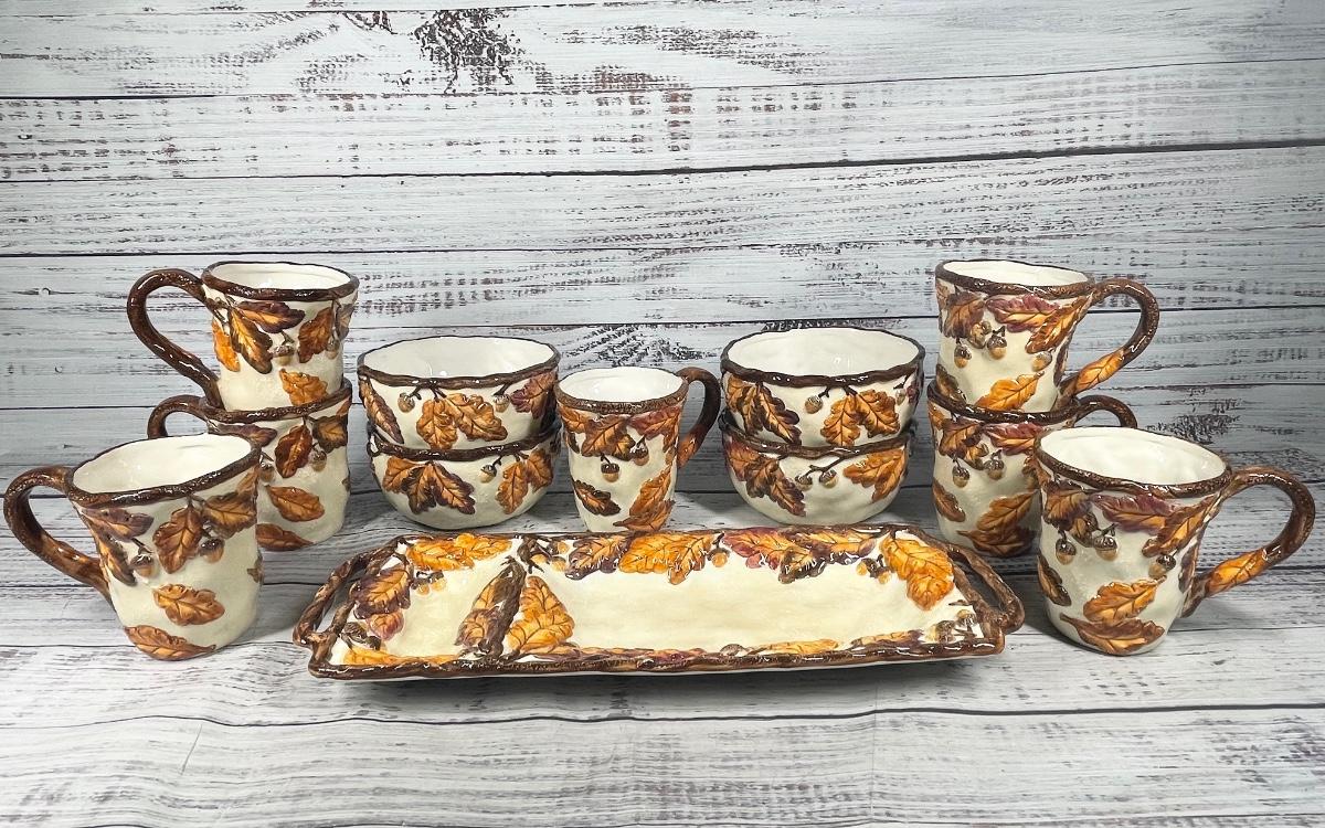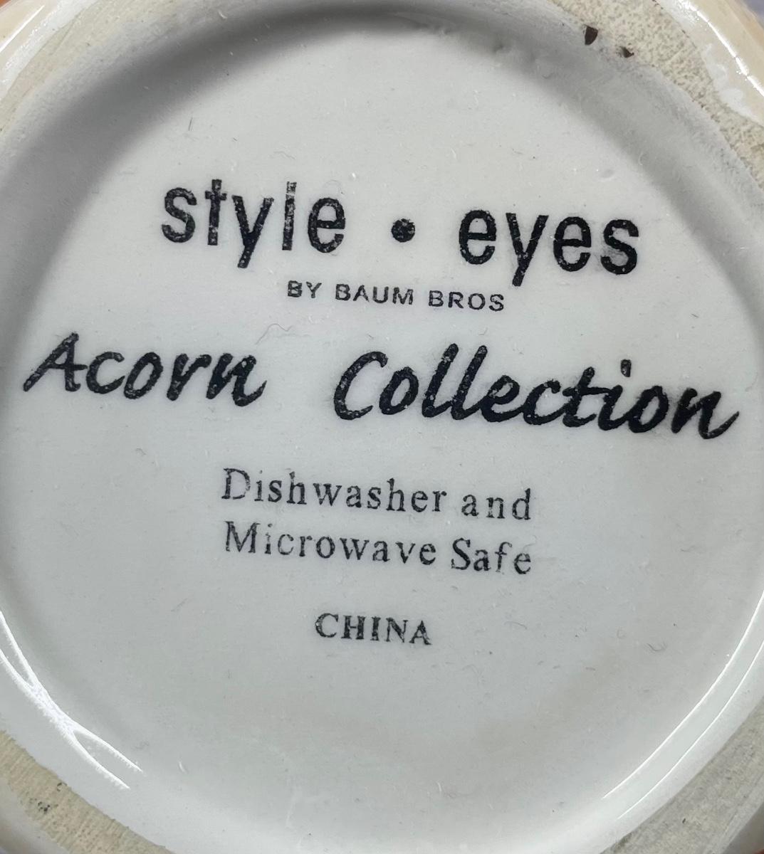 Acorn Collection Style Eyes by Baum Bros Lot of Mugs, Bowls, and a Tray