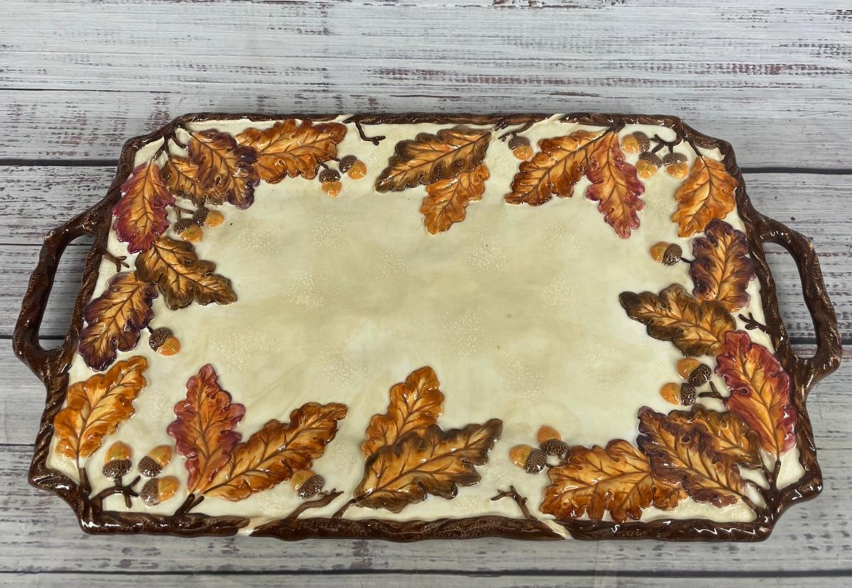 Acorn Collection Handled Serving Platter Style Eyes by Baum Bros Tray