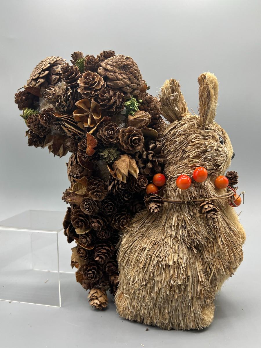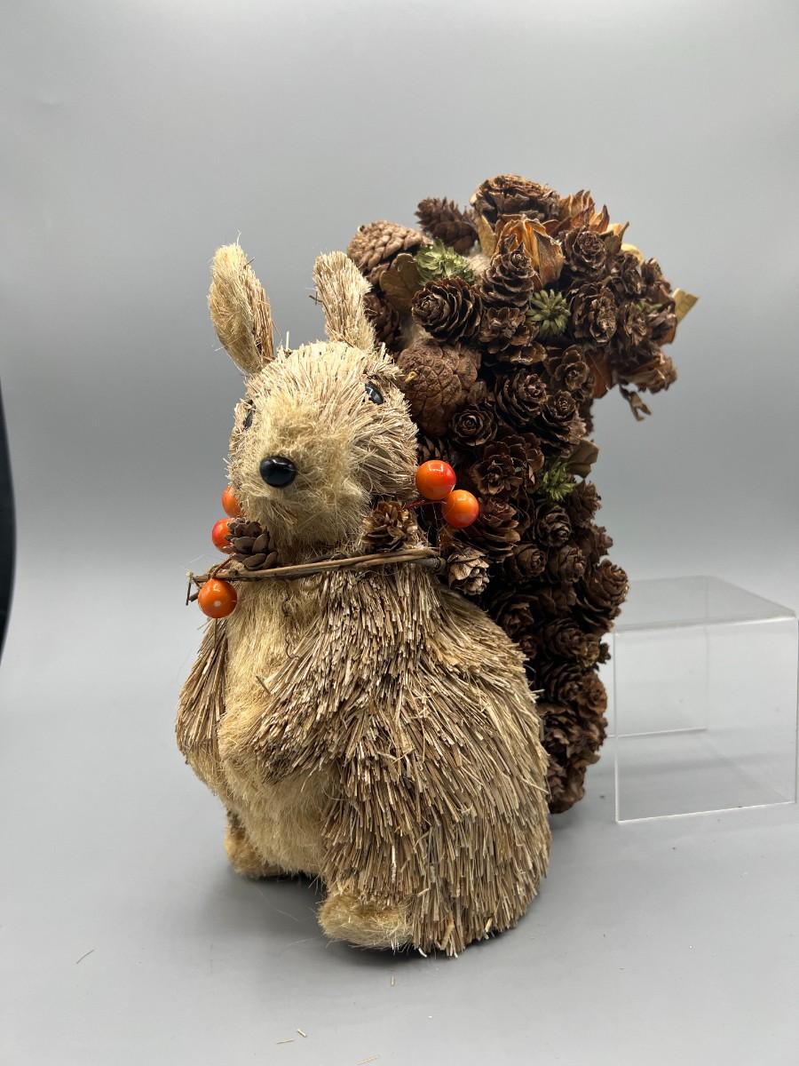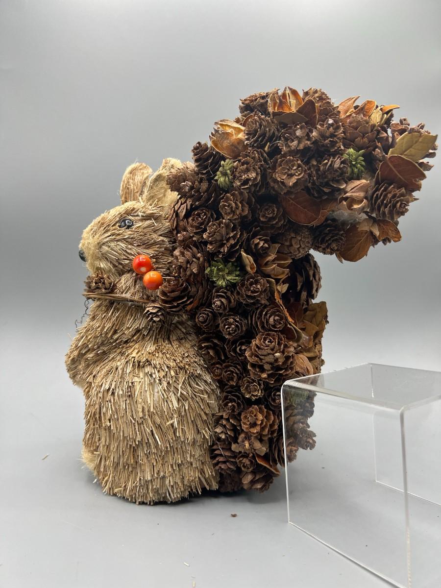 Acorn Nature Brush Christmas Holiday Squirrel, there is some light wear to the squirrel and some missing acorns, but there is no significant damage and is in good displayable condition. Check pictures for more details and for sizing.