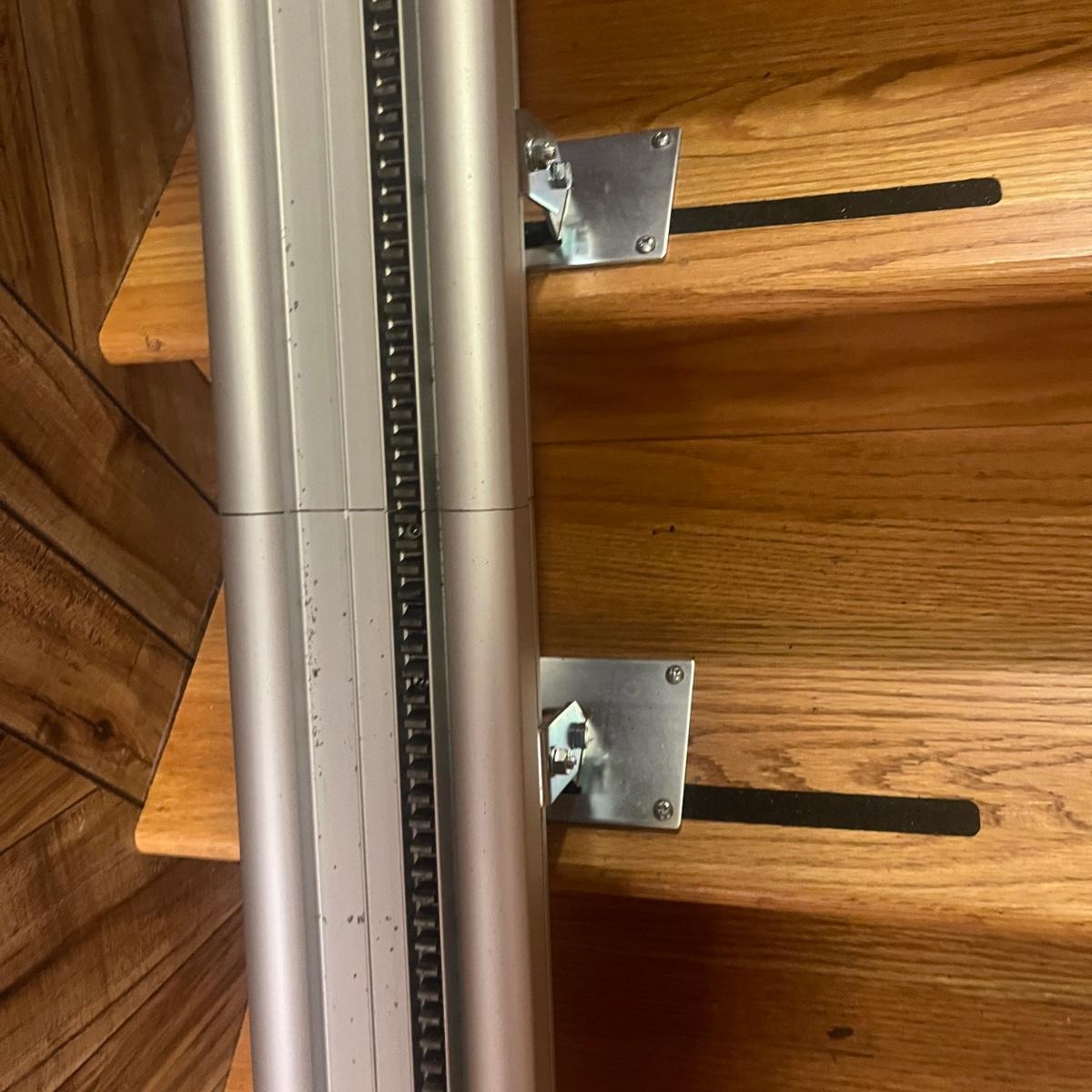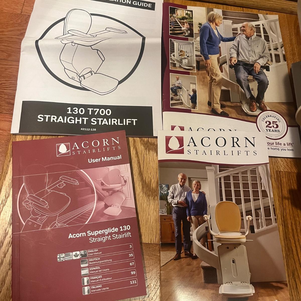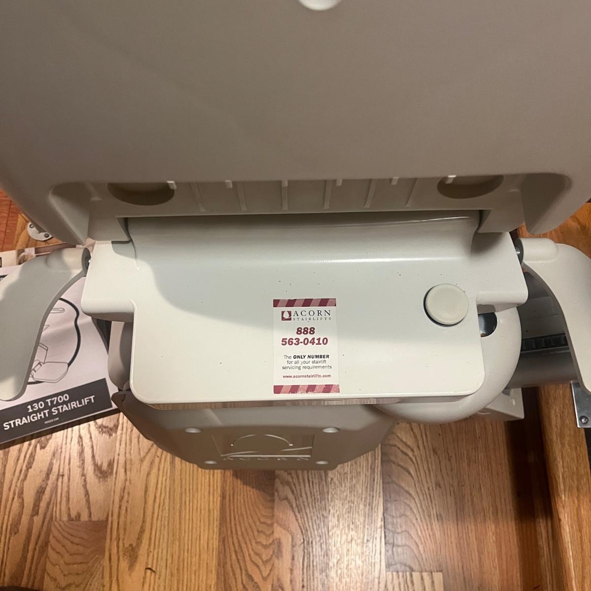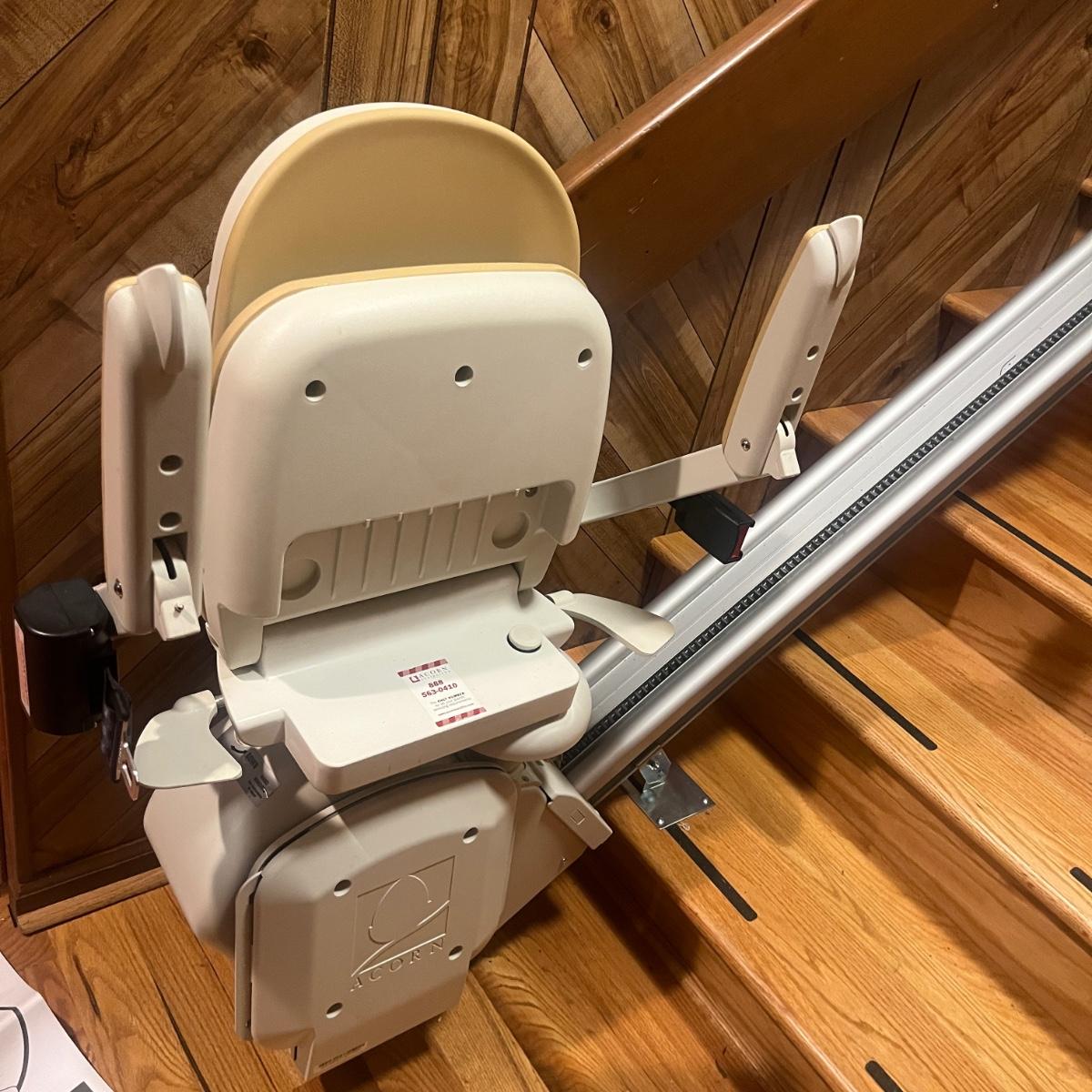 Lot includes an Acorn stairlift with two remotes and owners manual. Track measures 181” long and seat measures 24” x 20” x 46” H. There are 4 metal mounts that the winning bidder will have to remove and take apart the lift. Lift powered on when turned on.