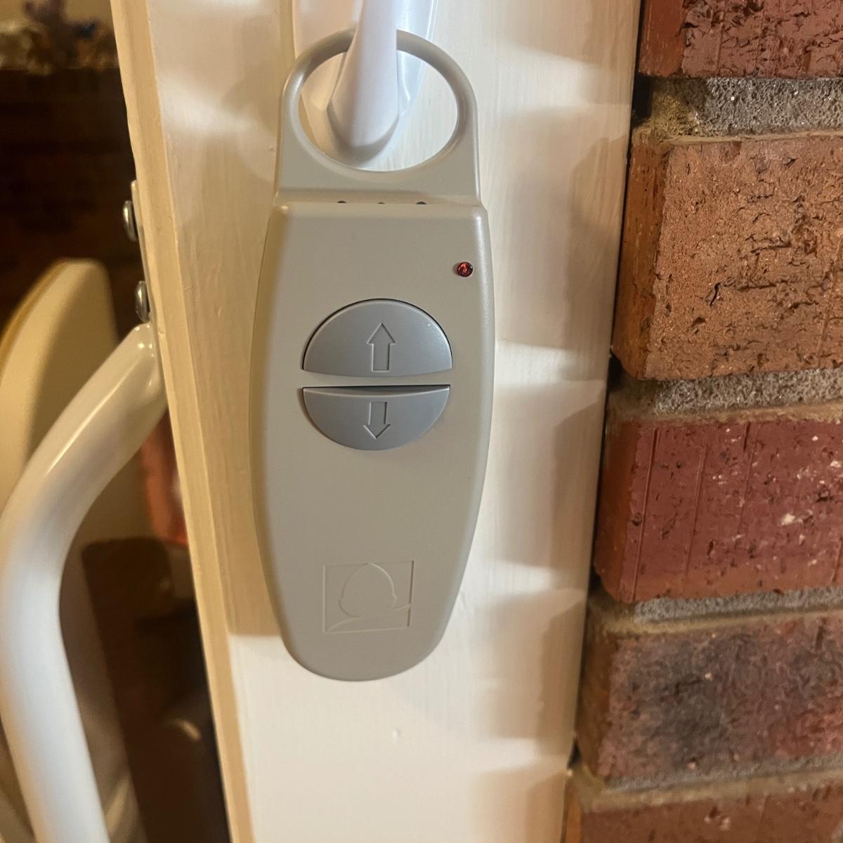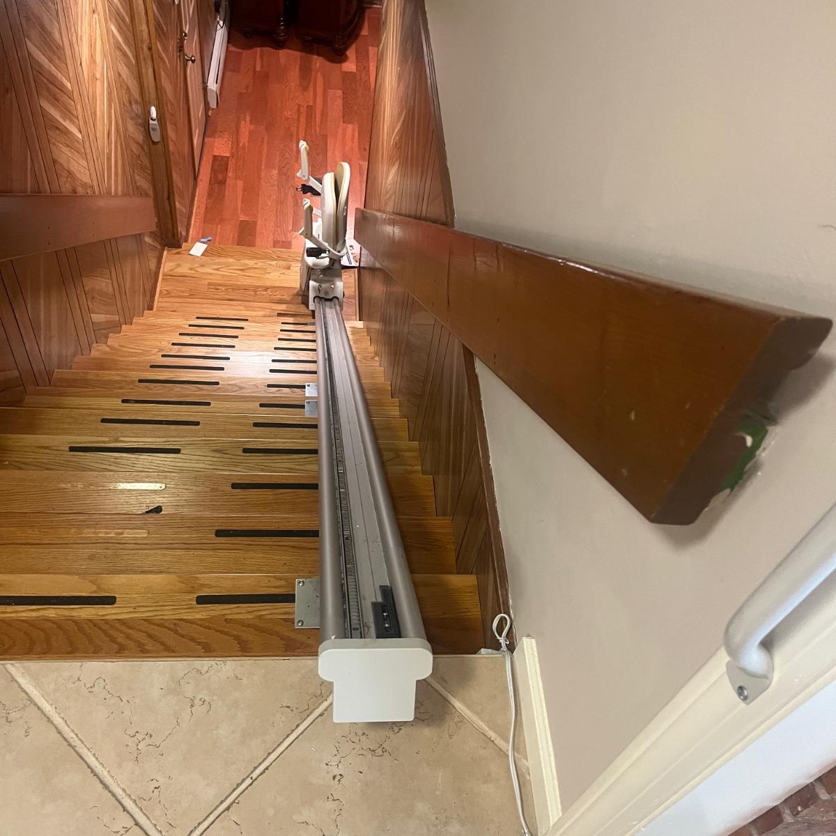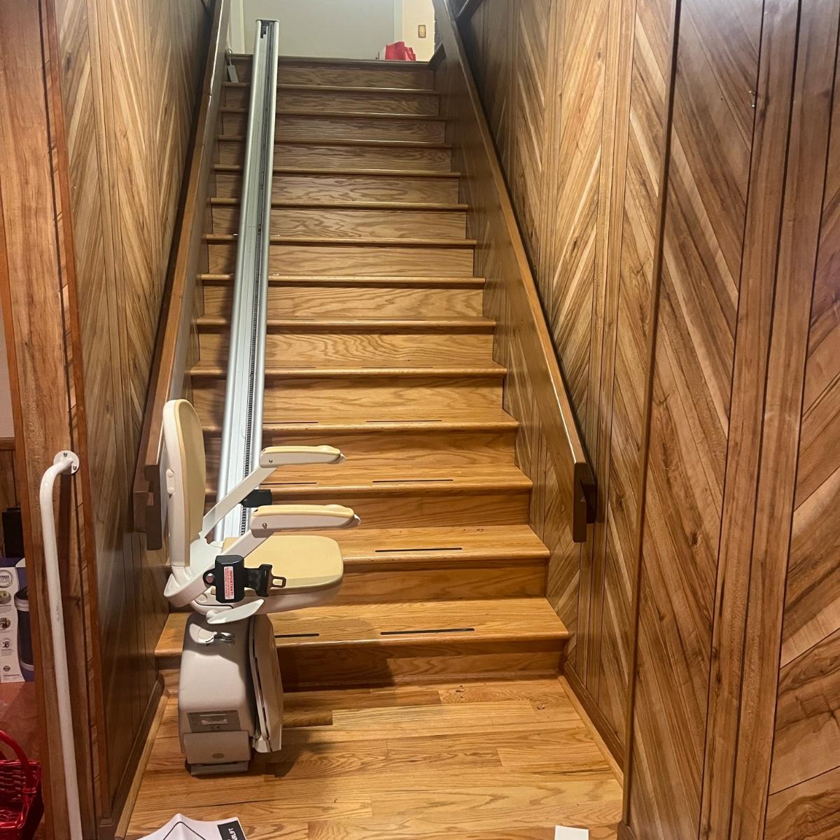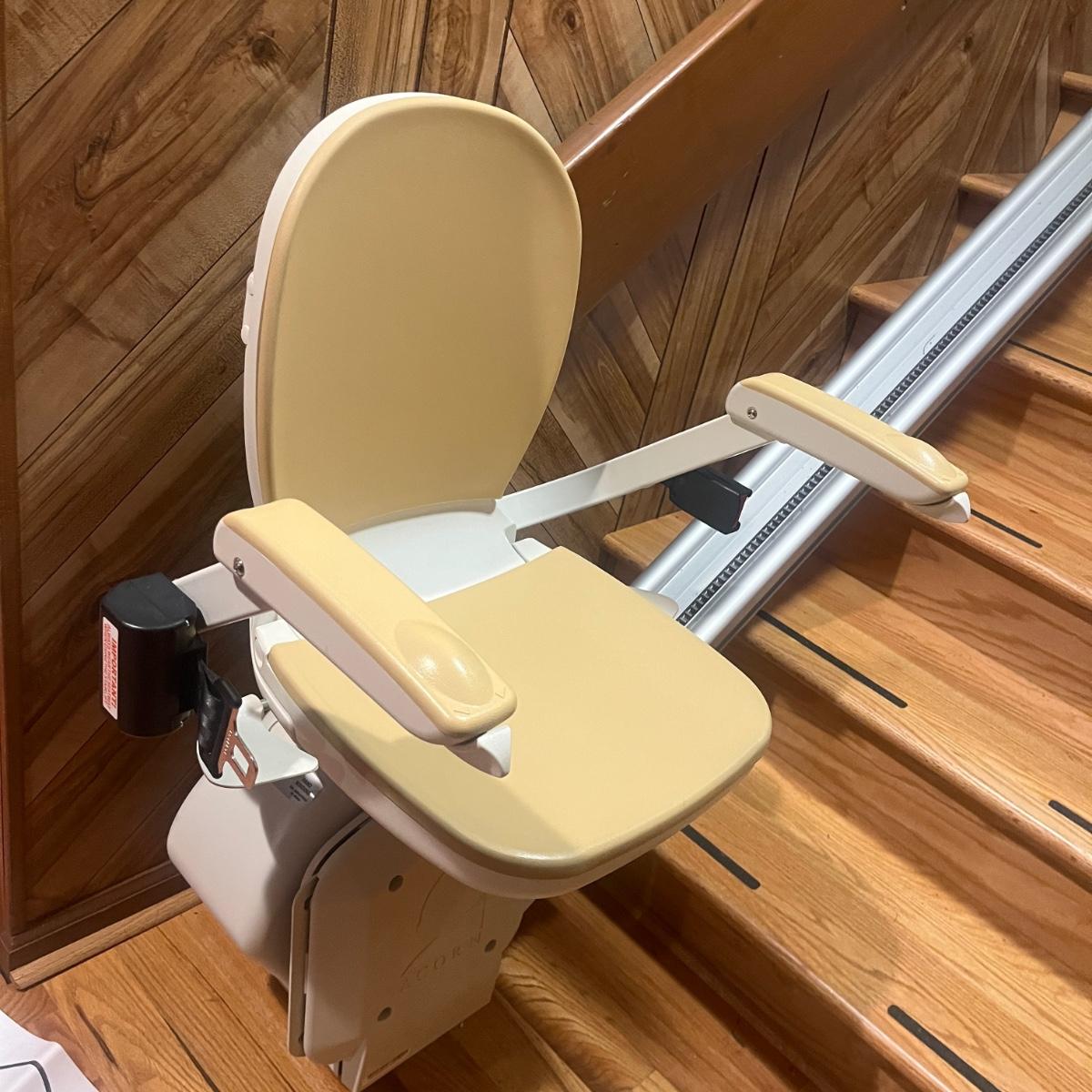 Lot includes an Acorn stairlift with two remotes and owners manual. Track measures 181” long and seat measures 24” x 20” x 46” H. There are 4 metal mounts that the winning bidder will have to remove and take apart the lift. Lift powered on when turned on.