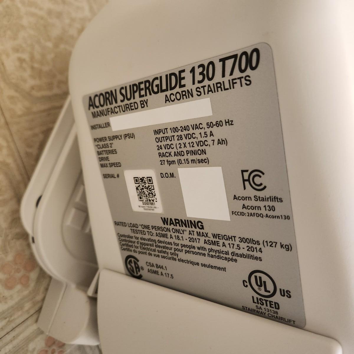 Acorn Superglide 130 T700 4ft 4 Steps Stairlift Chairlift