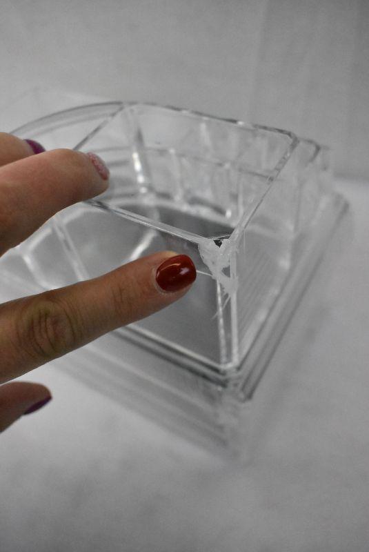 Acrylic Countertop Organizer Storage Vanity. Crack on back corner & Top Drawer