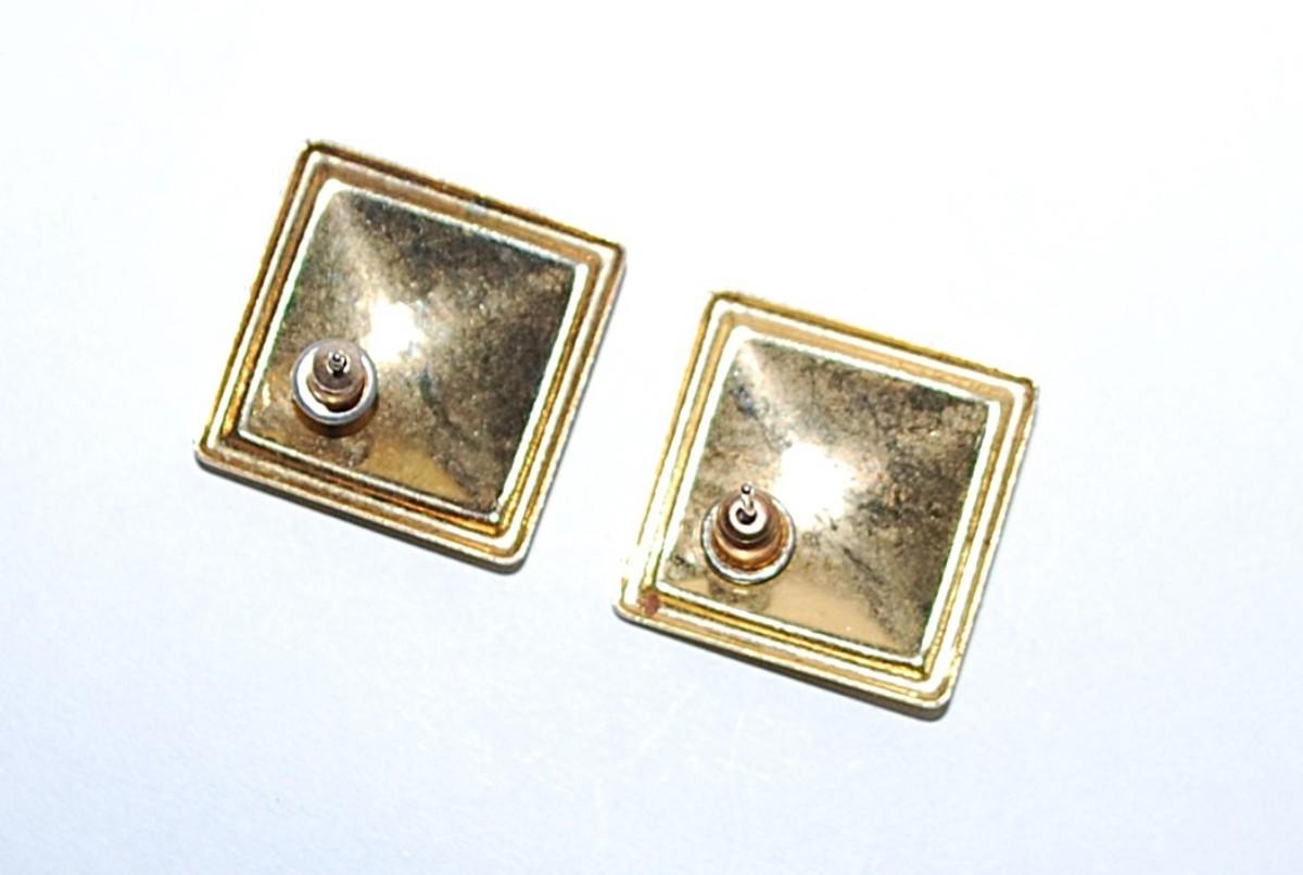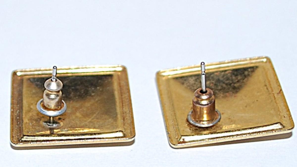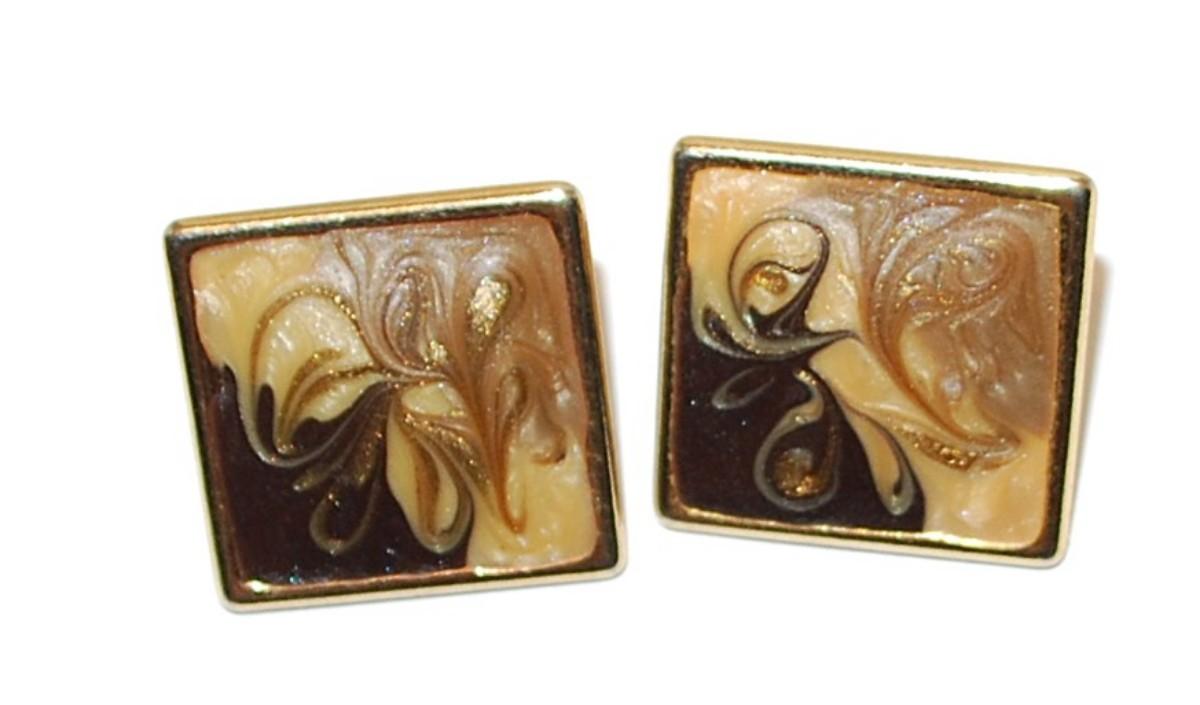 Acrylic GRAPHIC DESIGNED Square EARRINGS Set with Metal Gold Tone Setting and Stud Post Clasp