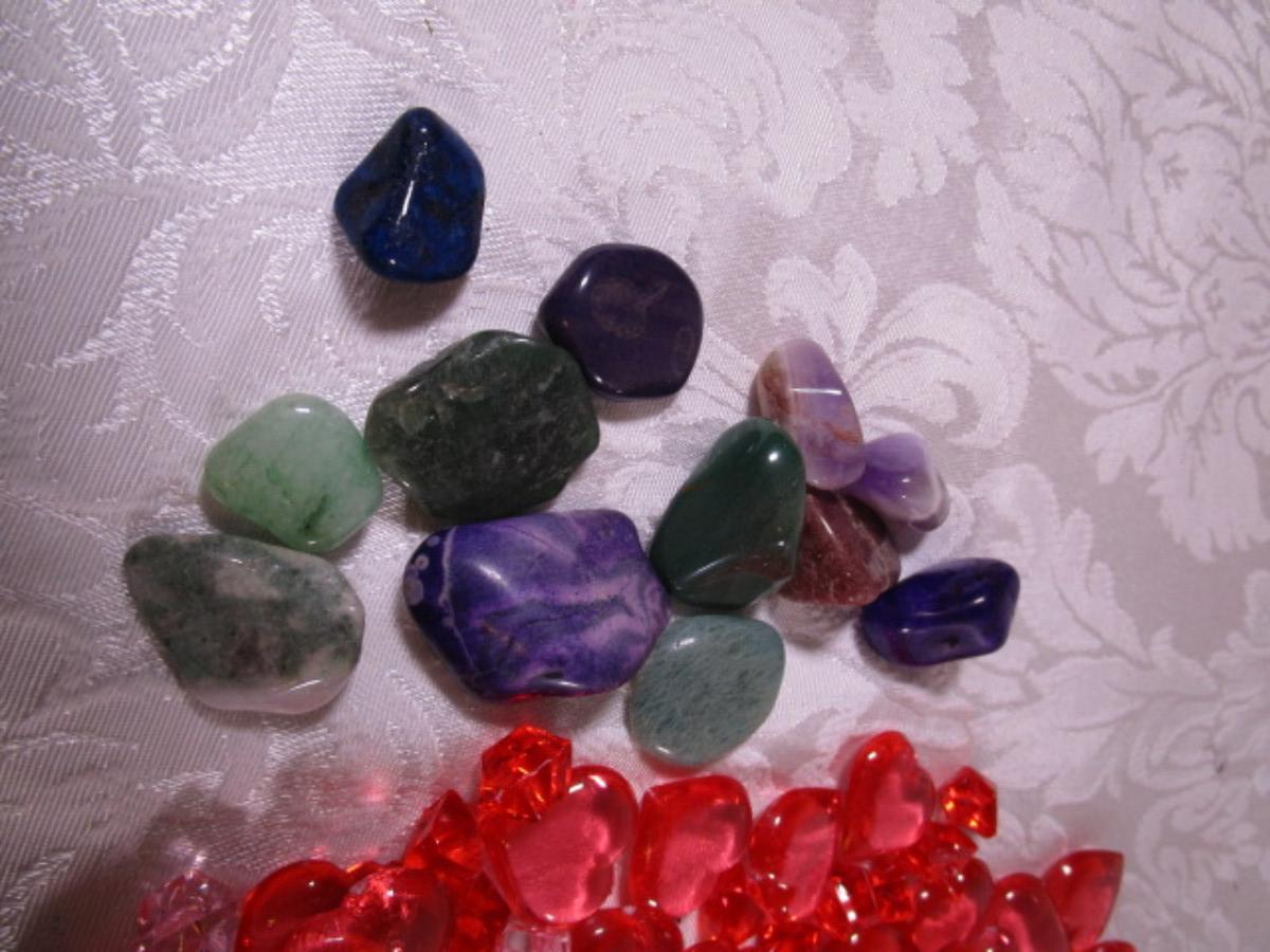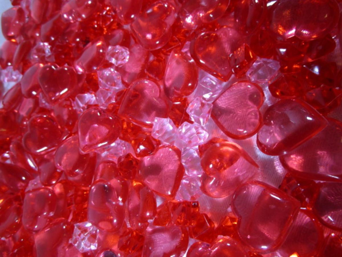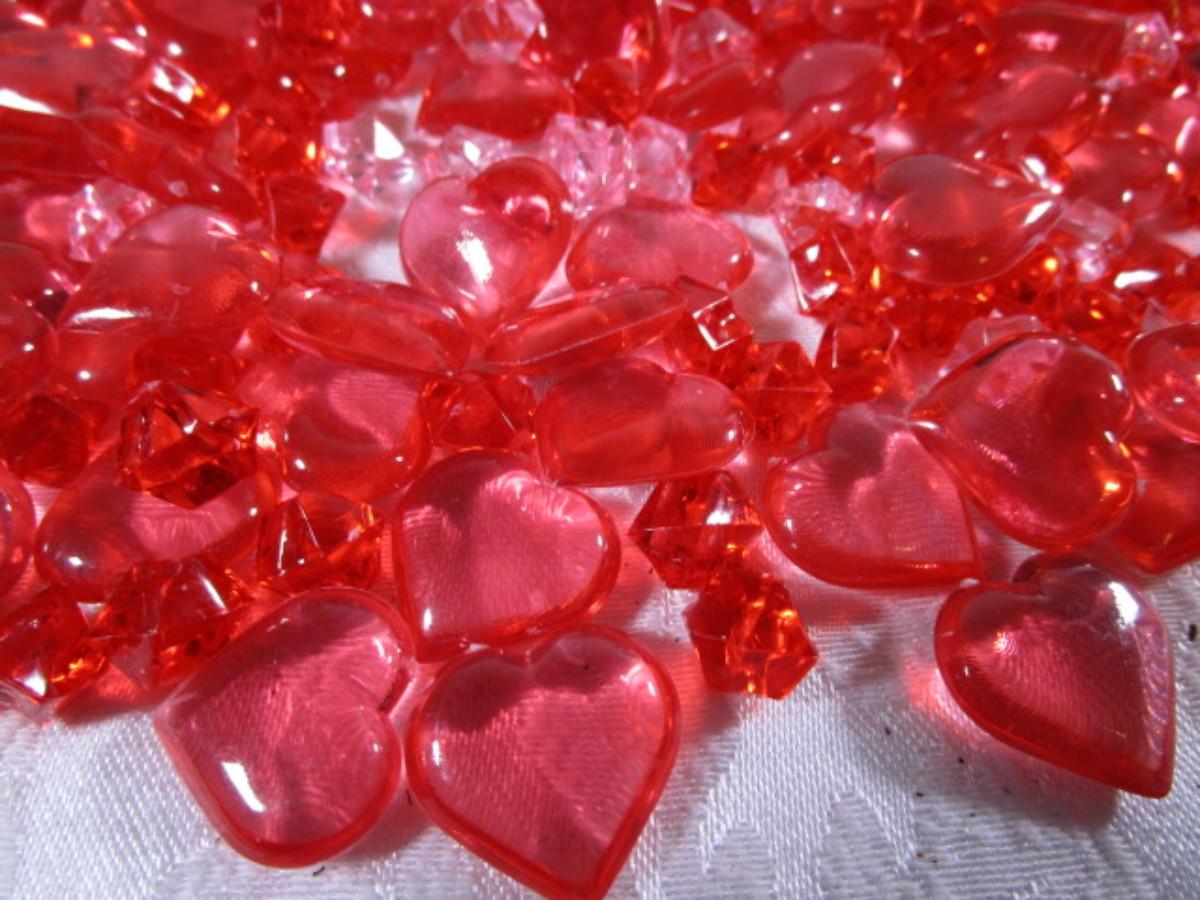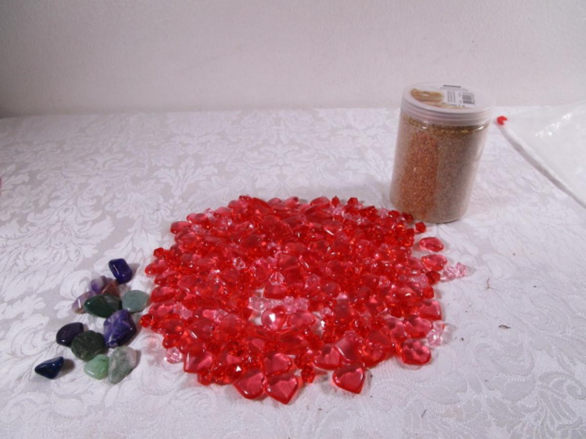 Acrylic hearts & chunks, 12 polished stones, coarse stone granuals