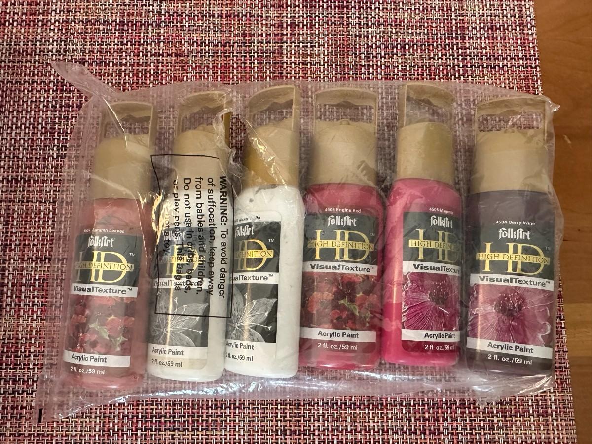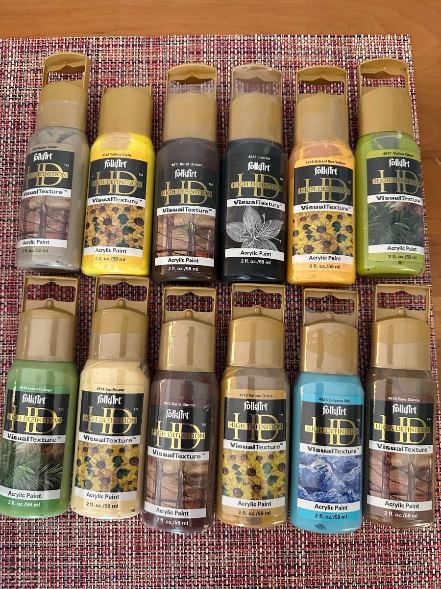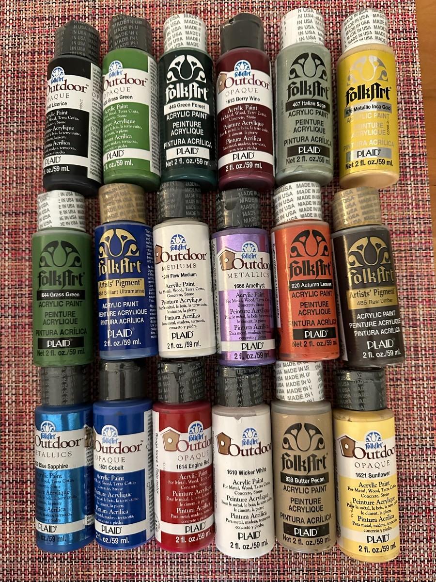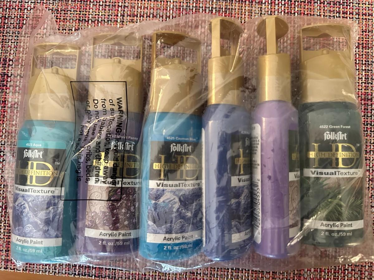 Asst 82 assorted paints, paintbrushes, sponges, box cutter, glue stick & white tray.