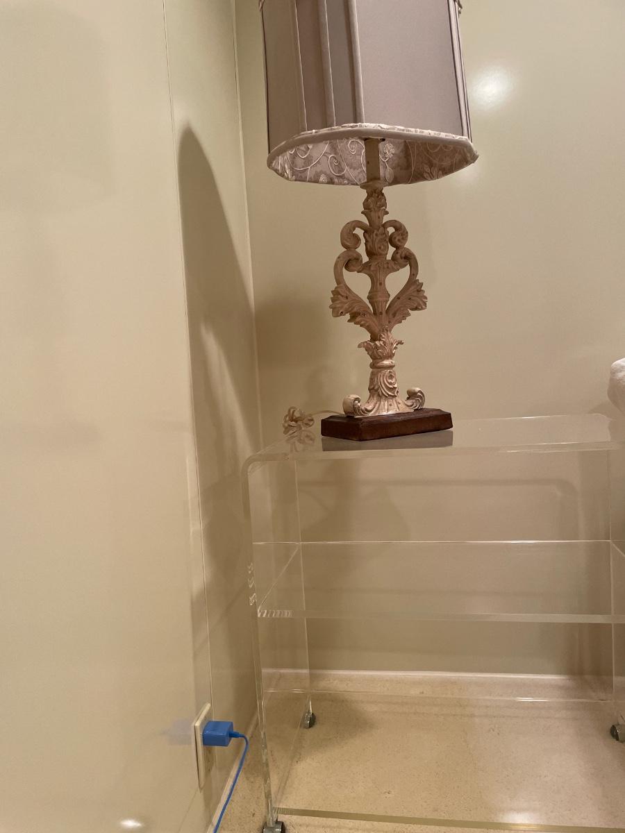 Acrylic side table with lamp