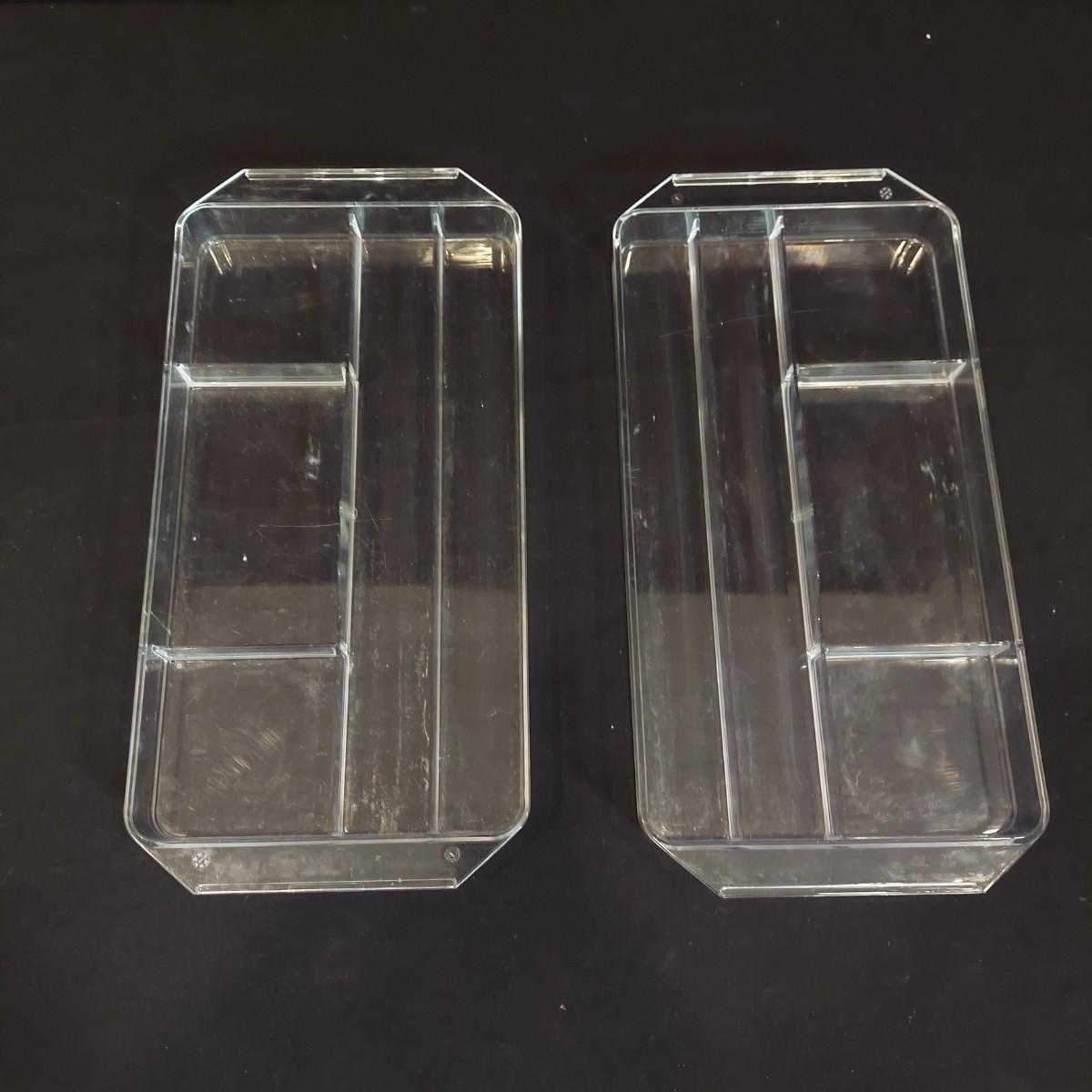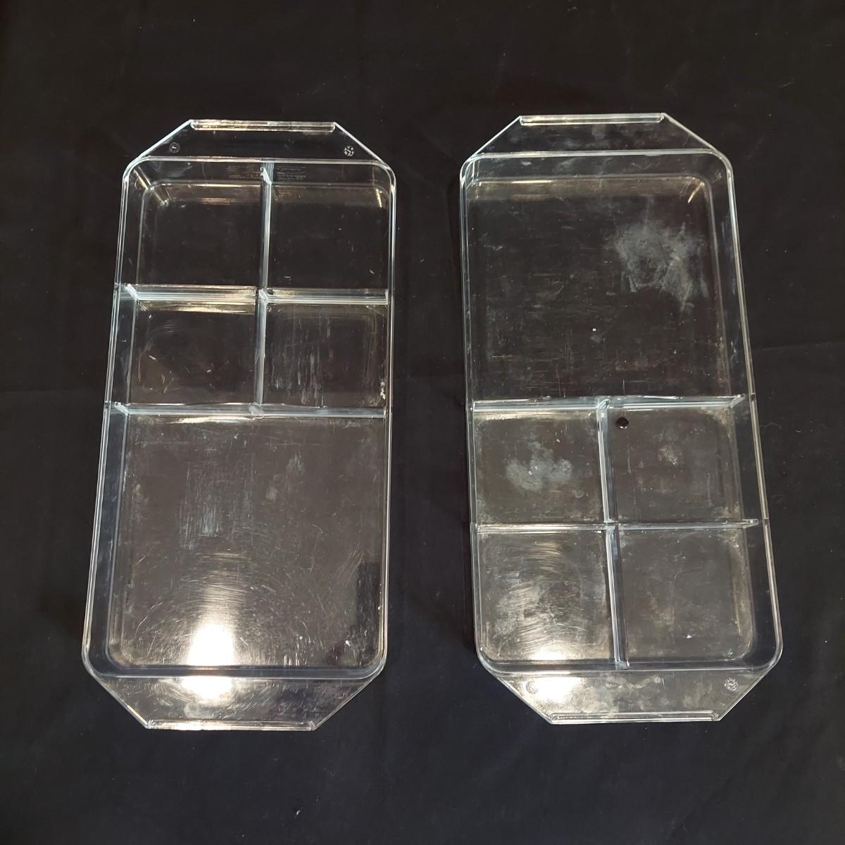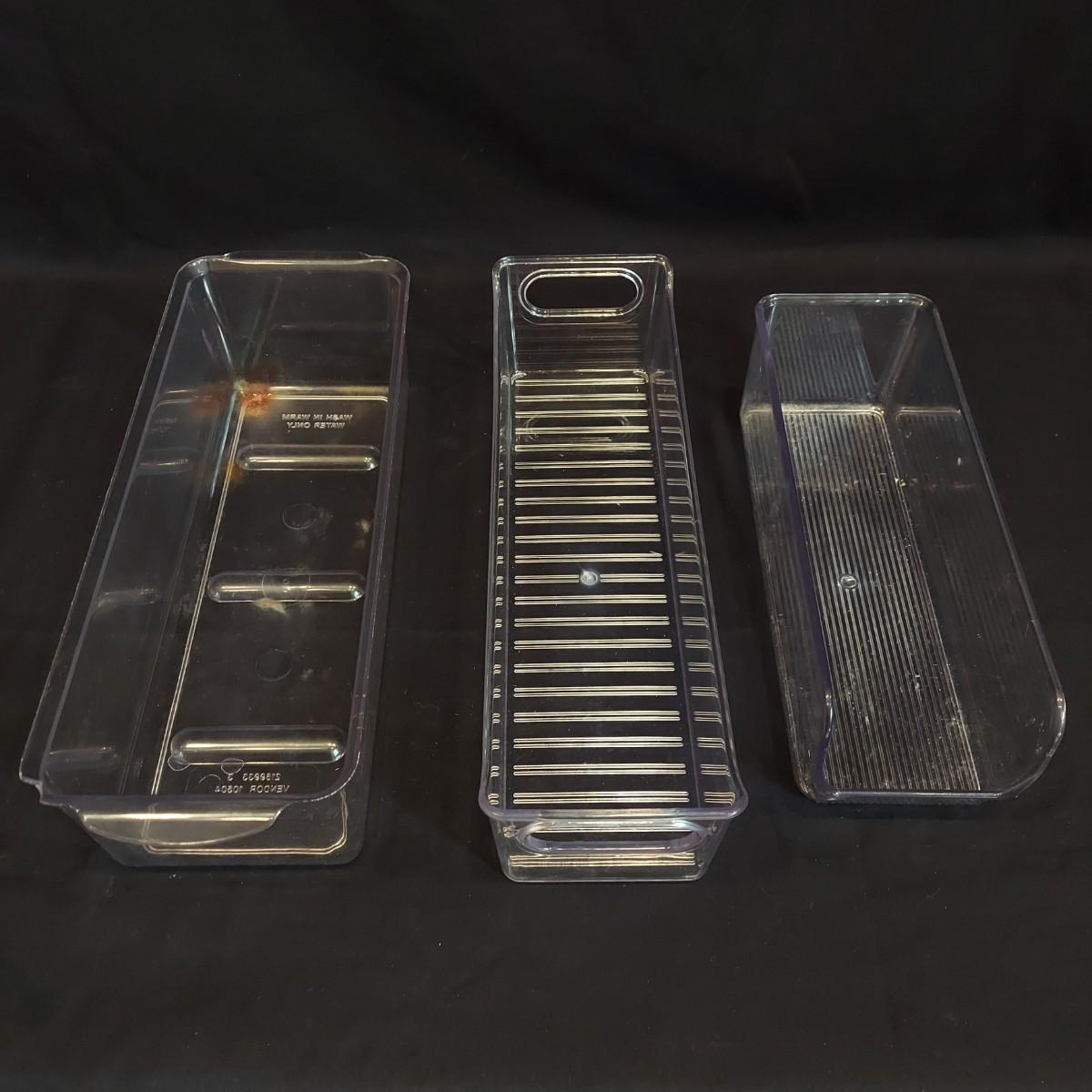 Lot of many cloth and acrylic bins. There are six clear acrylic drawer organizers and 3 clear acrylic "fridge" bins. They range from 11-14" long. Also includes three containers with lids, a counter top organizer and extra lids. The large acrylic container is 8 x 9.5 x 4"H. The two small containers are 4 x 3 x 4"H. Plus two large cloth bins that are 13" cubed with three smaller cloth bins. Shipping available. Shipping certain items can be costly. We suggest contacting our preferred local shipping provider, Postage Express, with dimensions and getting an estimate before bidding: (828) 670-5501 or postageexpress@yahoo.com.